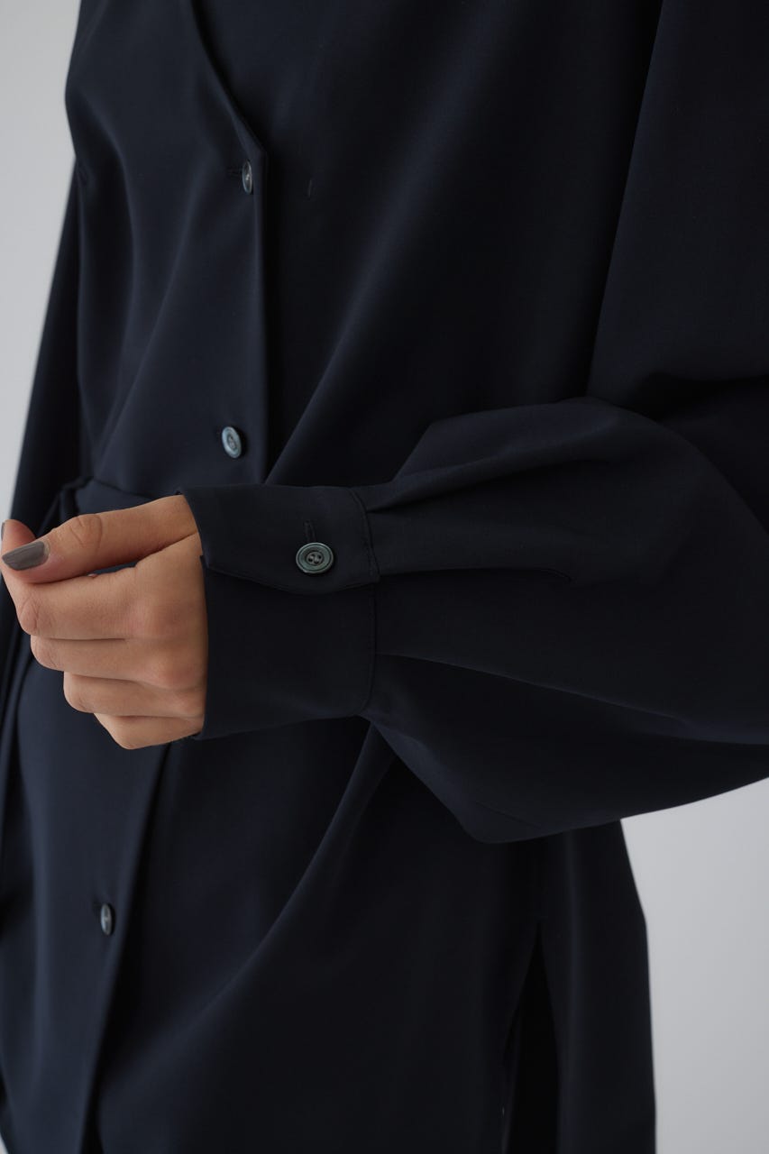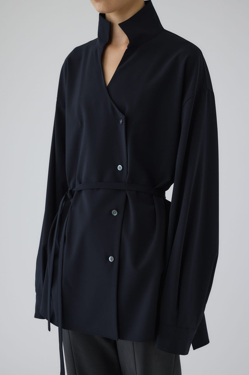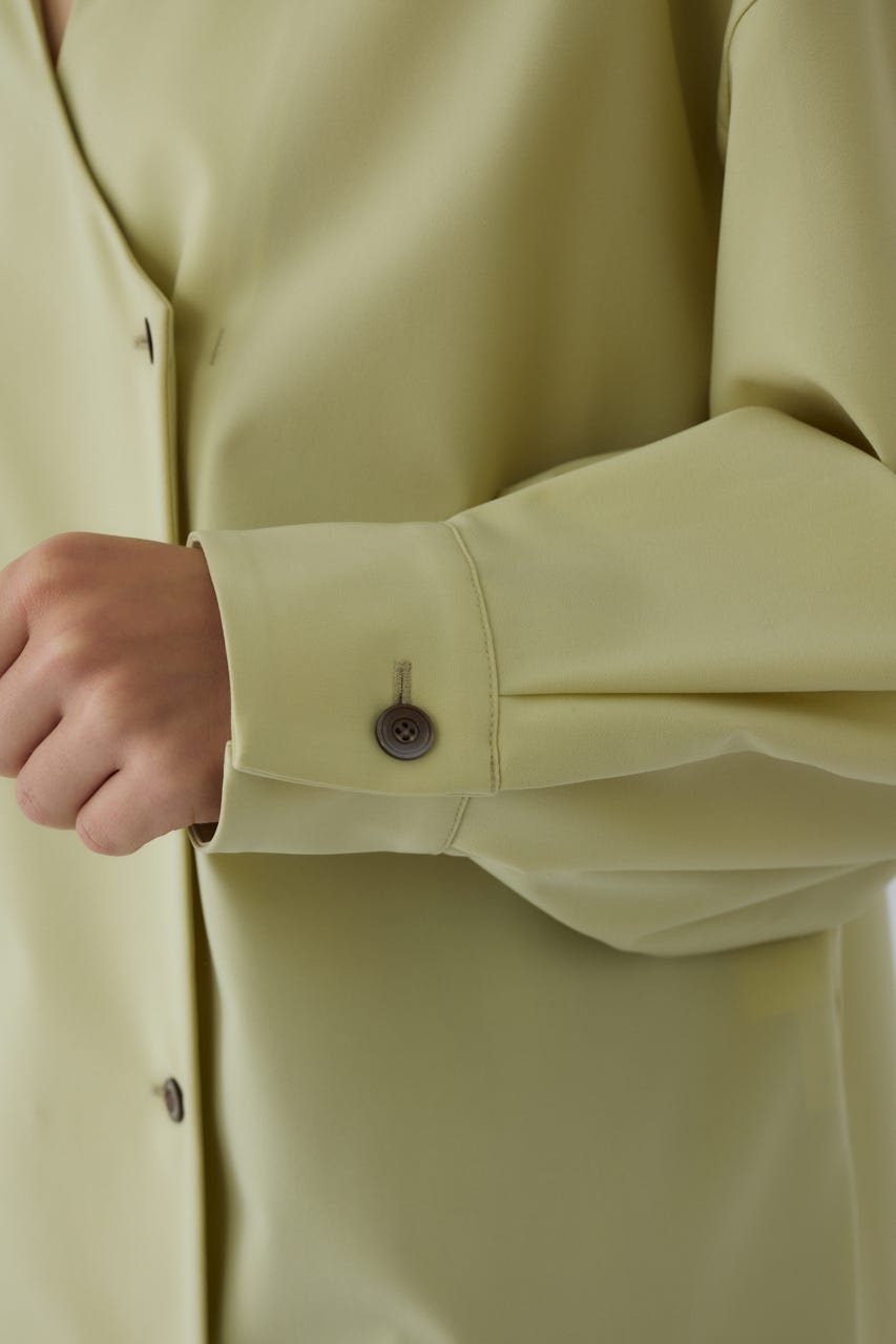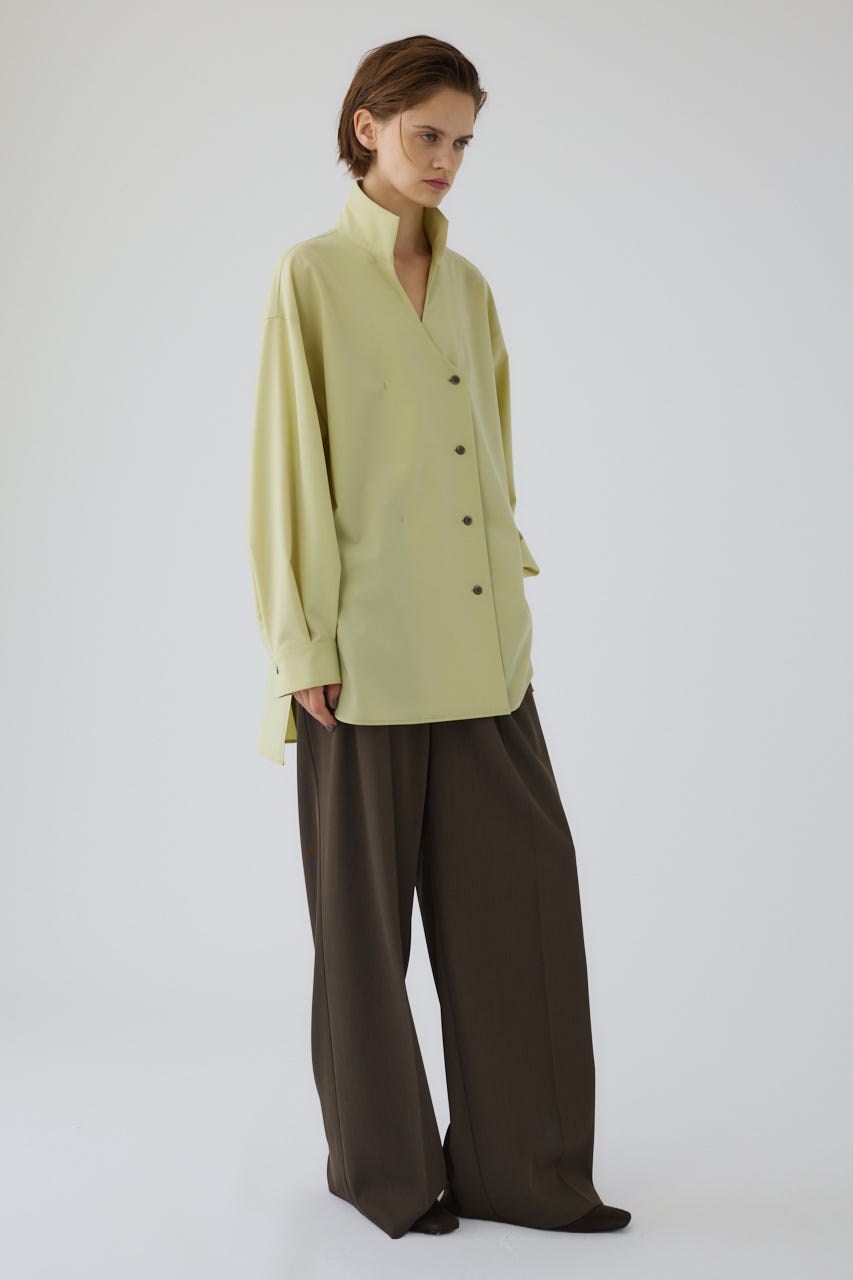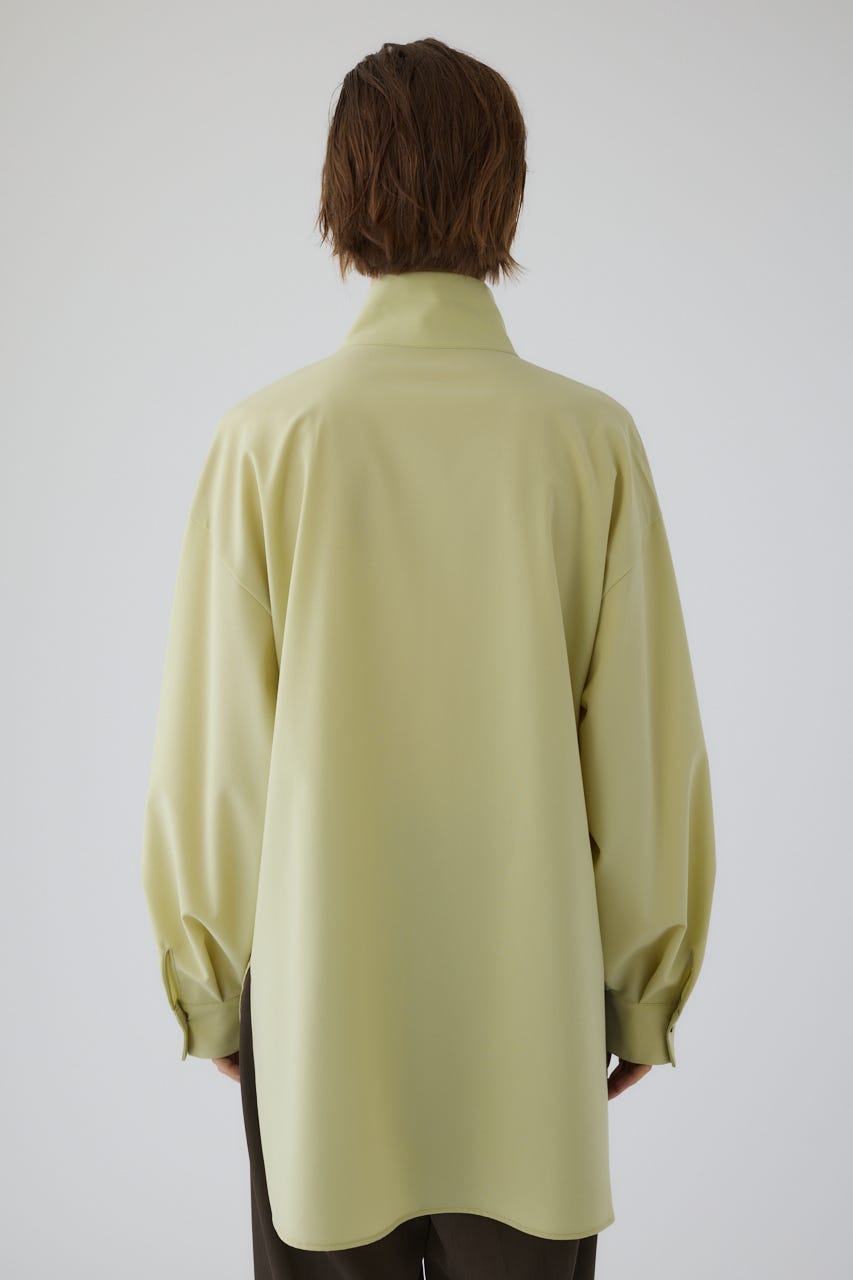 ■POINT:接触冷感・UVカット機能付きでシワになりにくい中肉合繊生地を使用した、ジャケットのような雰囲気のミドル丈シャツ。