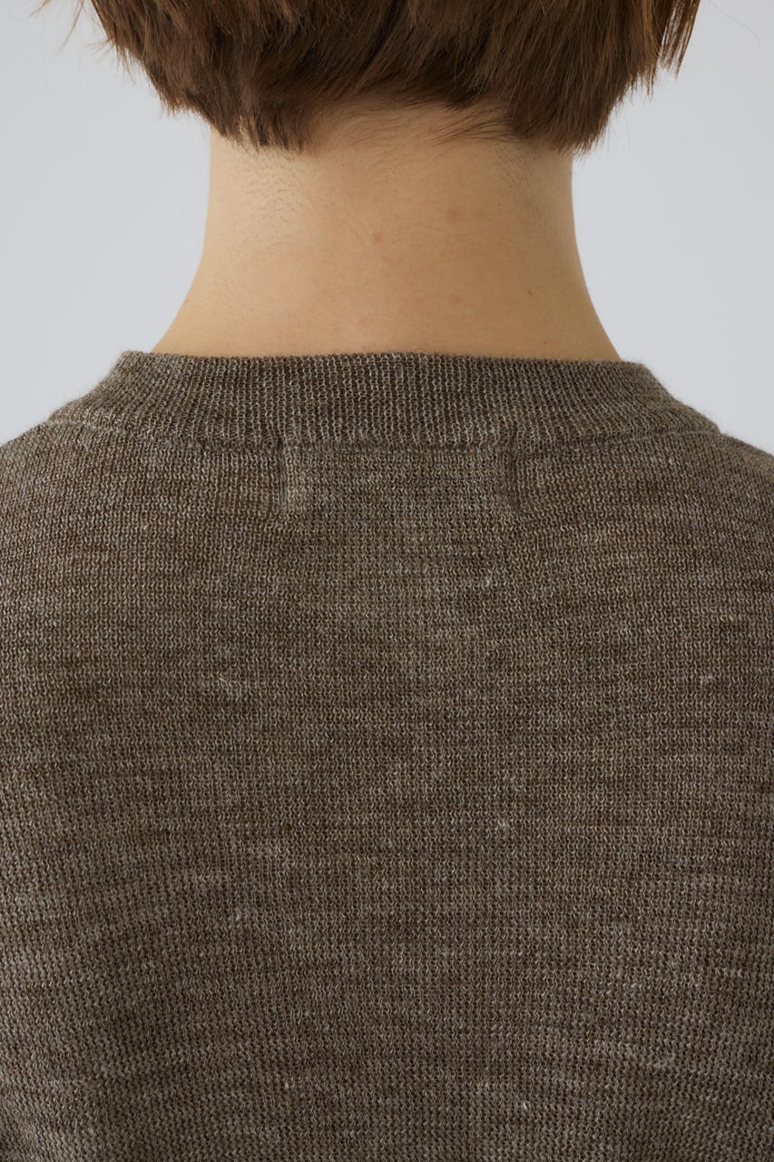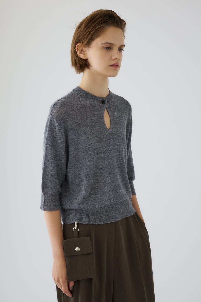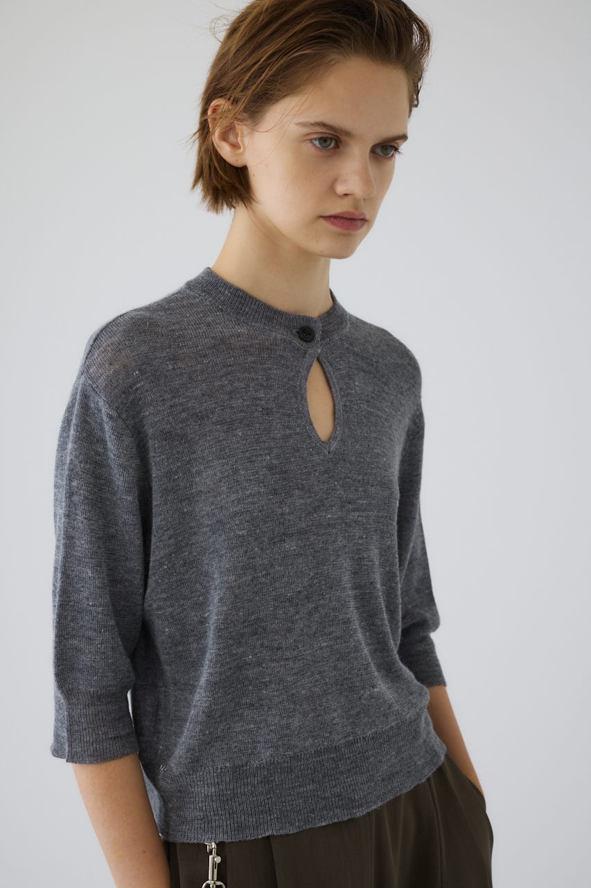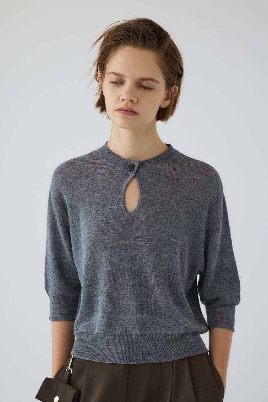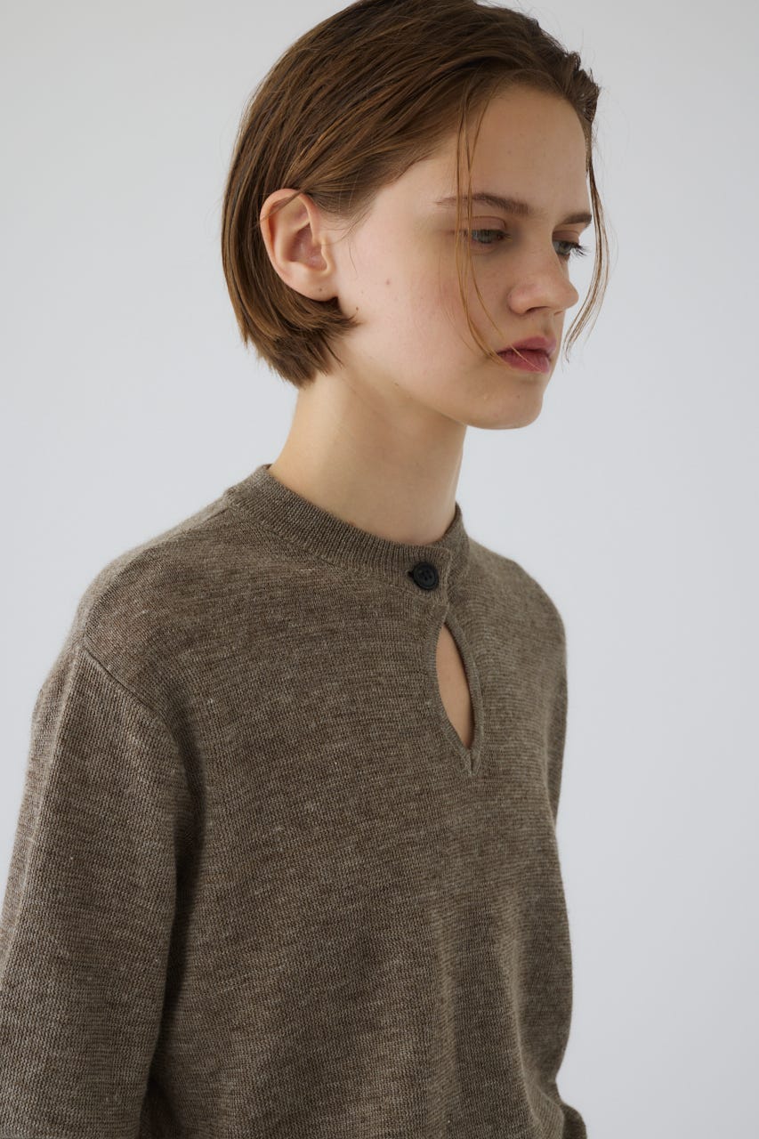■POINT:ミニマルデザインの中にフロントのオーバルカットでさりげない個性をプラスした、麻100%のニットトップス。
