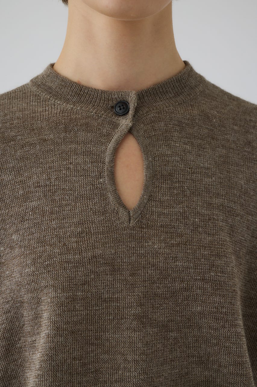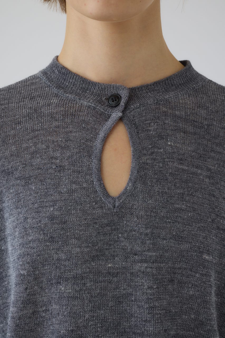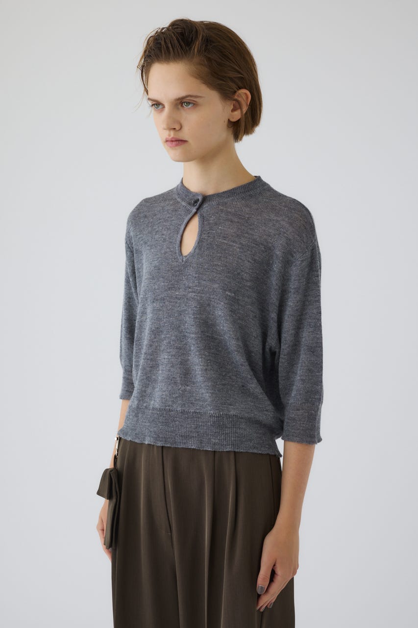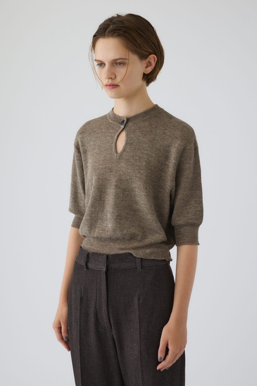 ■POINT:ミニマルデザインの中にフロントのオーバルカットでさりげない個性をプラスした、麻100%のニットトップス。