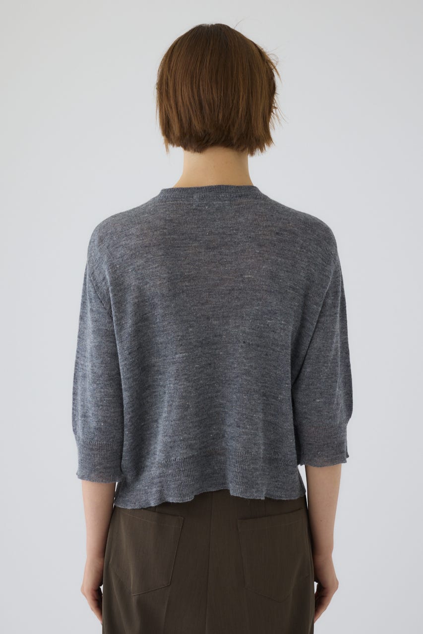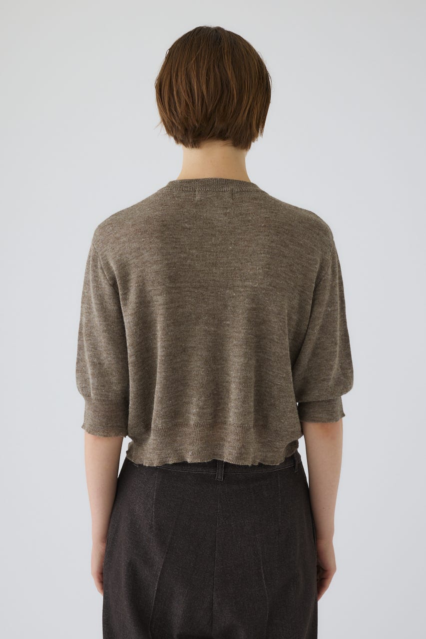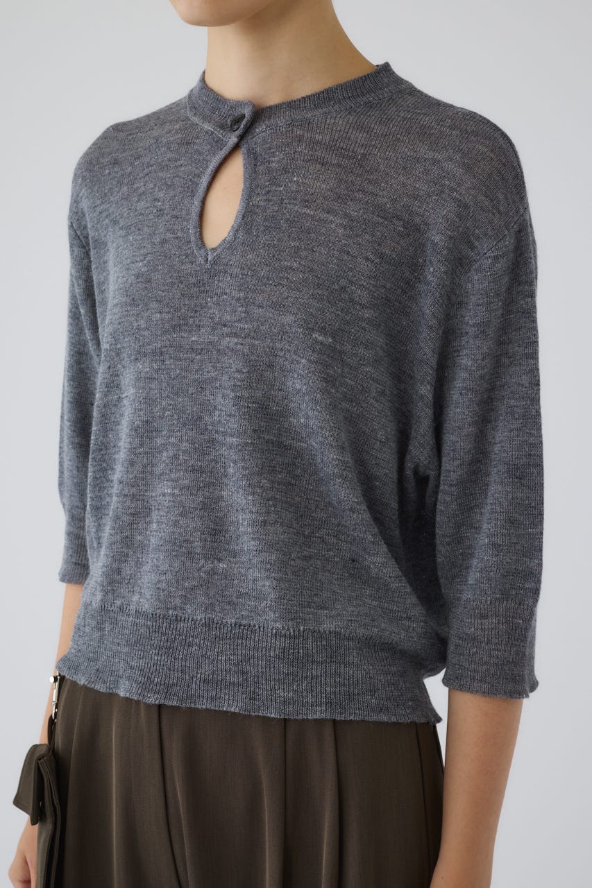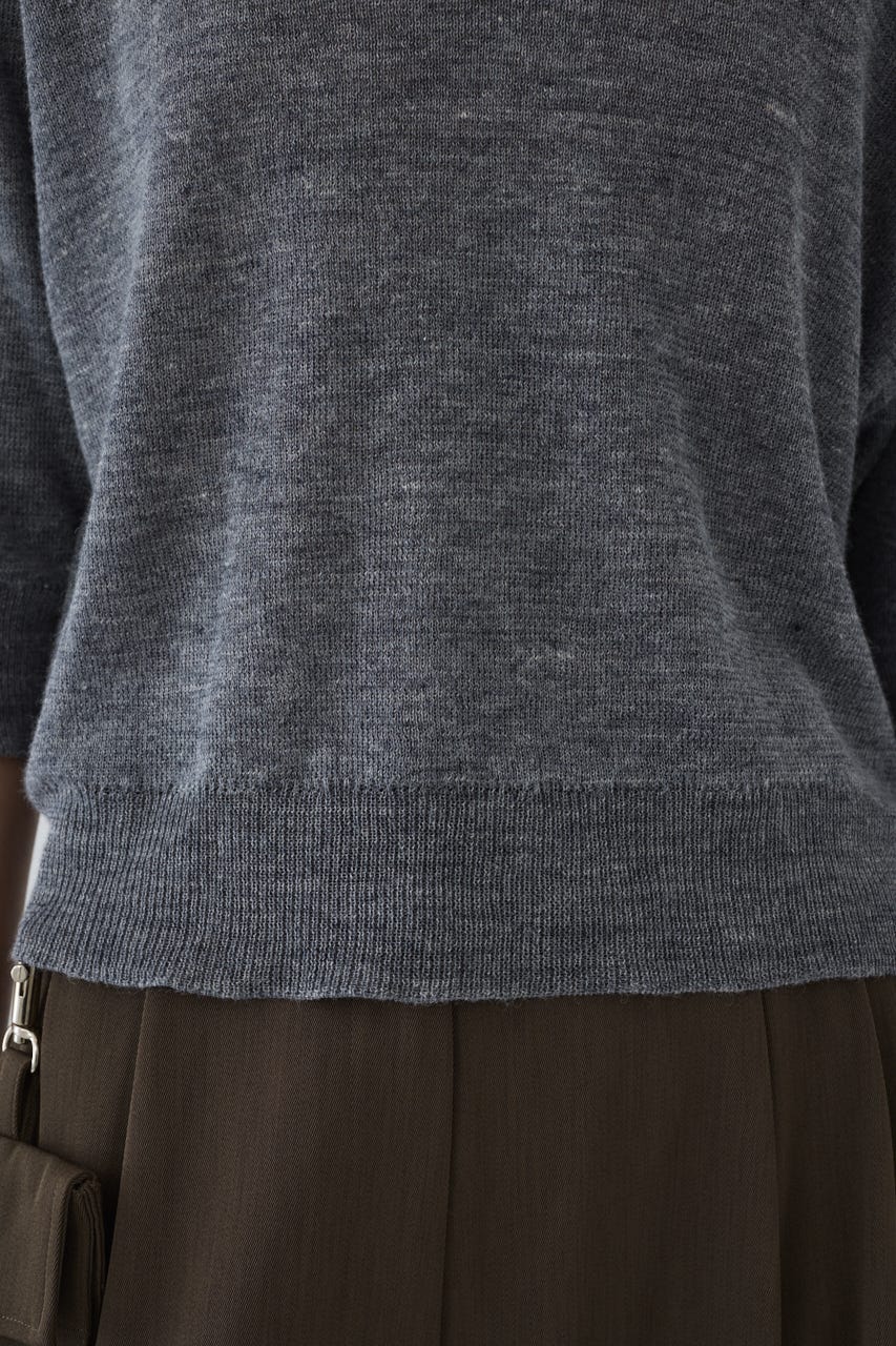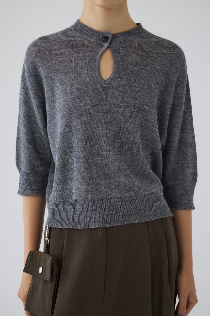 ■POINT:ミニマルデザインの中にフロントのオーバルカットでさりげない個性をプラスした、麻100%のニットトップス。