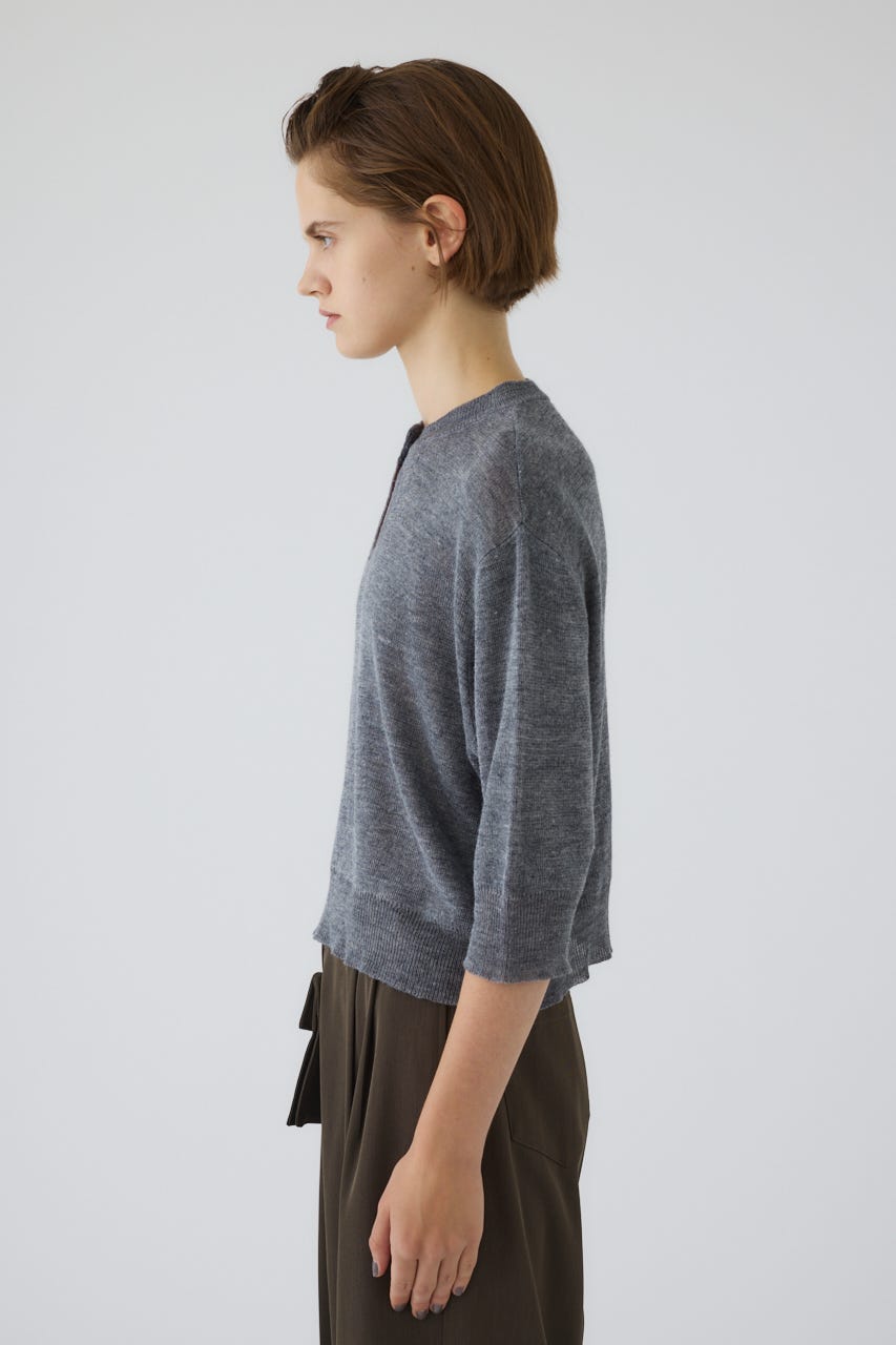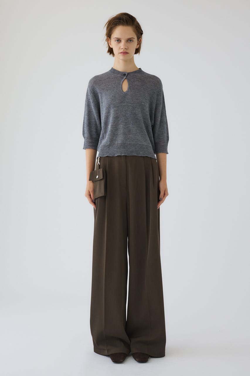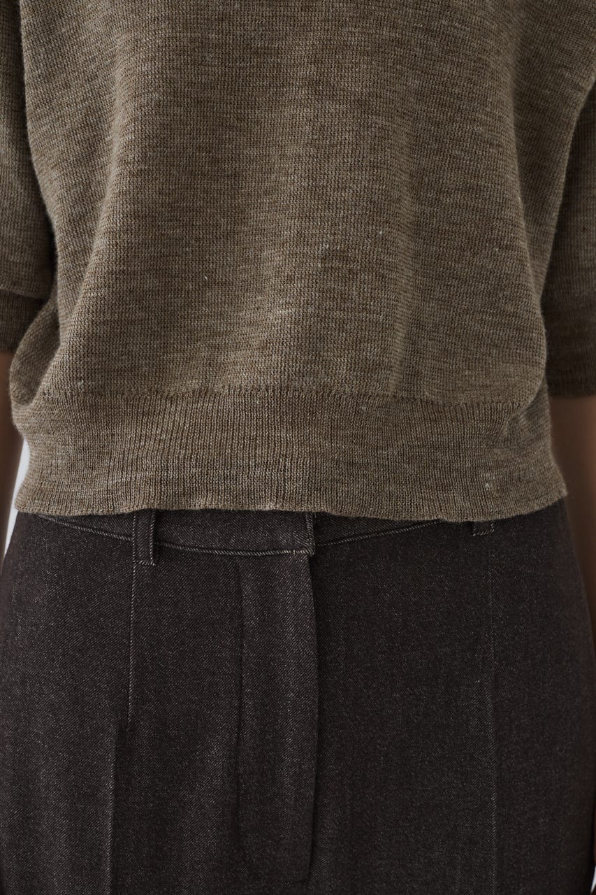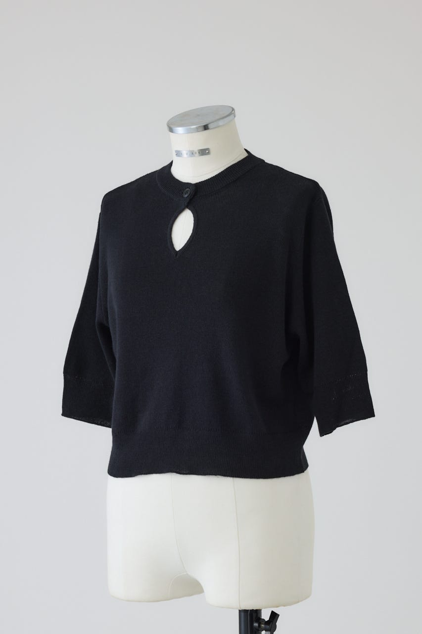 ■POINT:ミニマルデザインの中にフロントのオーバルカットでさりげない個性をプラスした、麻100%のニットトップス。
