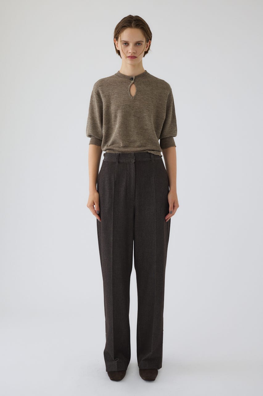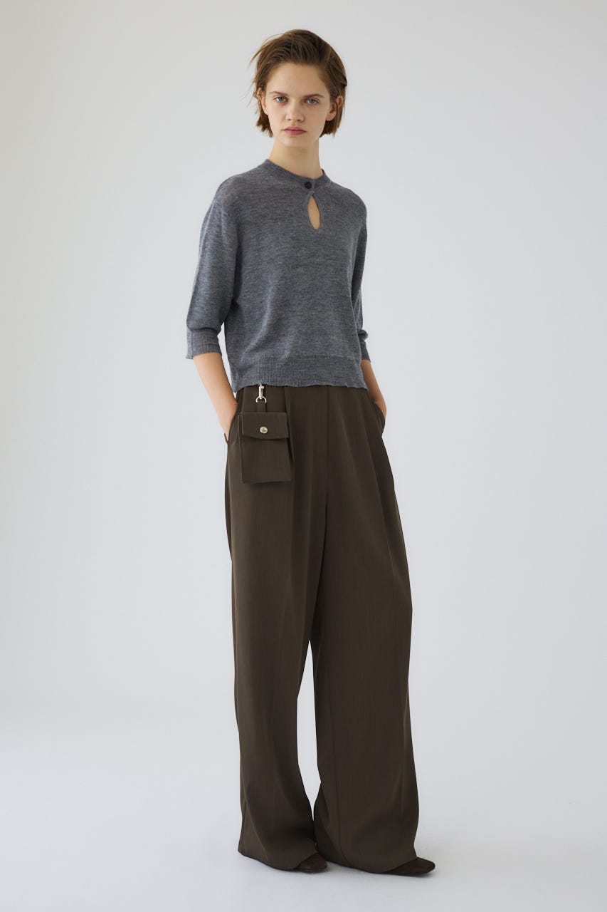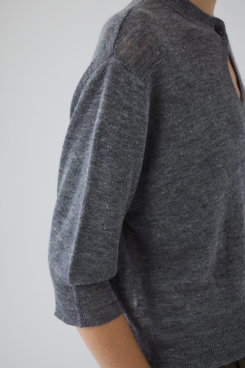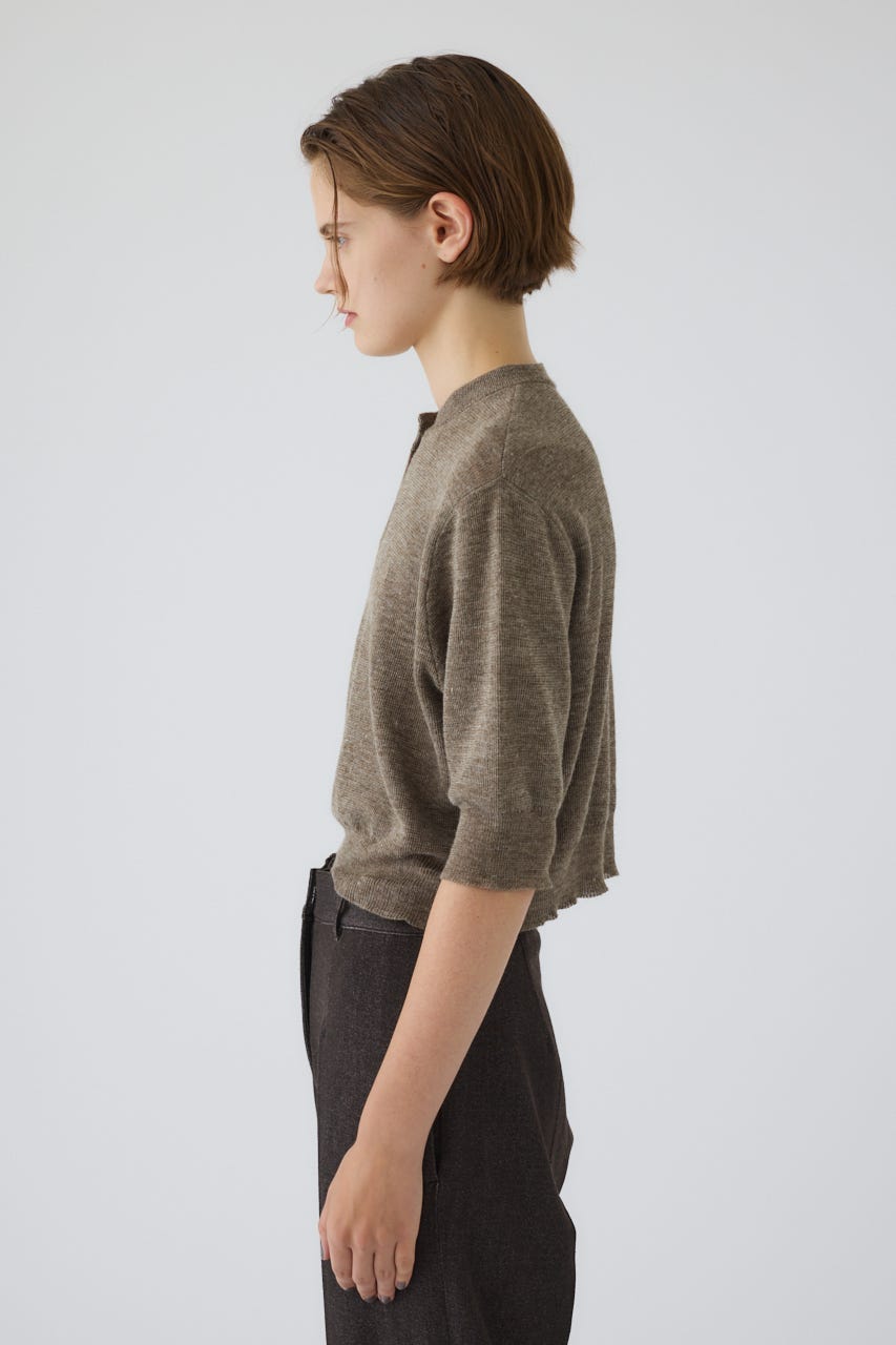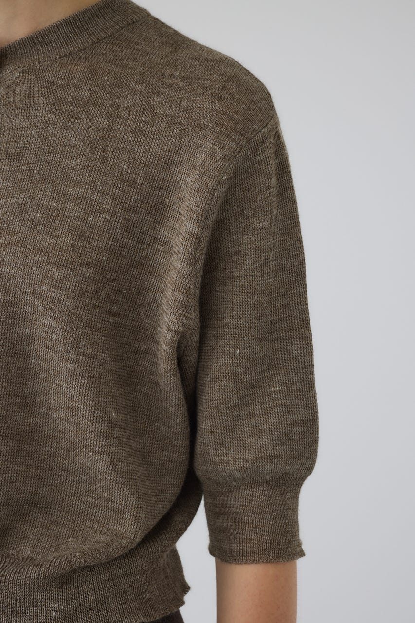 ■POINT:ミニマルデザインの中にフロントのオーバルカットでさりげない個性をプラスした、麻100%のニットトップス。