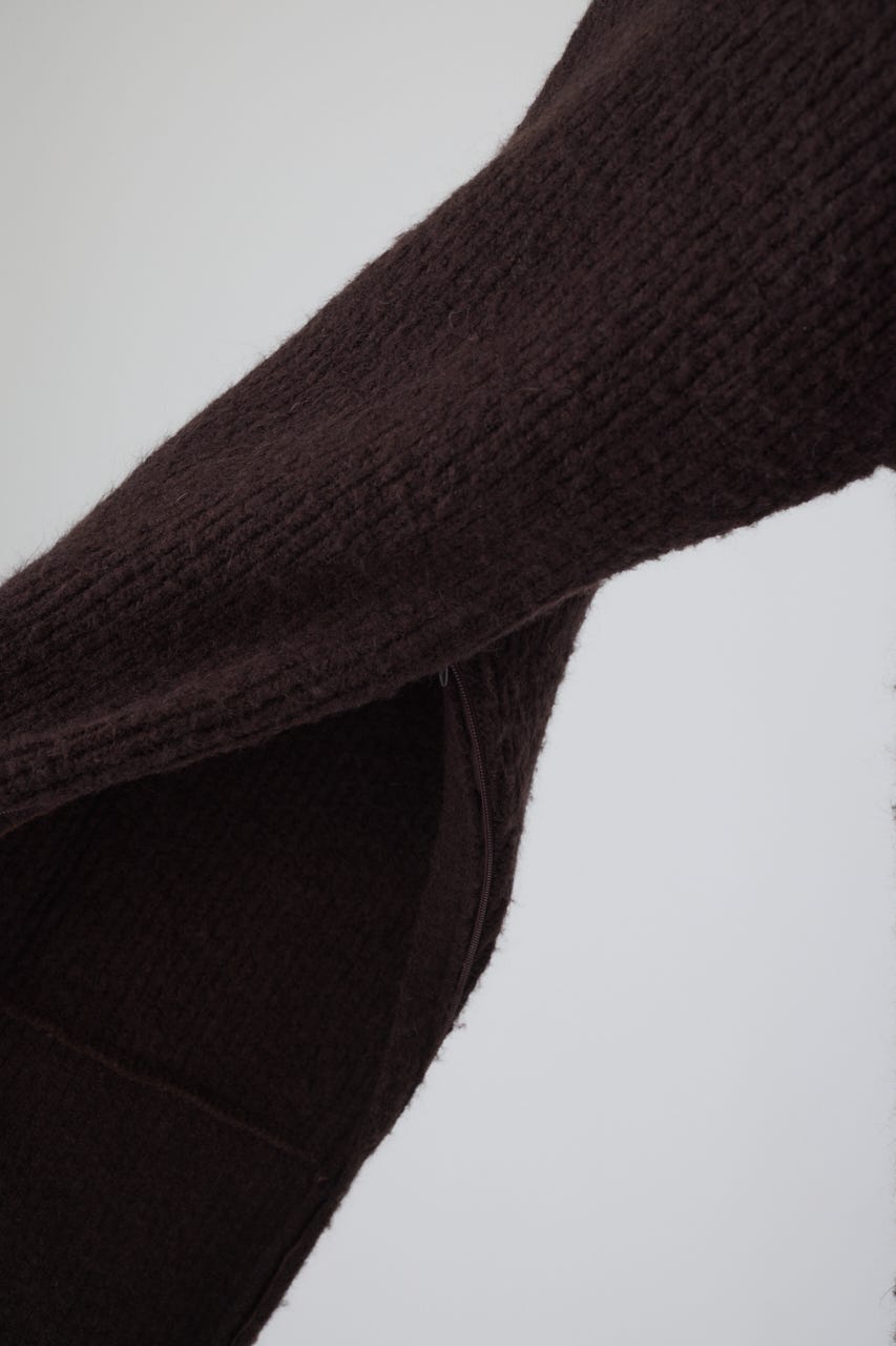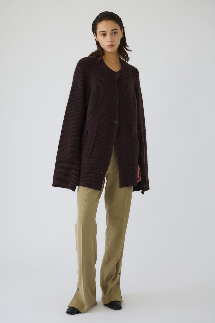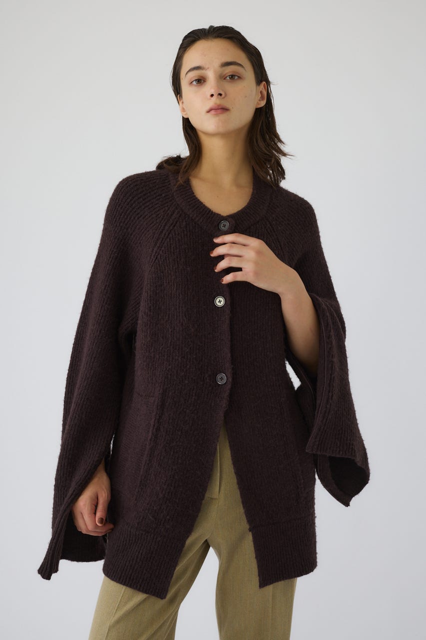 ■POINT:袖口のコンシールファスナーを開けるとポンチョのような新鮮なルックスに変化するニットカーディガン。