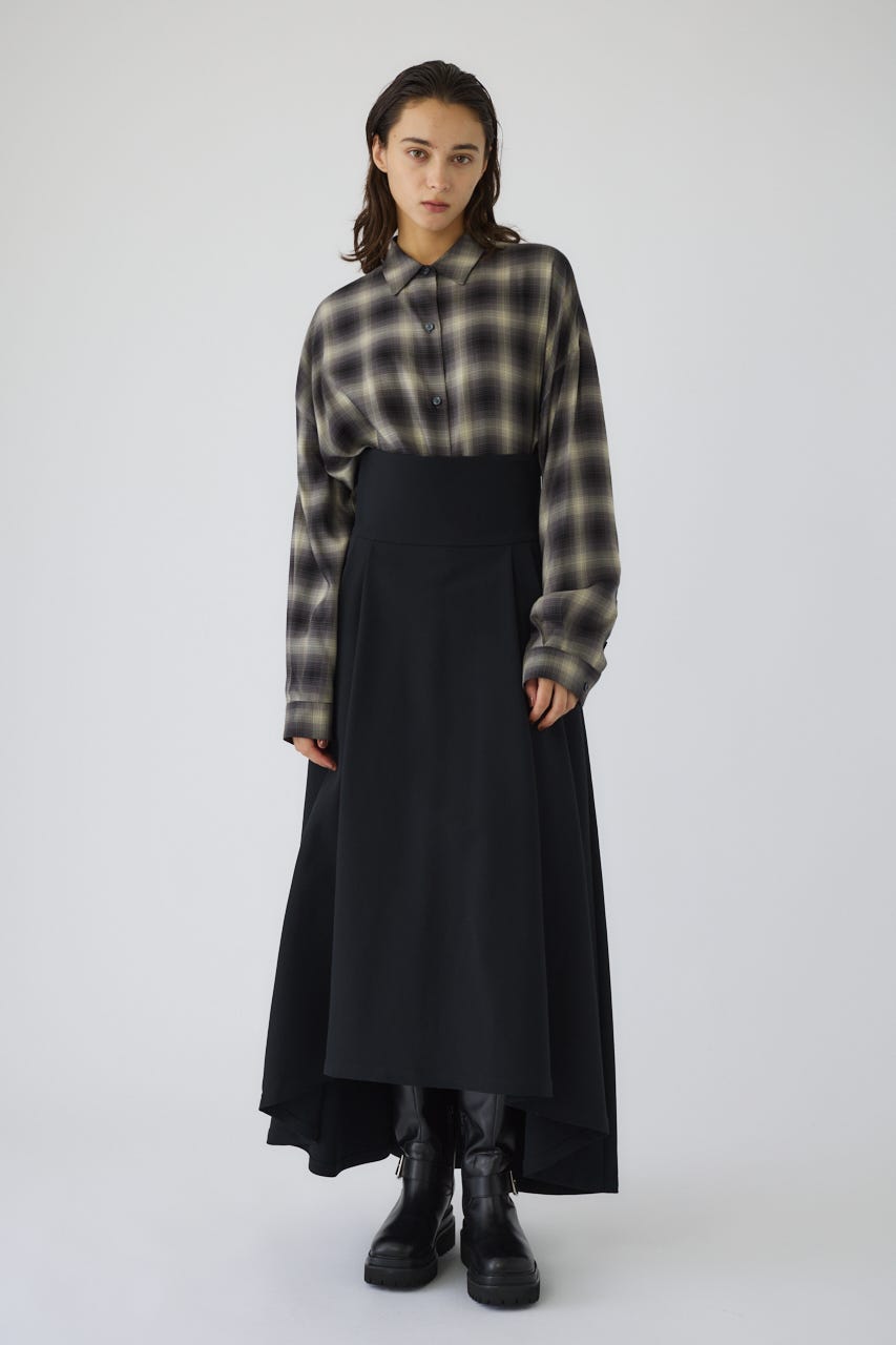 RIM.ARKでは定番となりつつあるボリュームスカートですが、遠くからでも目をひくたっぷりとした分量に加え今回はタックでラッフルを表現し、
