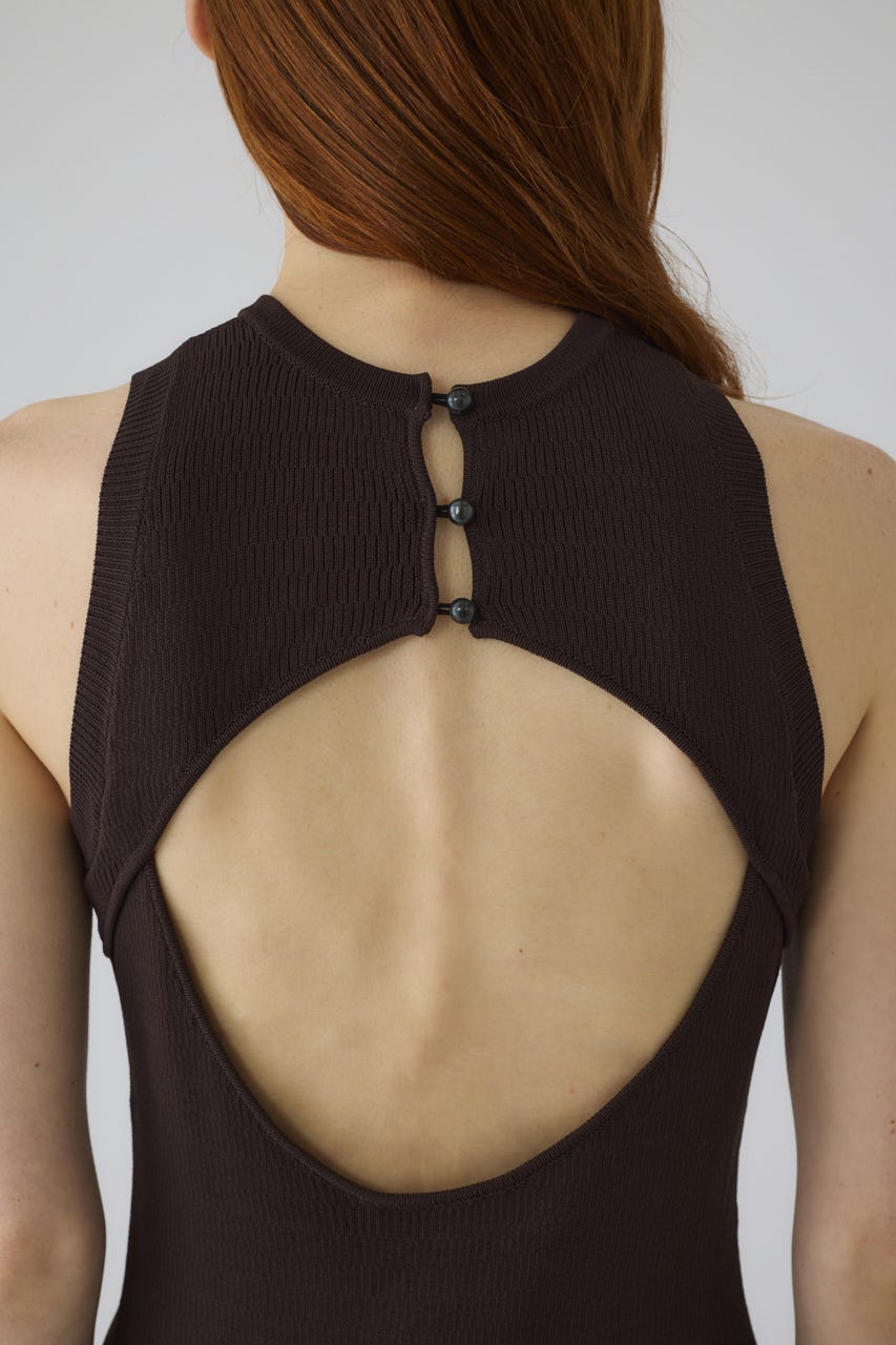■POINT:一見するとミニマルながら、大胆な背中のカットアウトで魅せるギャップが印象的なワンピース。