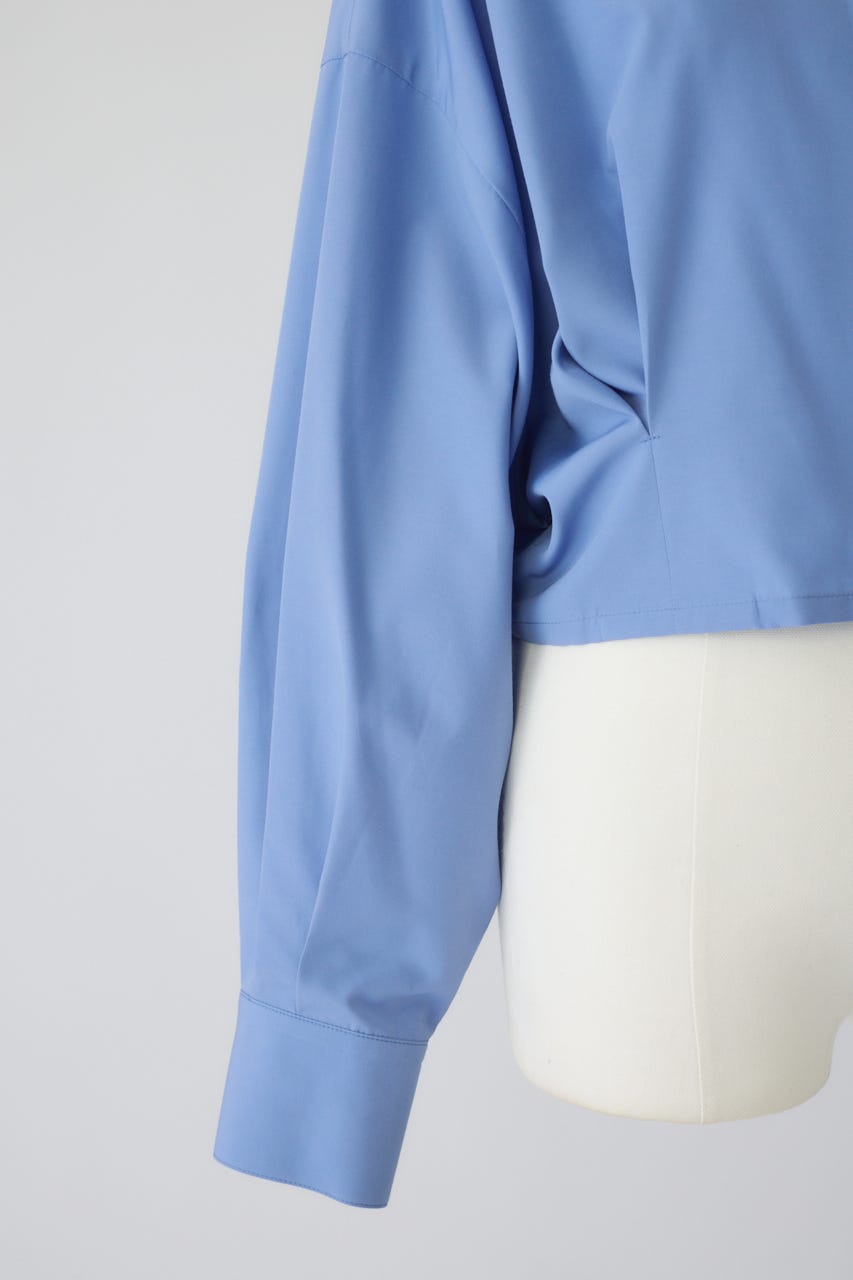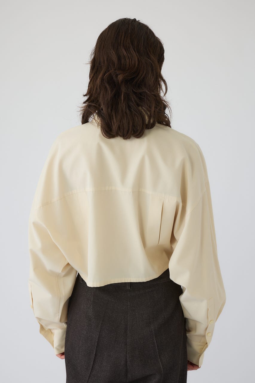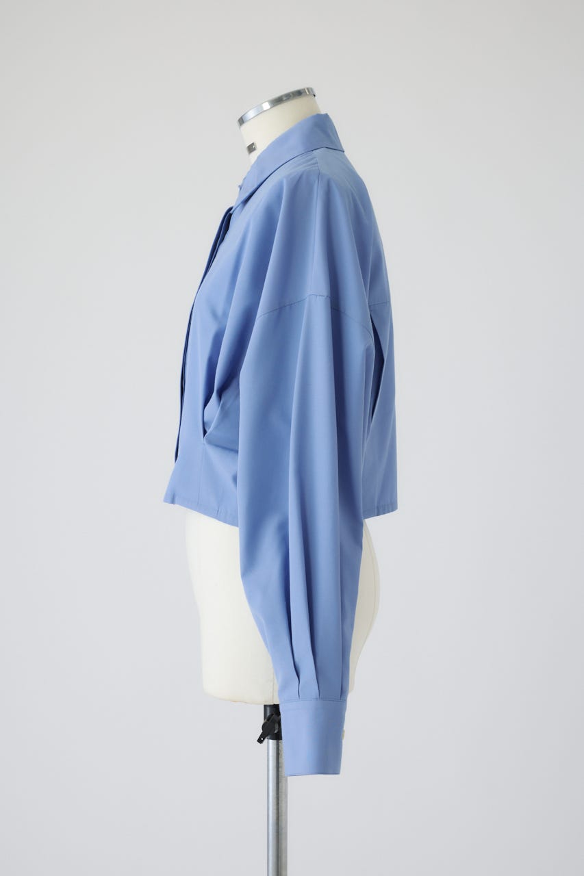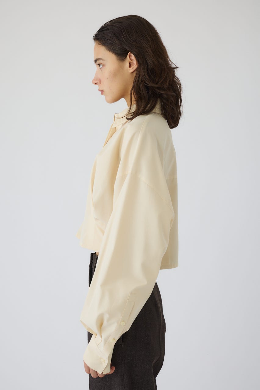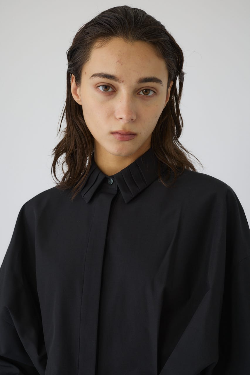 ■POINT:ハリ感とタックで生まれる構築的な丸みのあるフォルムが印象的なシャツ。