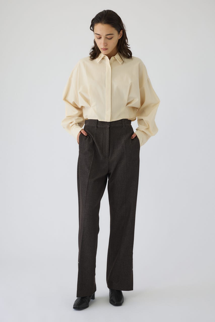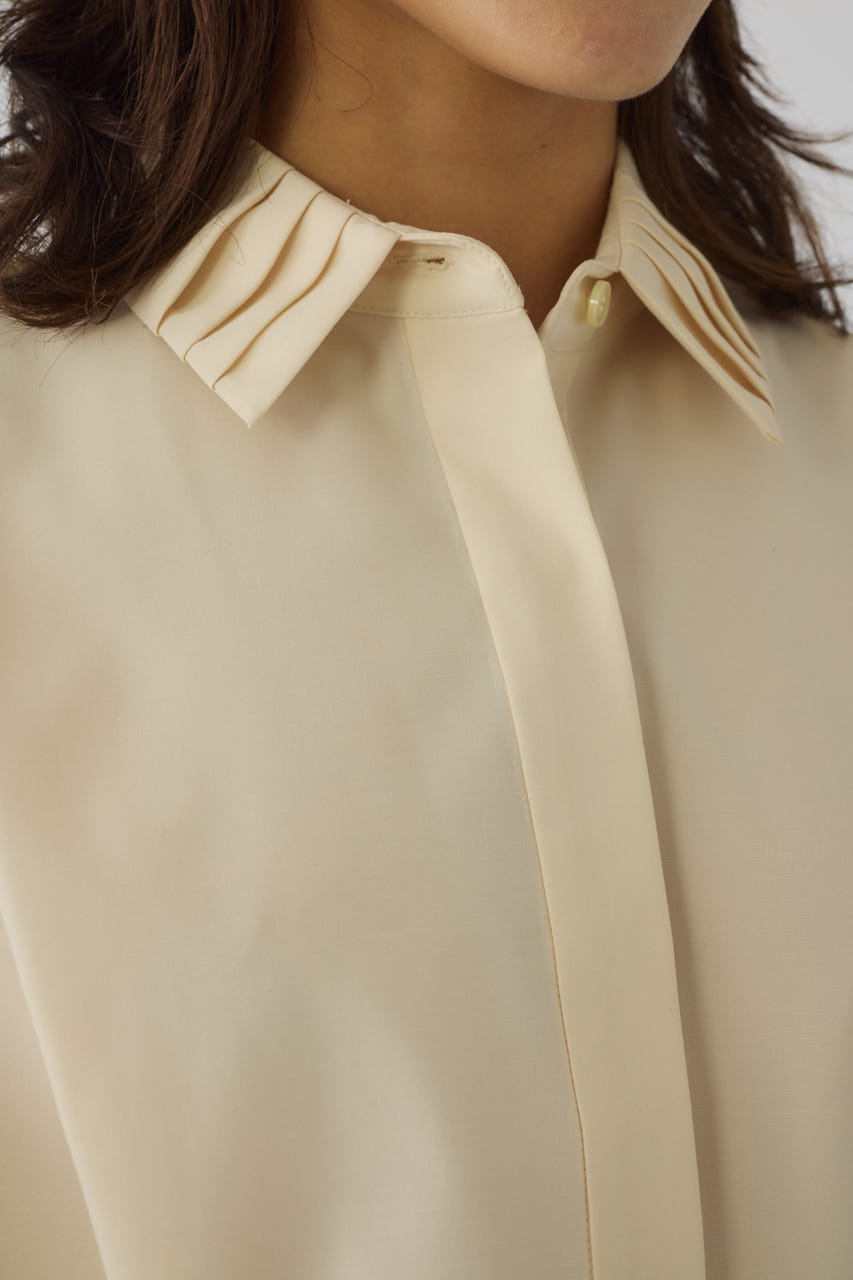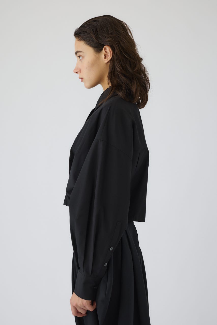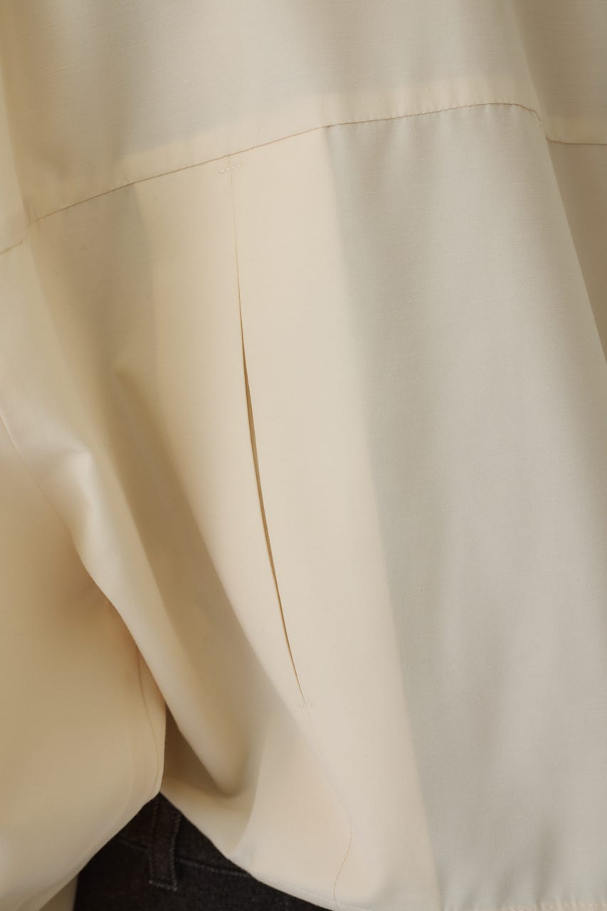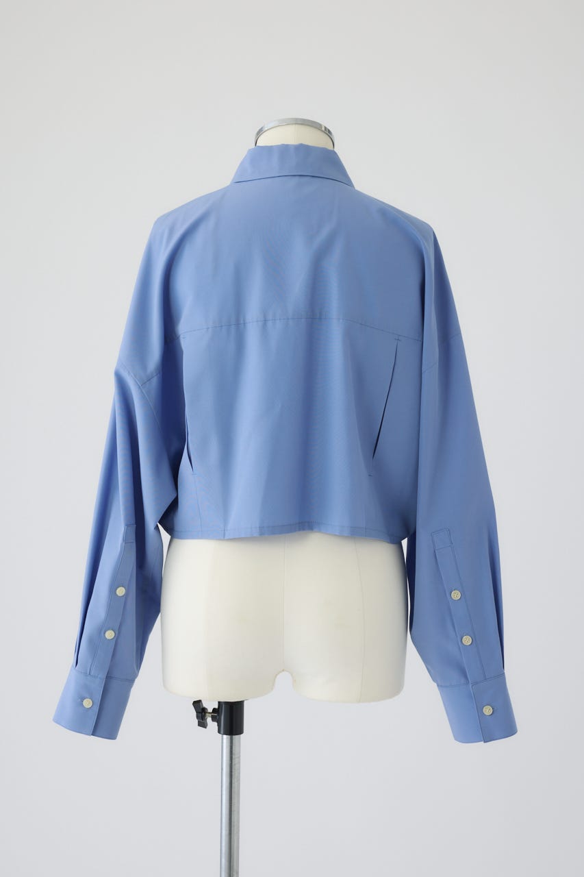 ■POINT:ハリ感とタックで生まれる構築的な丸みのあるフォルムが印象的なシャツ。