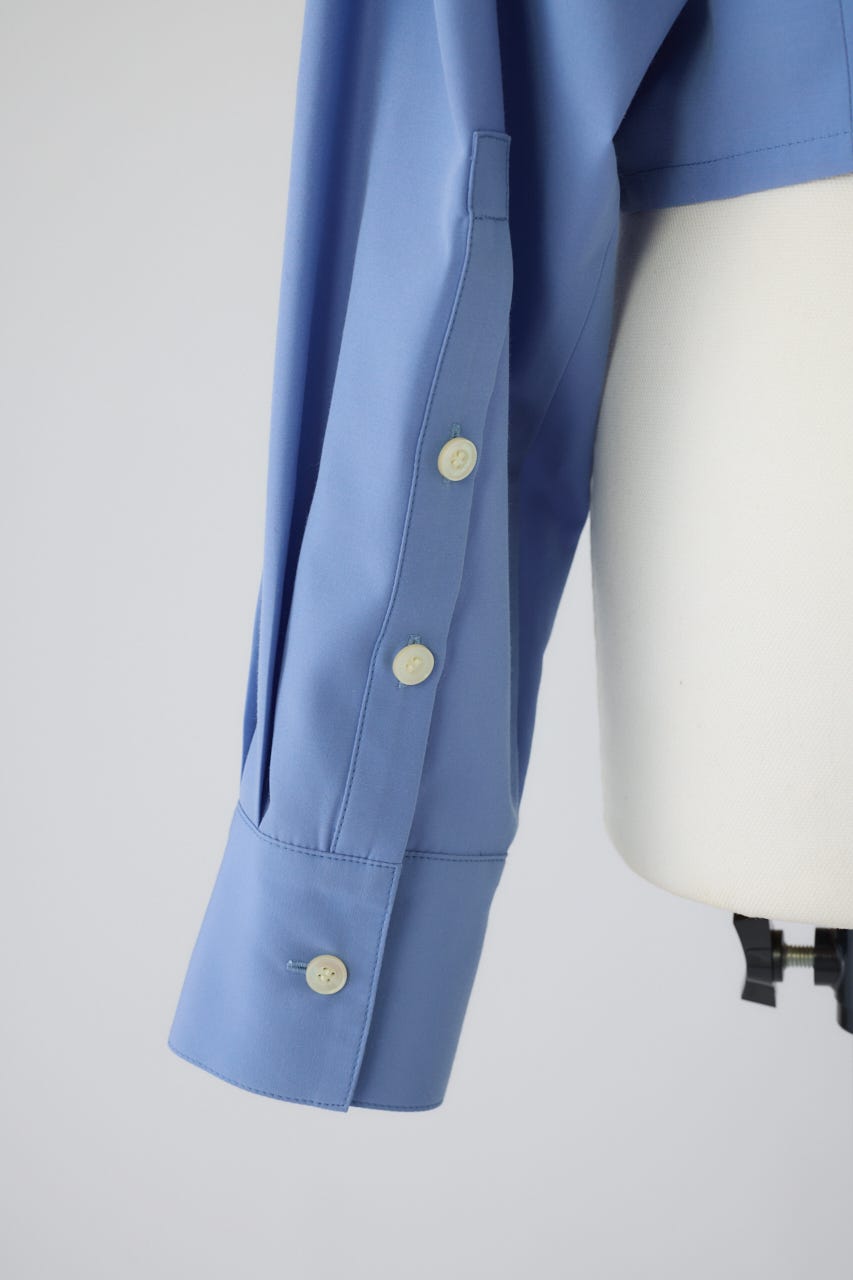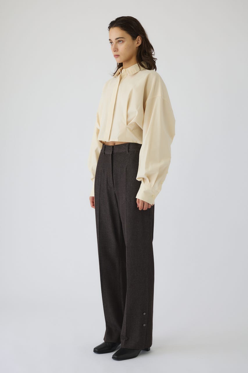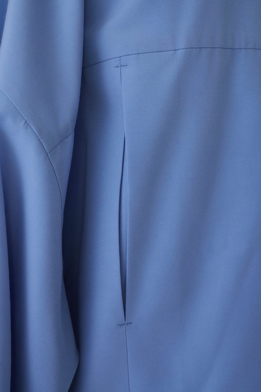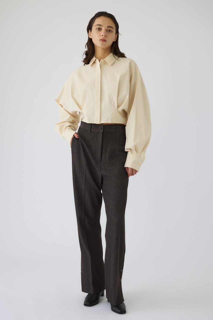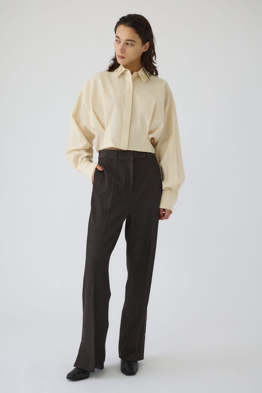 ■POINT:ハリ感とタックで生まれる構築的な丸みのあるフォルムが印象的なシャツ。