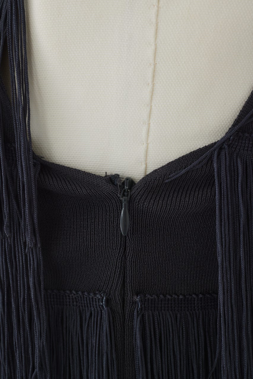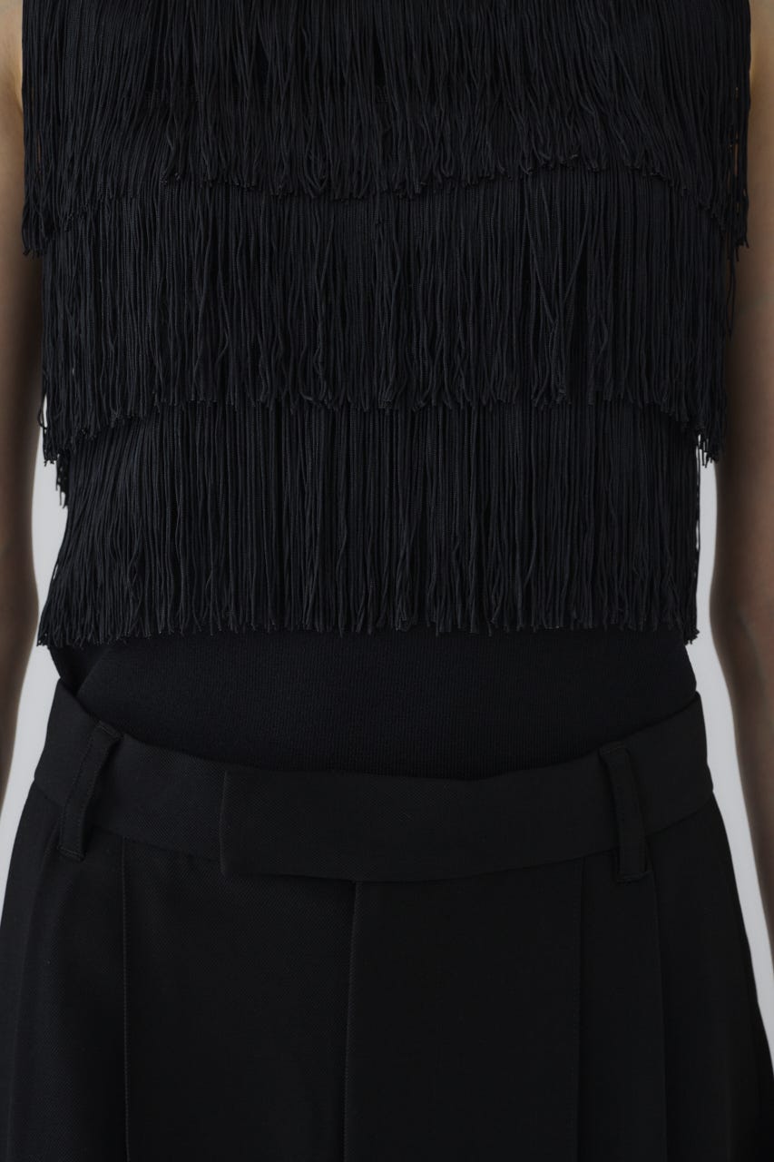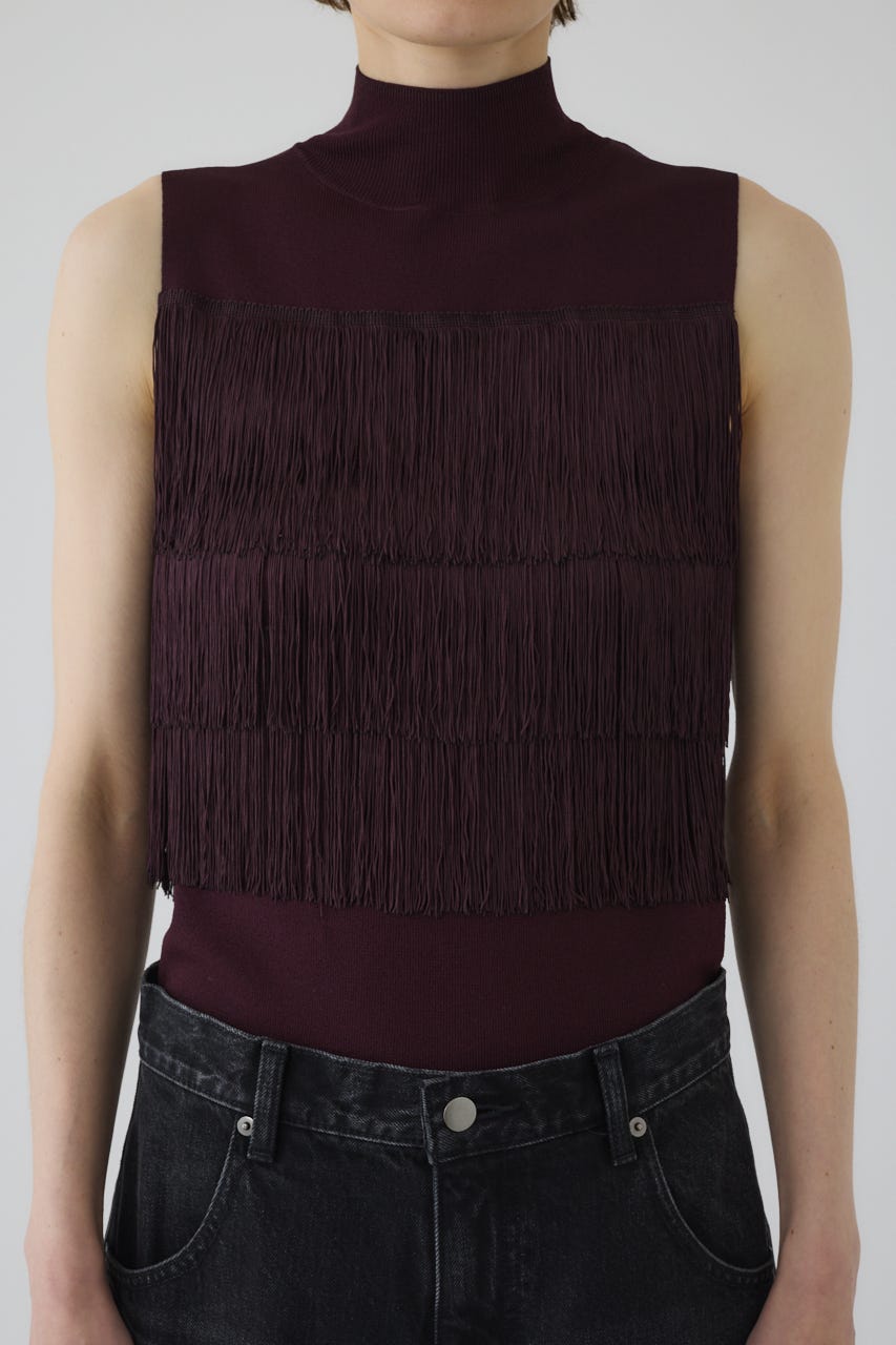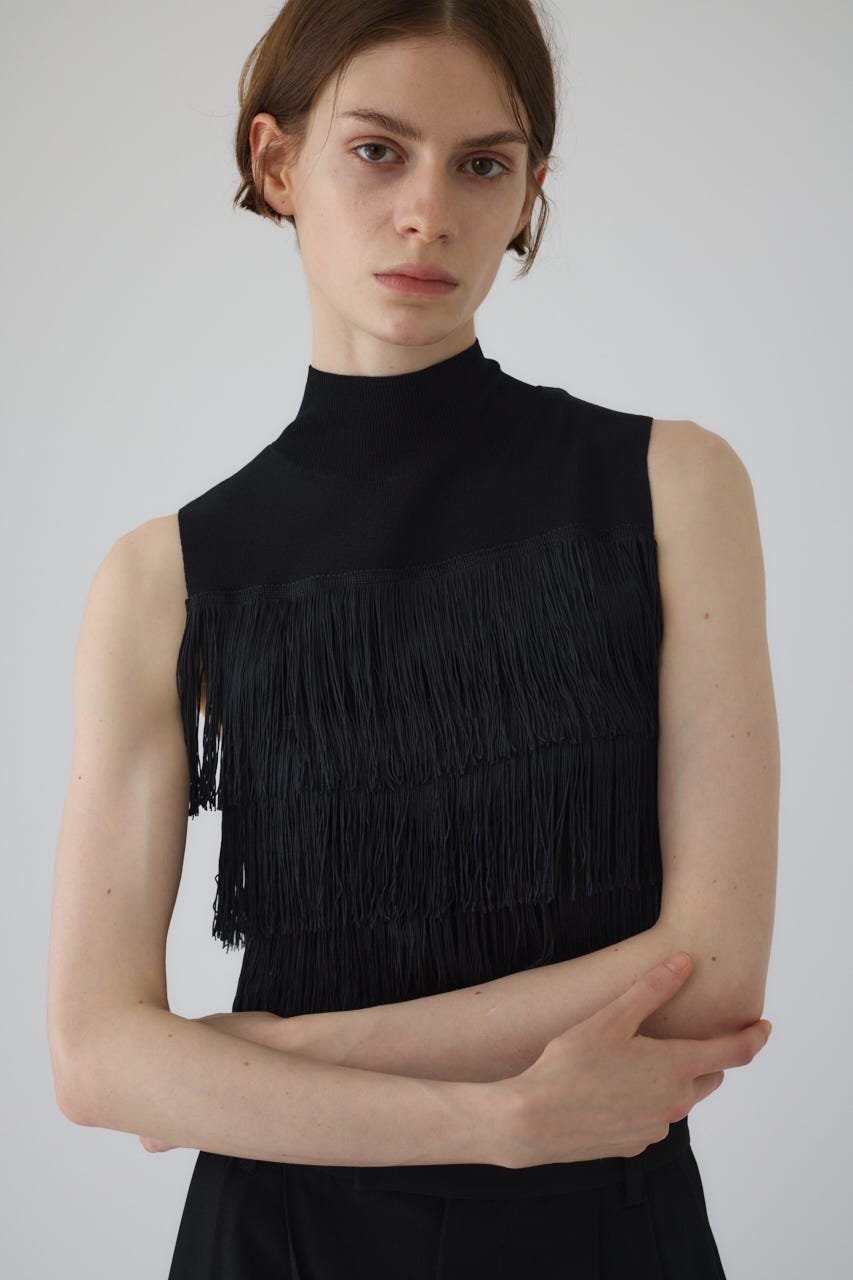 ■POINT:流れるようなフリンジがドラマチックな印象を与えるノースリーブニット。