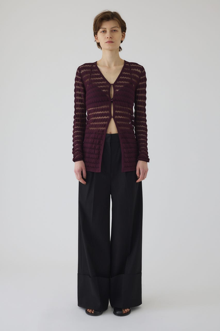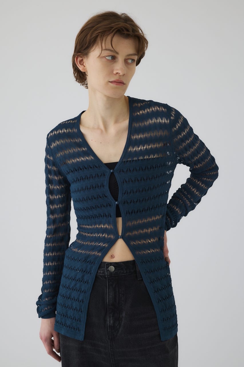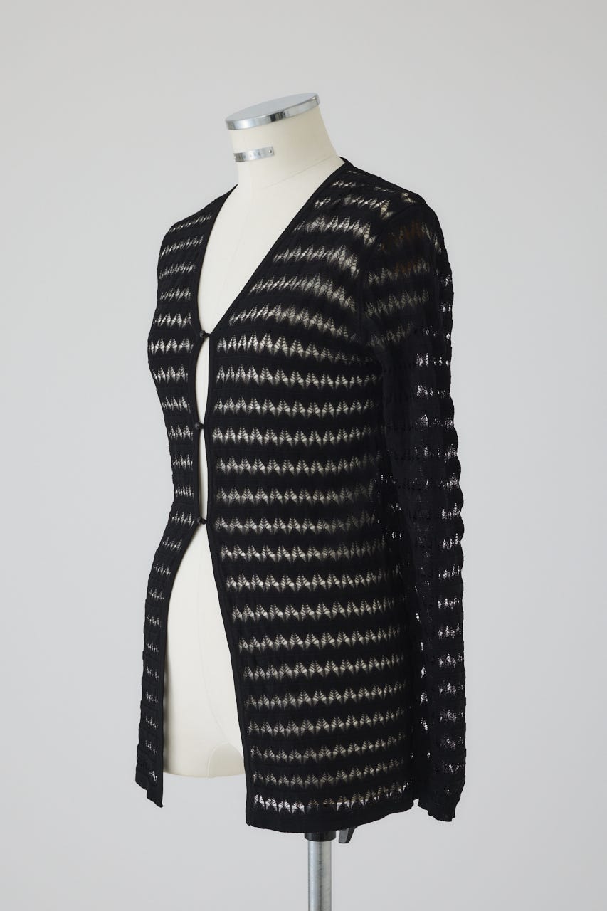 ■POINT:レーヨン・ナイロンの繊細な糸で編み立てた薄手のカーディガン。