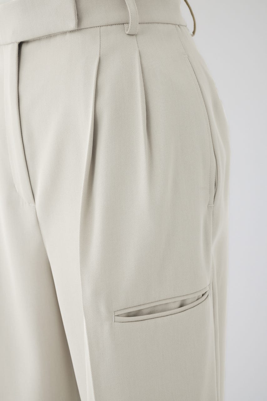 ■POINT:ウール見えするマニッシュな表情のスラックス。