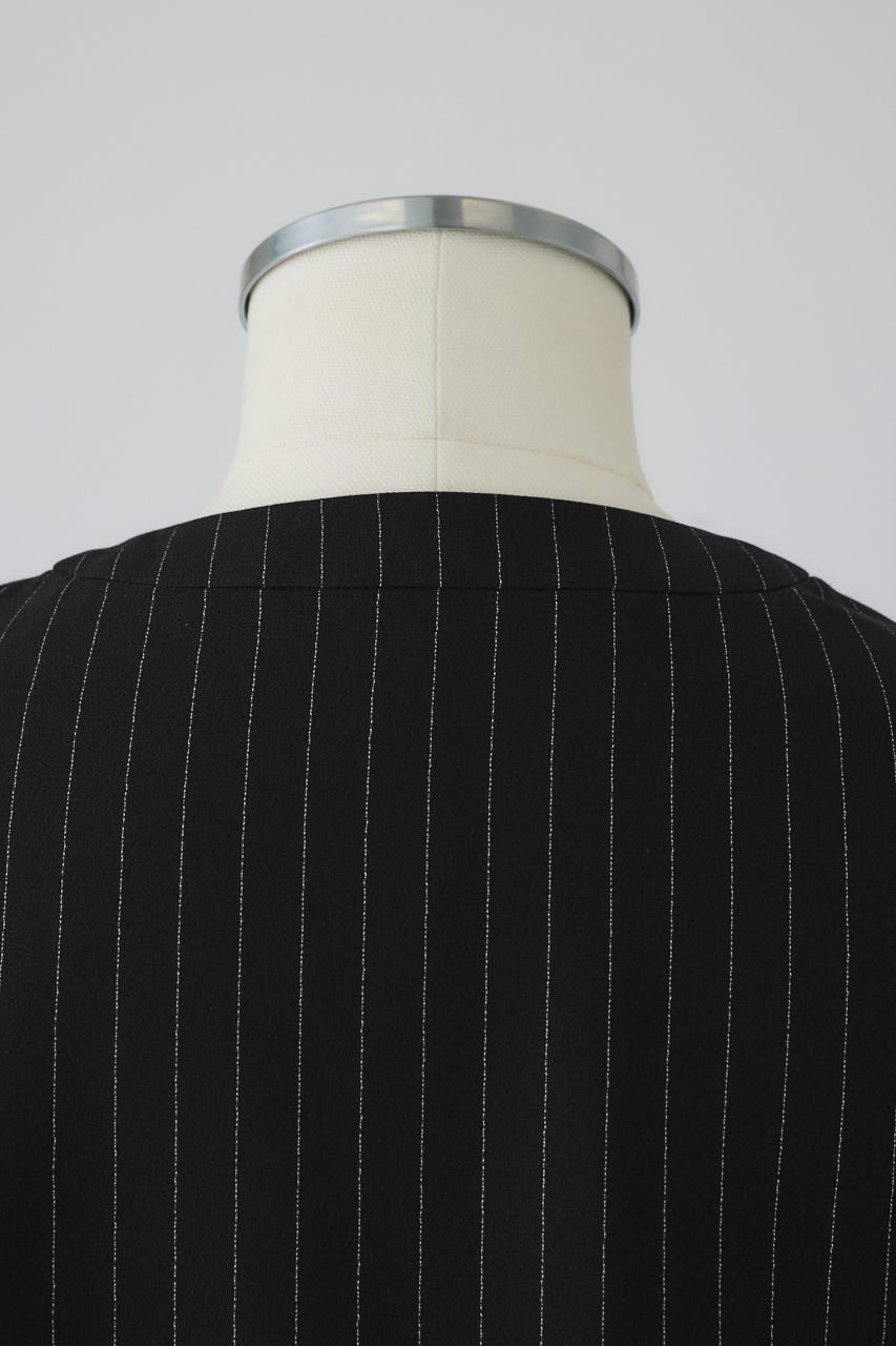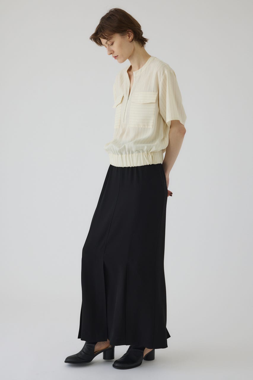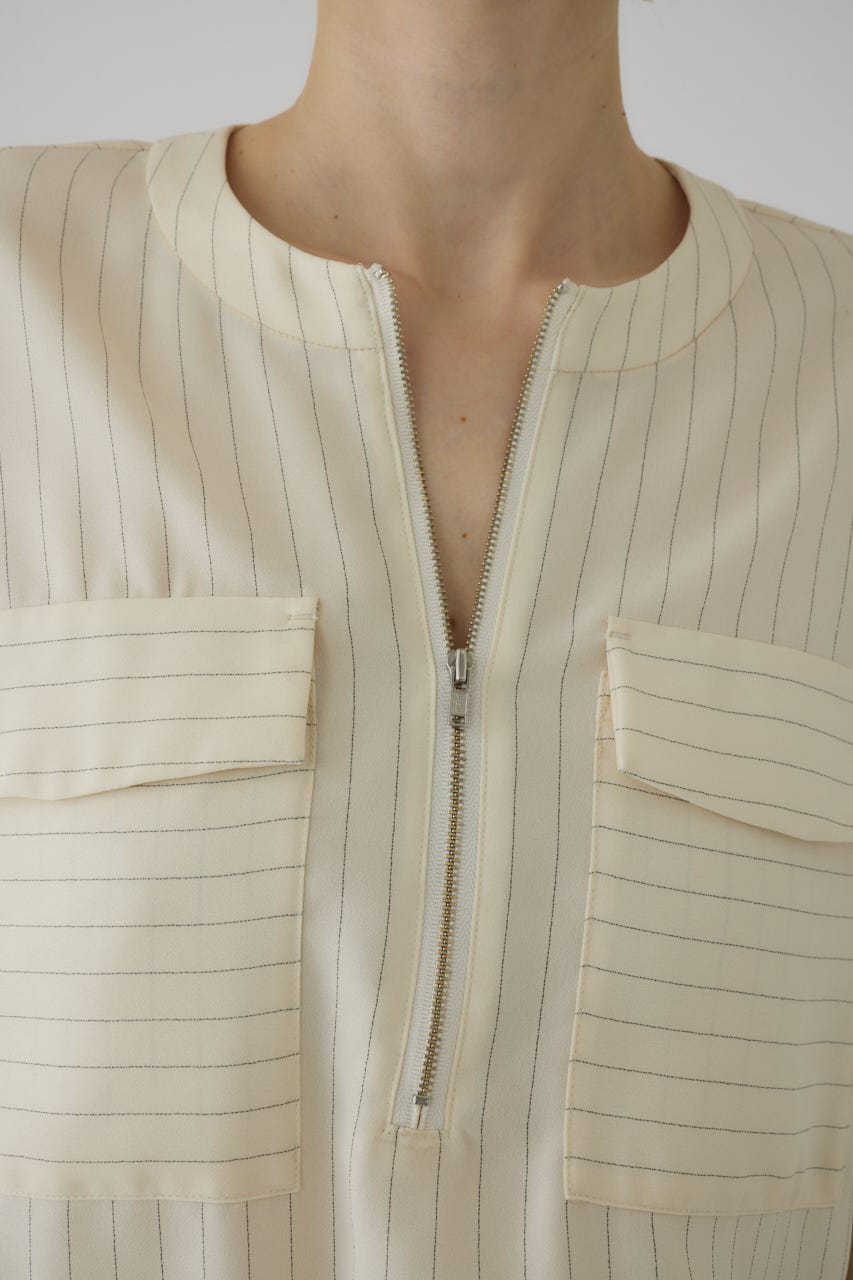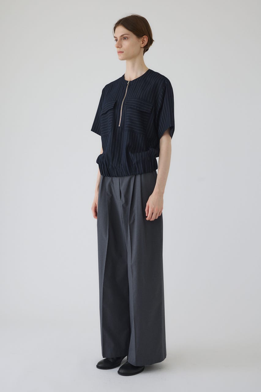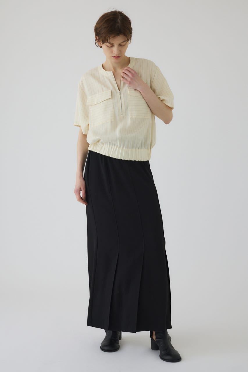 ■POINT:ストライプ柄のやや反発感のある薄手のポリエステル生地を使用した、ハーフスリーブトップス。