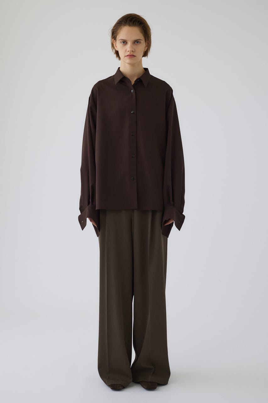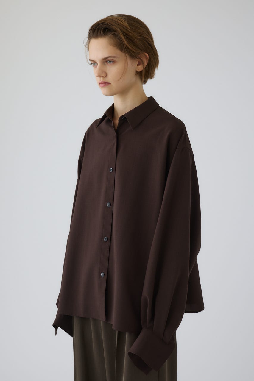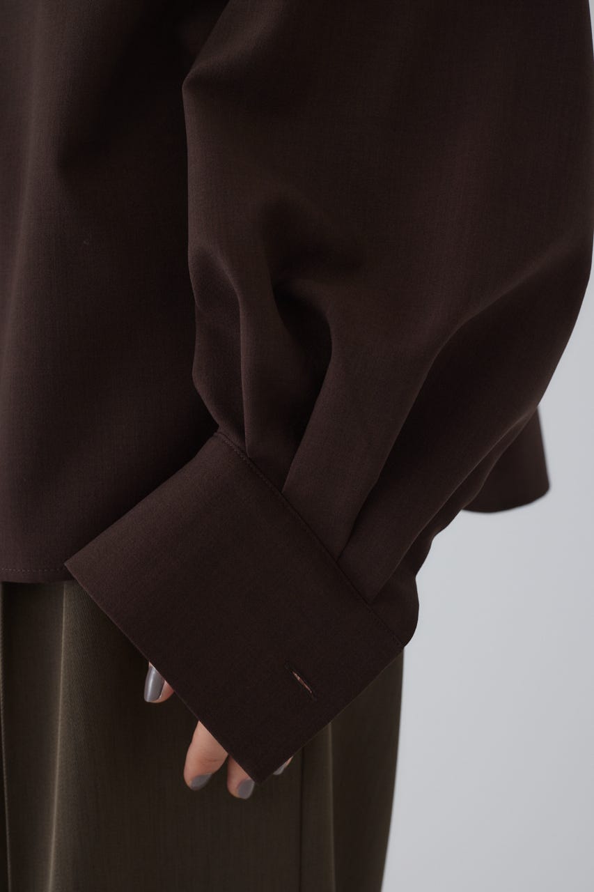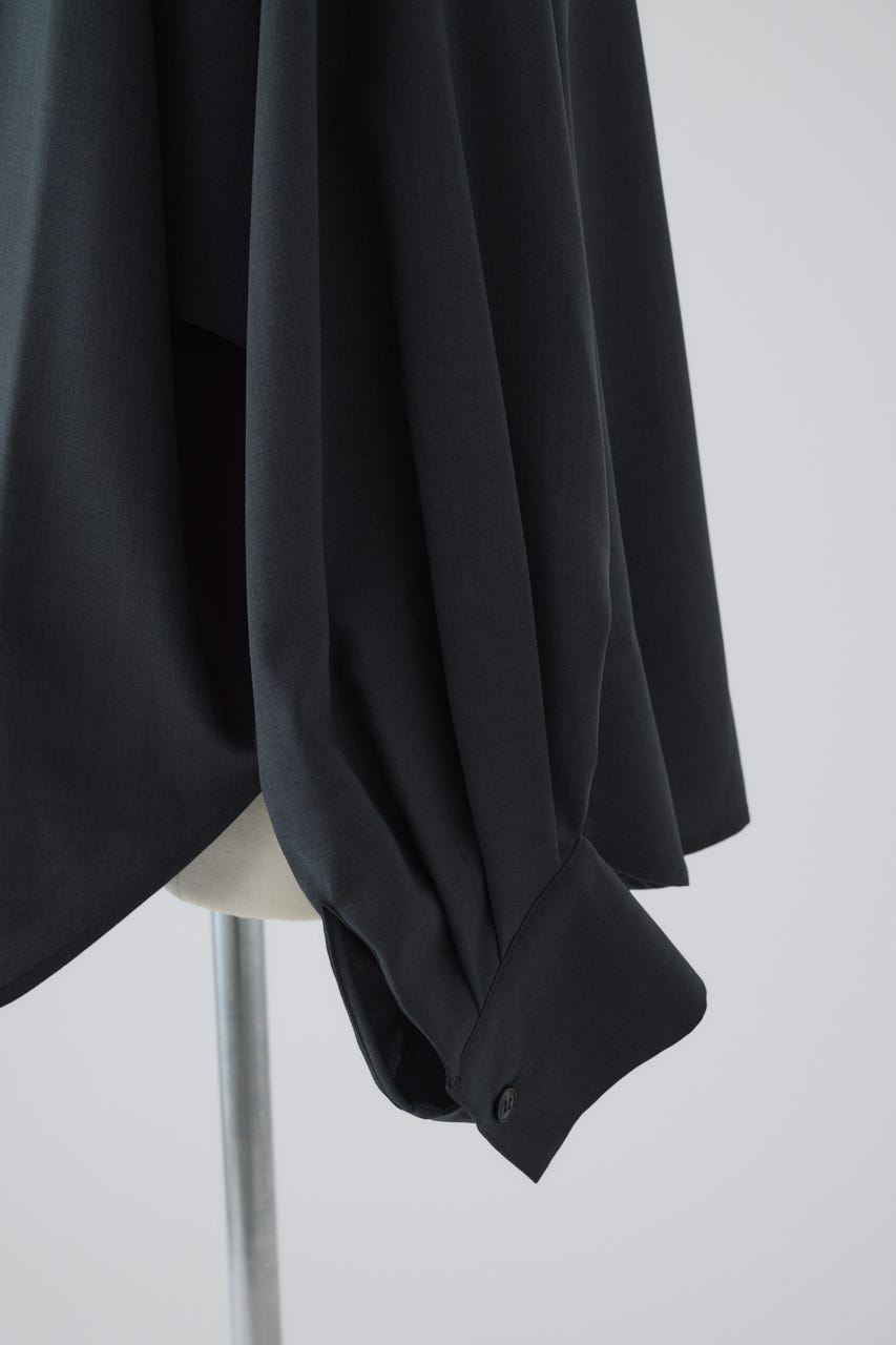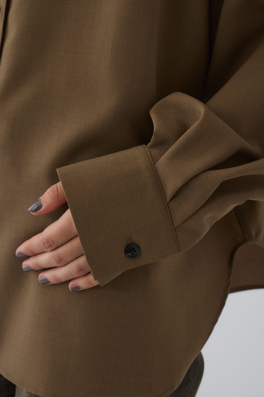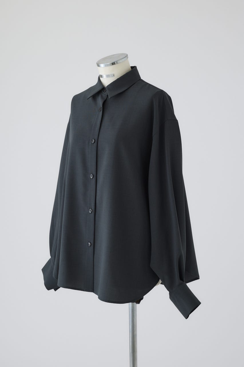 ■POINT:シンプルなシャツに見えて、カフス釦を外すと立体的なラウンドシルエットが現れる一癖ありのデザインブラウス。