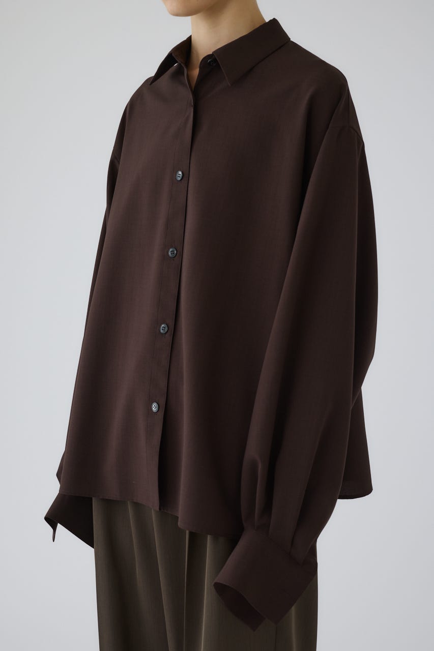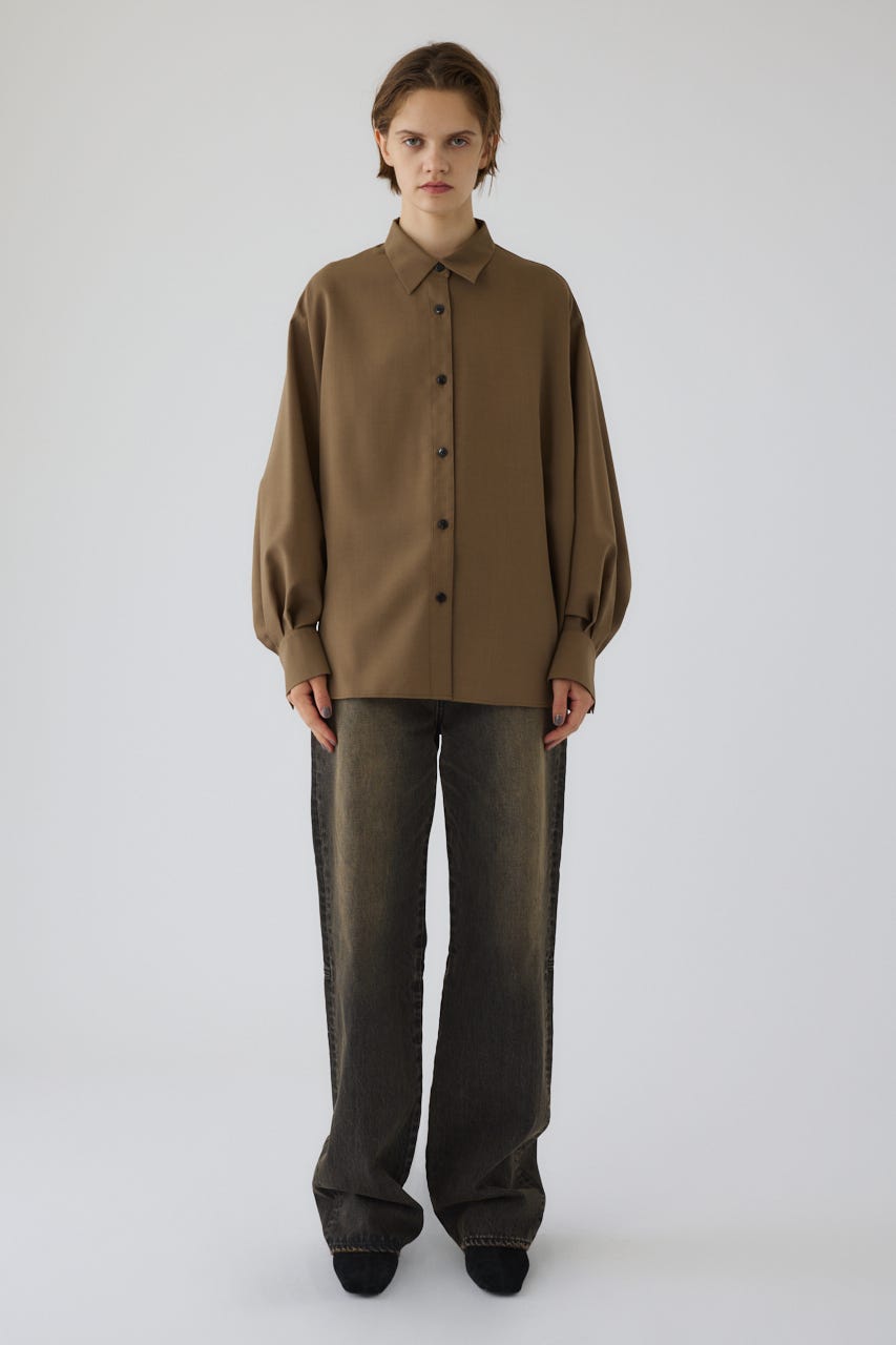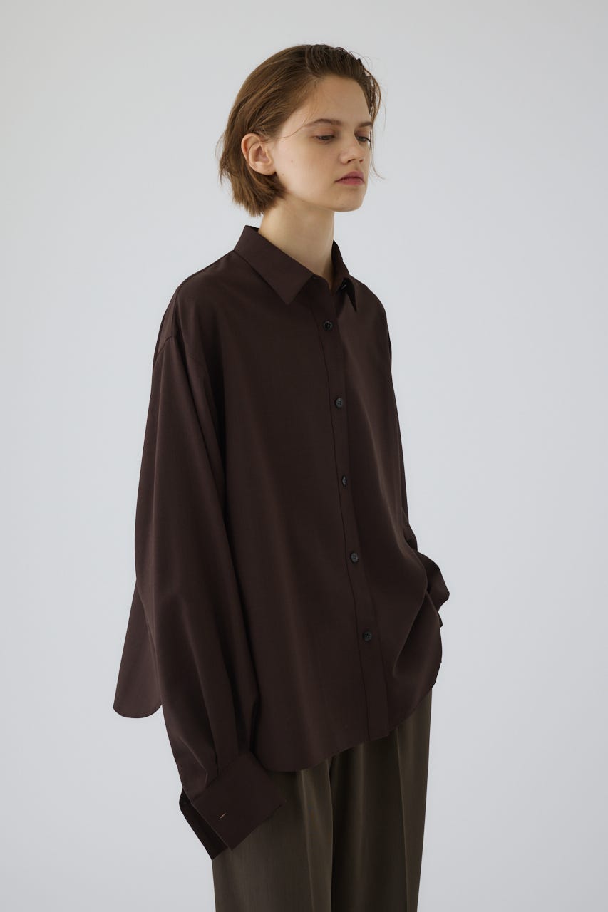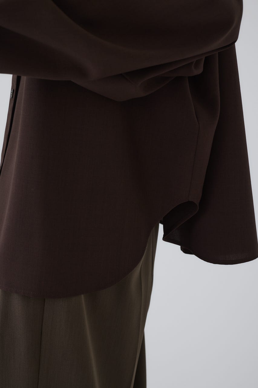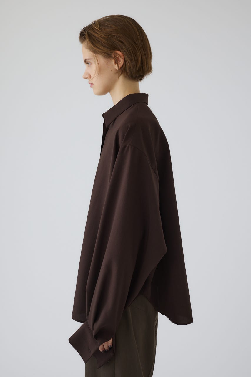 ■POINT:シンプルなシャツに見えて、カフス釦を外すと立体的なラウンドシルエットが現れる一癖ありのデザインブラウス。