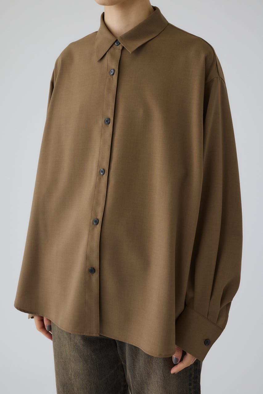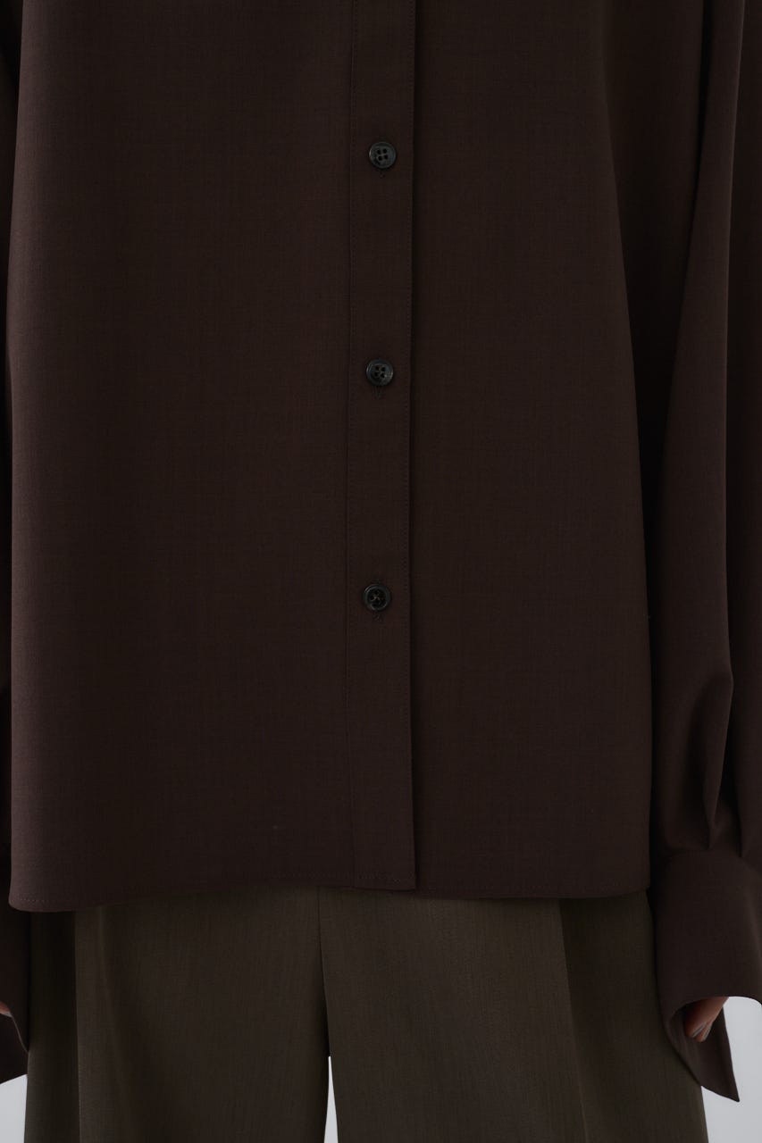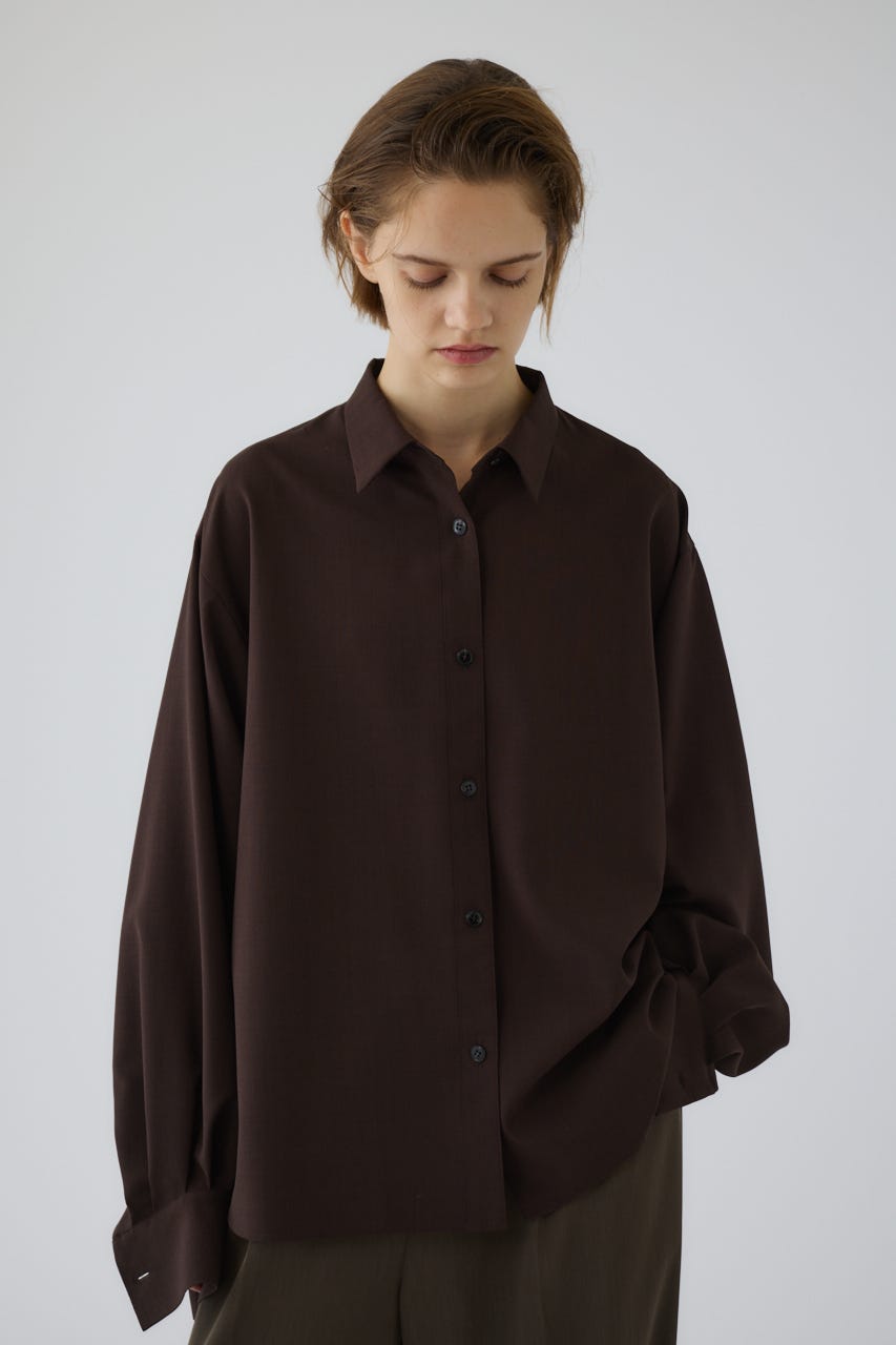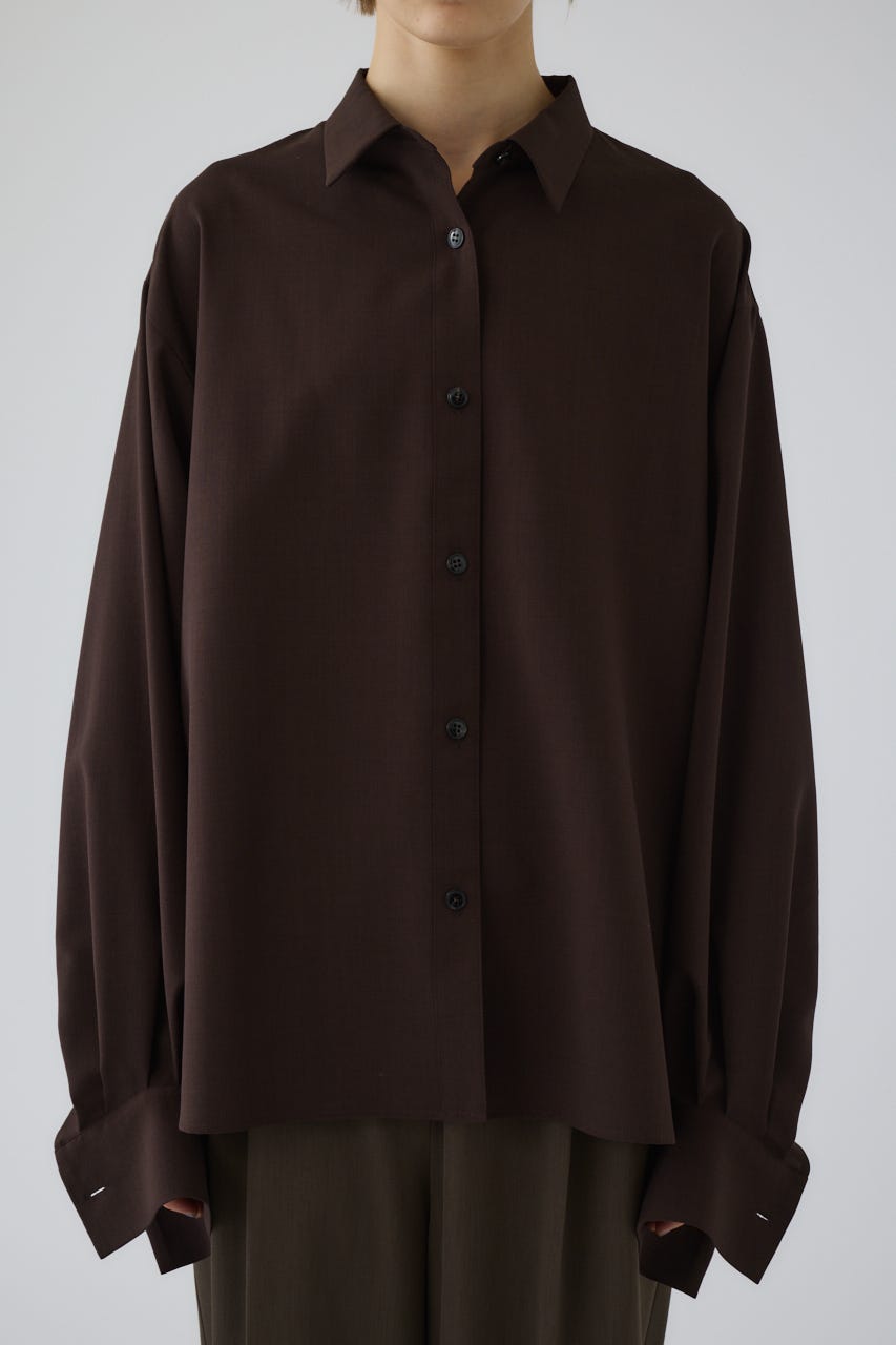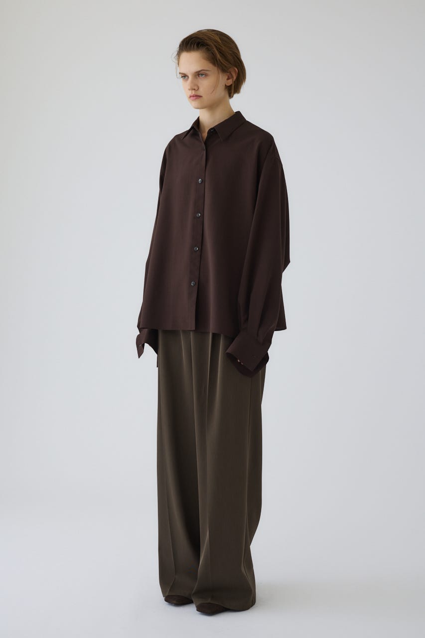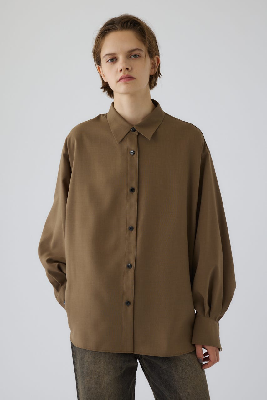 ■POINT:シンプルなシャツに見えて、カフス釦を外すと立体的なラウンドシルエットが現れる一癖ありのデザインブラウス。