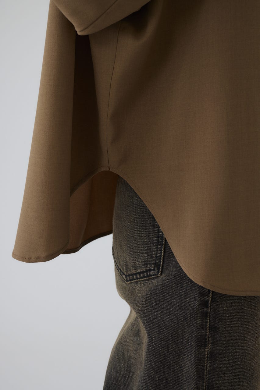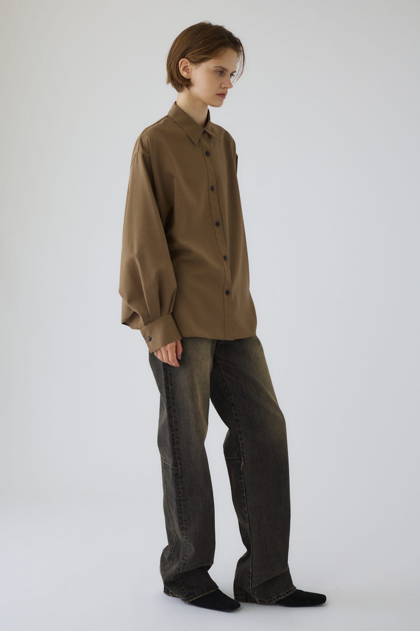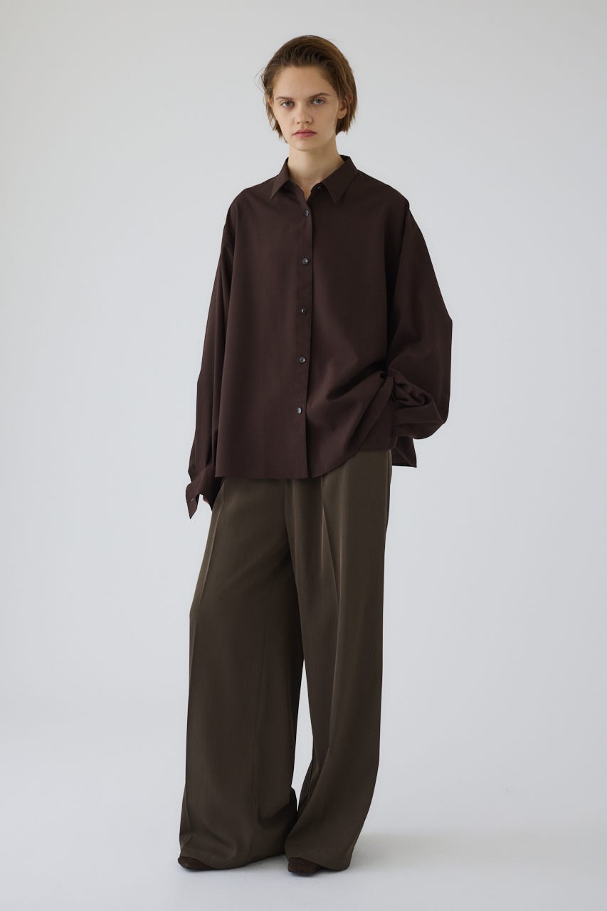 ■DETAIL:加工によってとろみのある柔らかさを出した梳毛調合繊生地を使用。