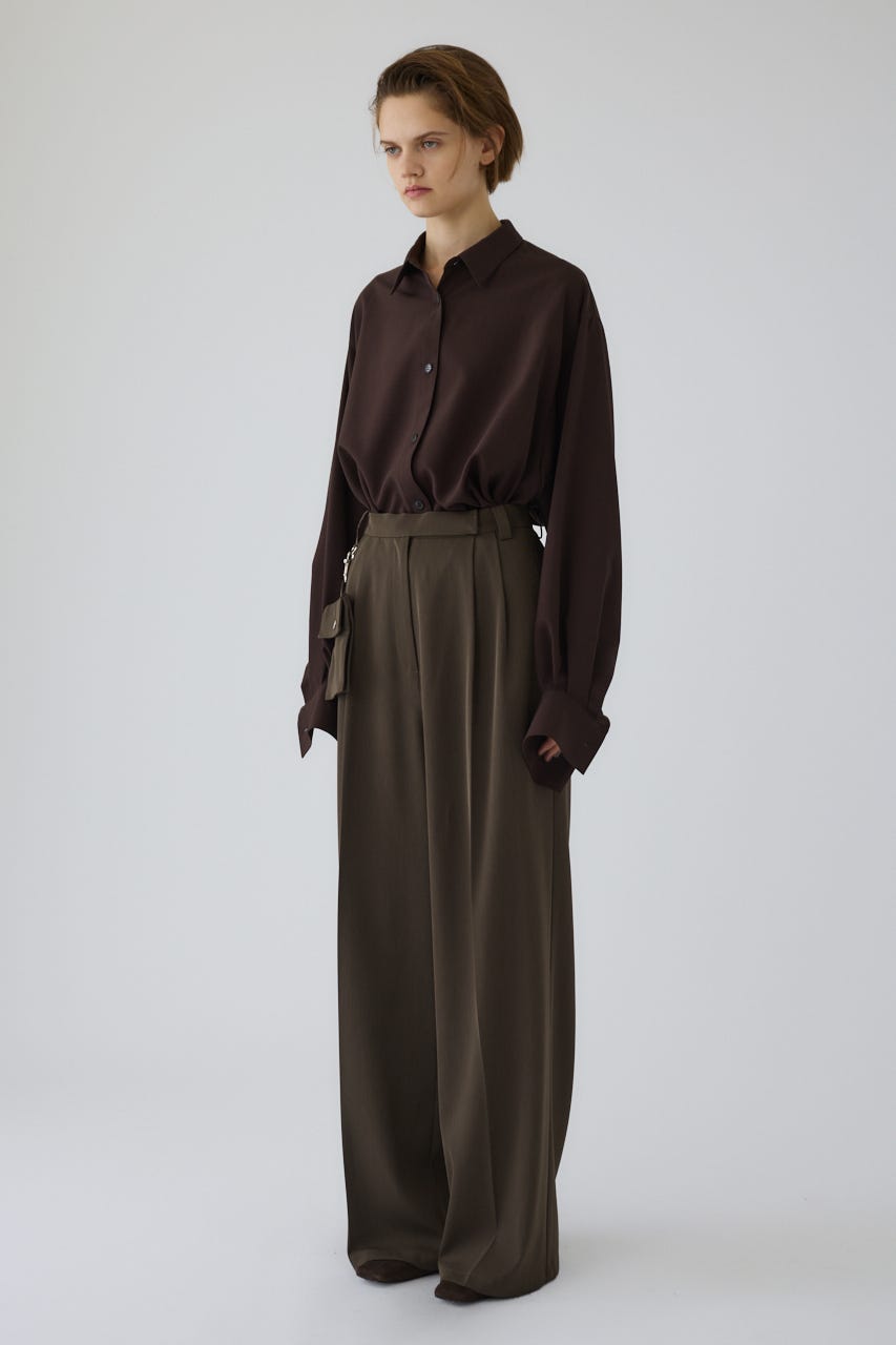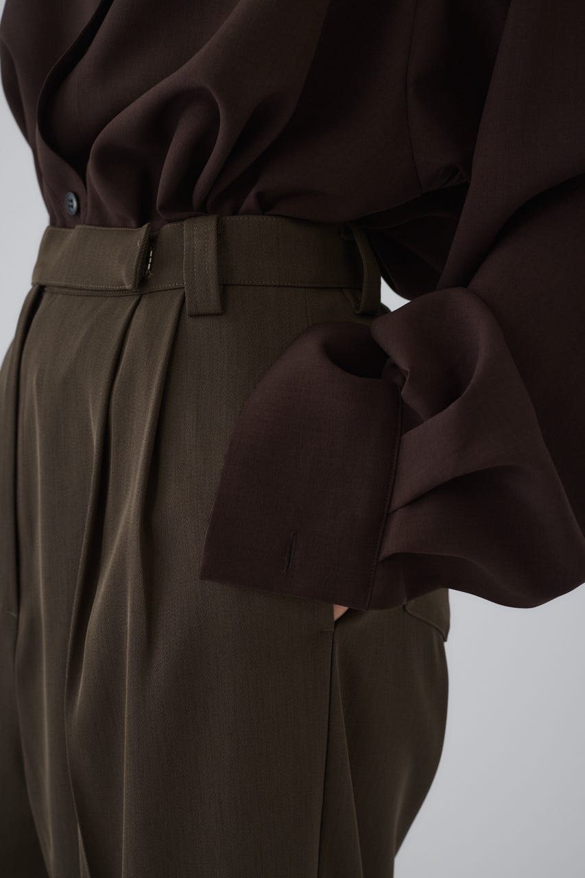 ■POINT:深みのあるカラー展開でマニッシュな表情の強撚糸ツイル生地を使用したワイドパンツ。