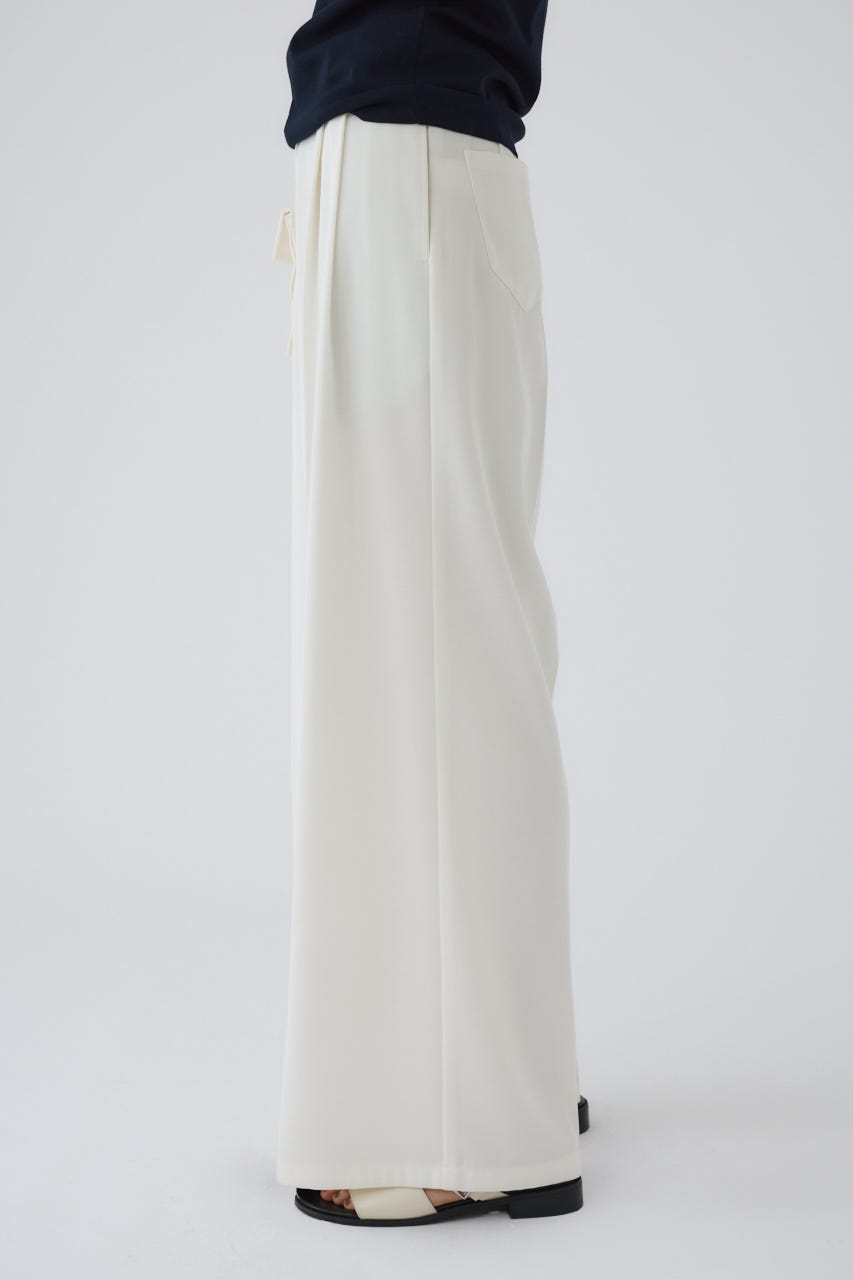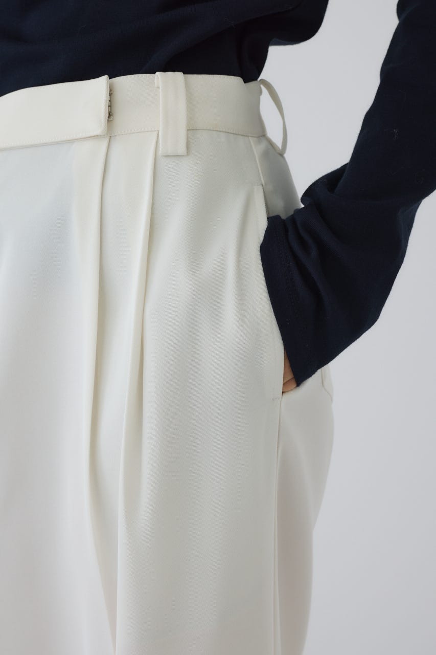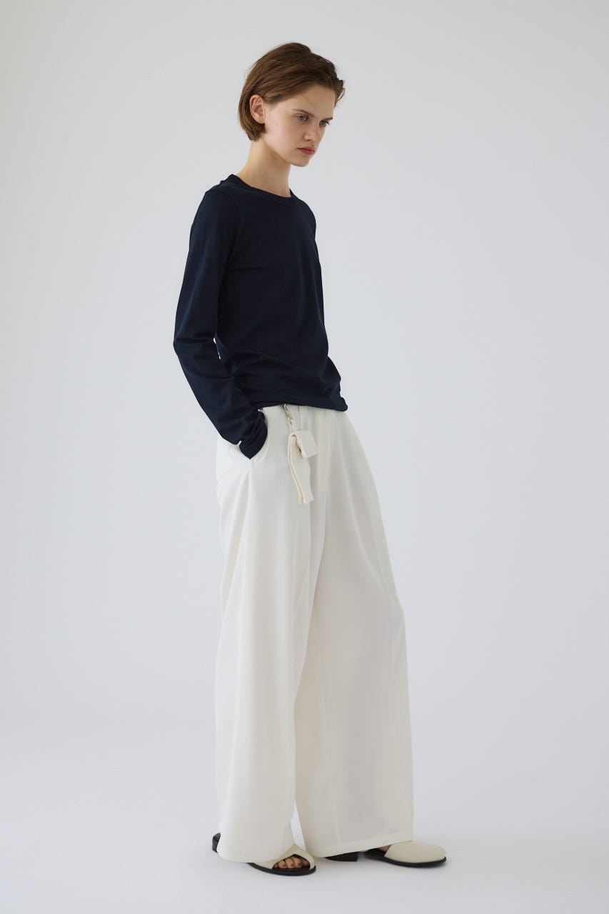 美しい落ち感のワイドシルエットで脚のラインをきれいに見せる効果も。