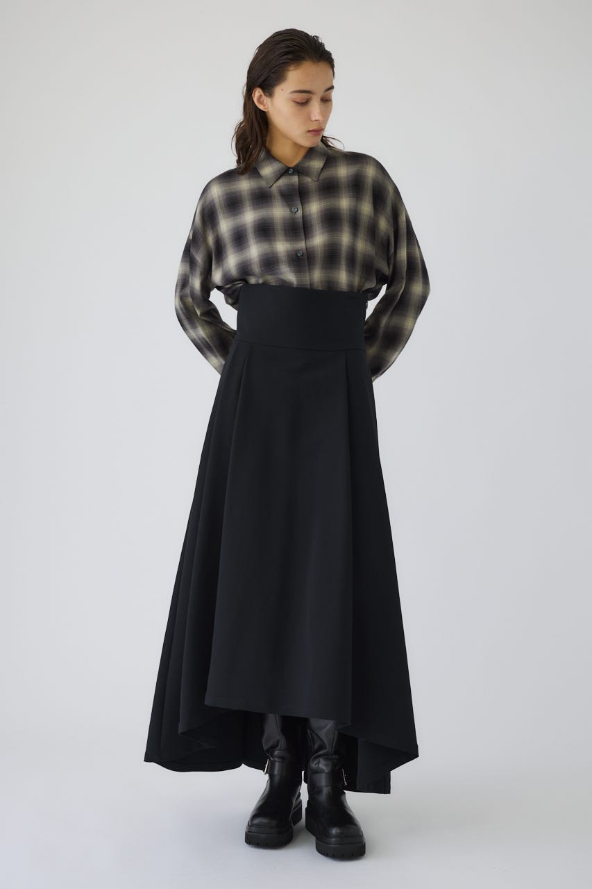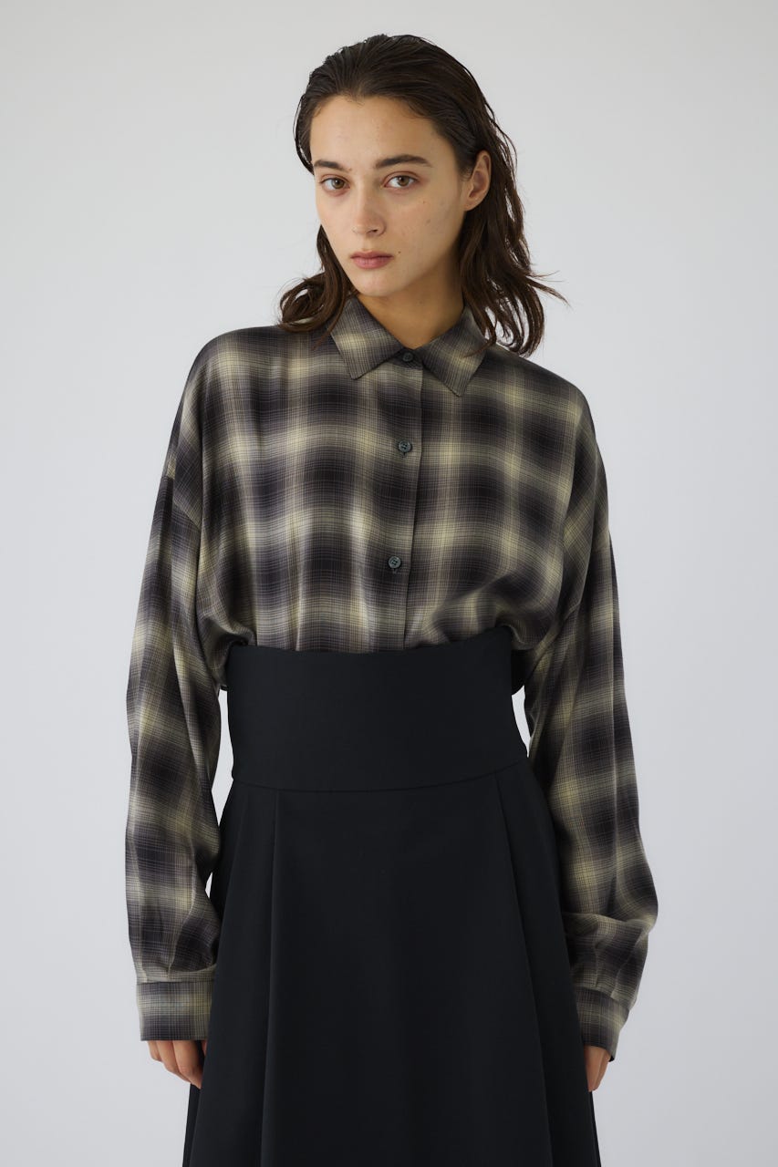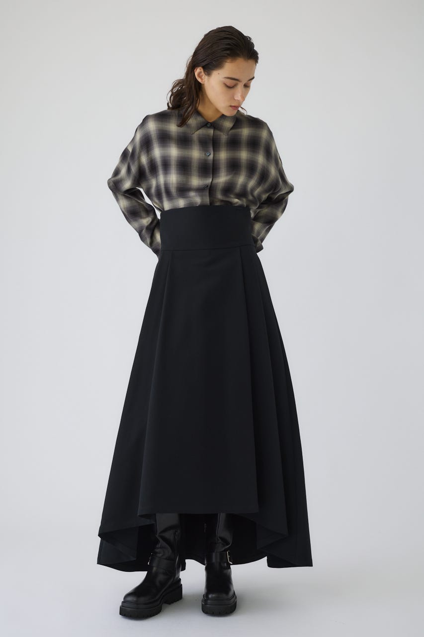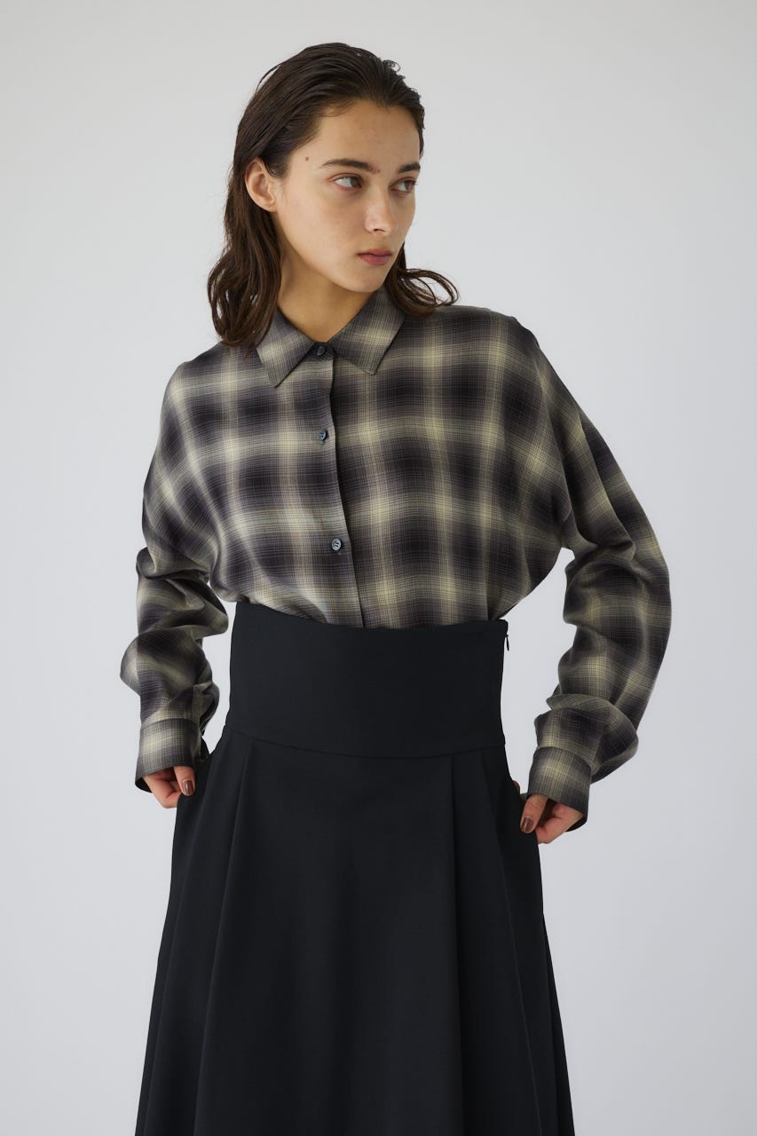 ■STYLING:メンズライクなシャツをあえてボリュームのあるスカートと合わせてレディに着こなすのが特におすすめです。