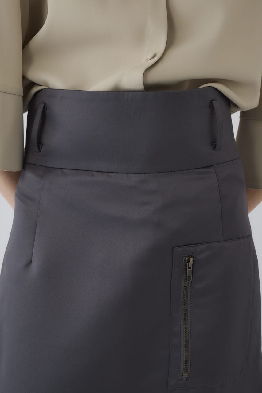 ■POINT:光沢を抑えたマットな見た目のサテン生地のスカート。