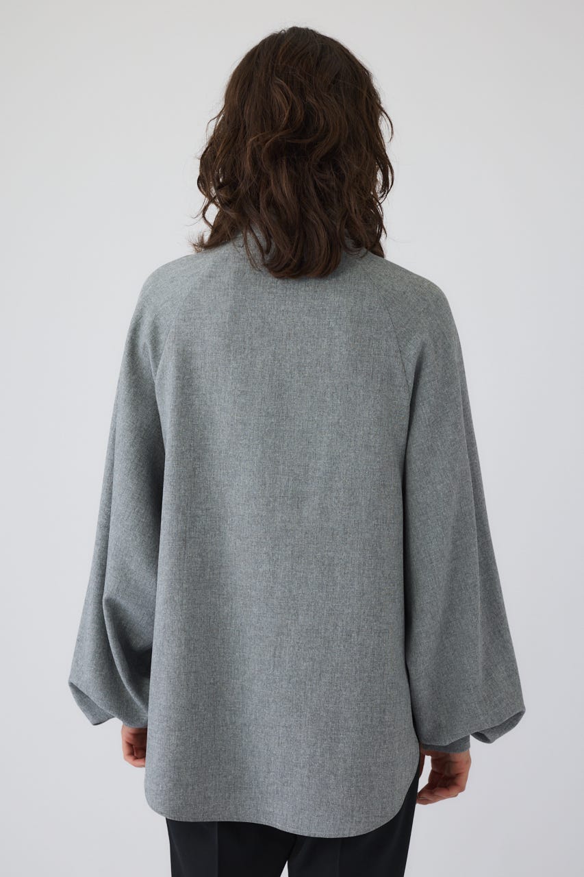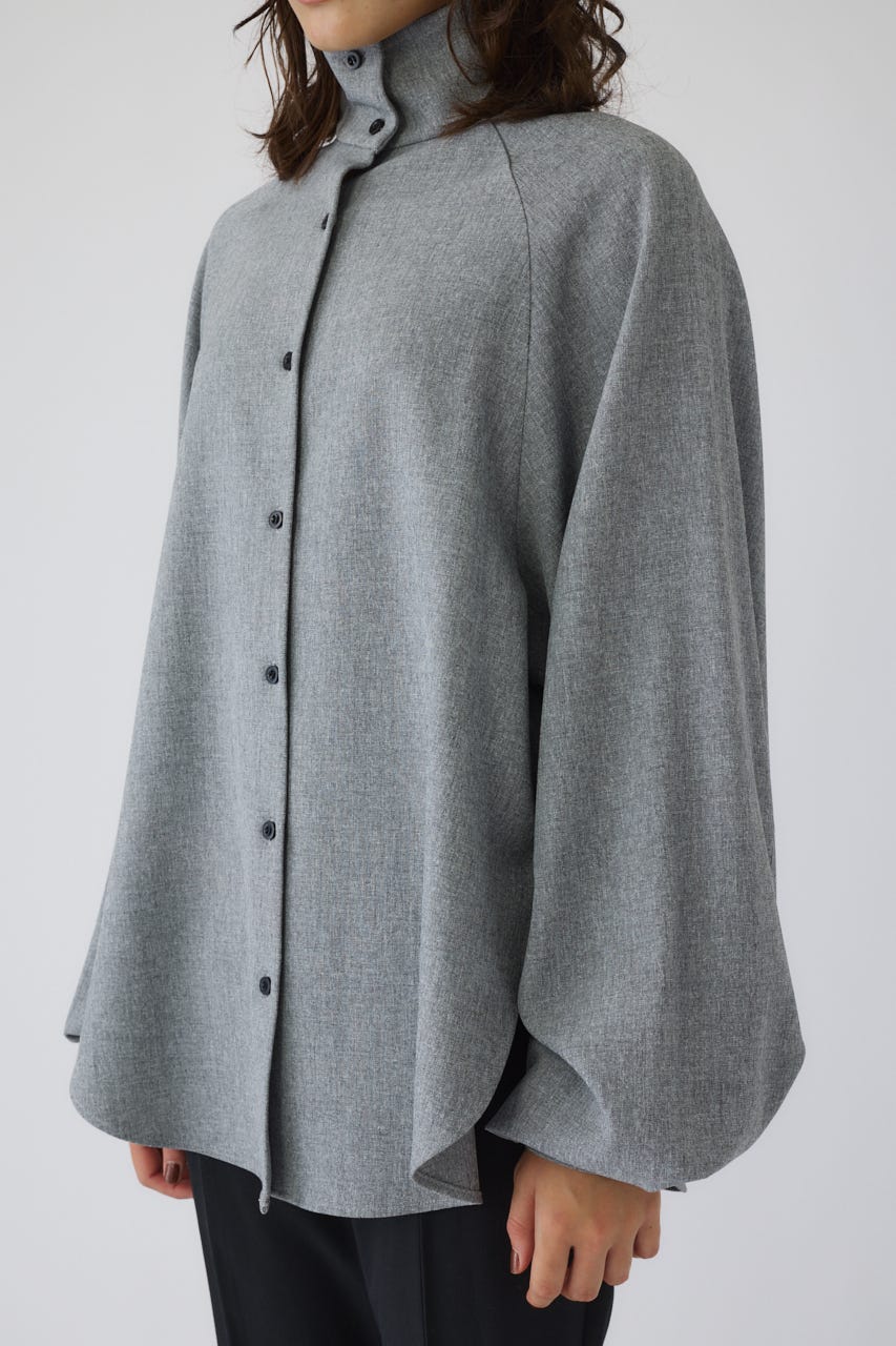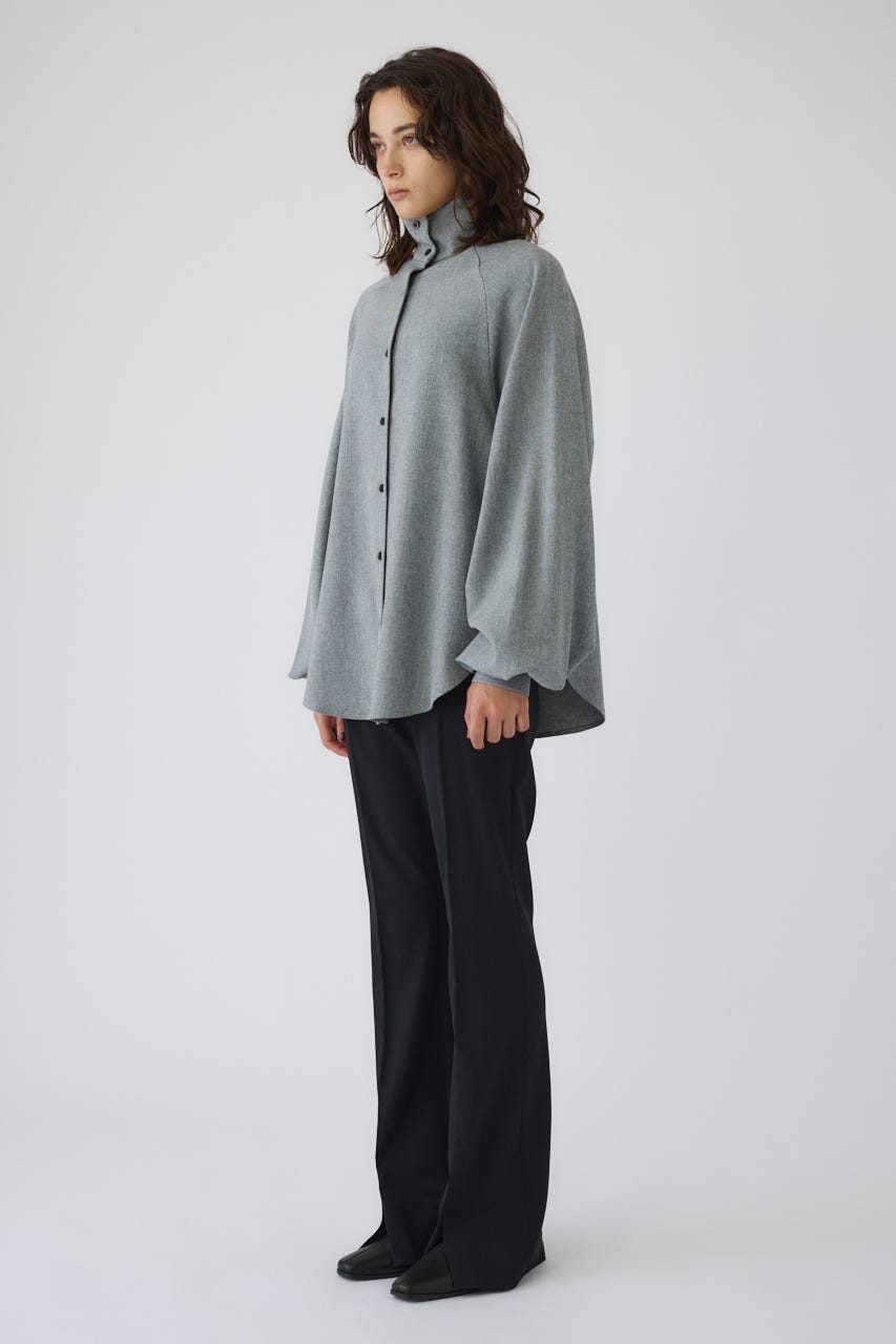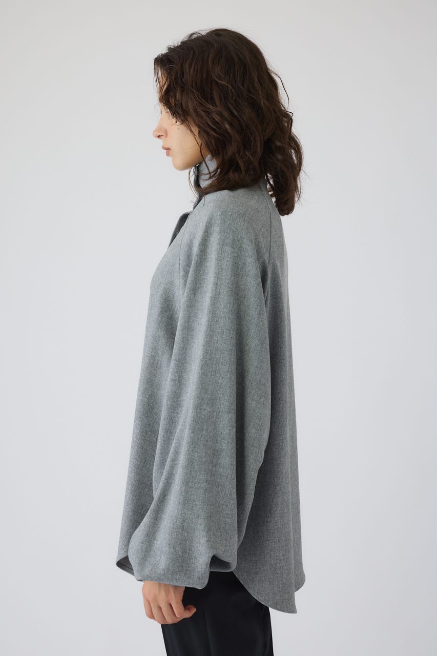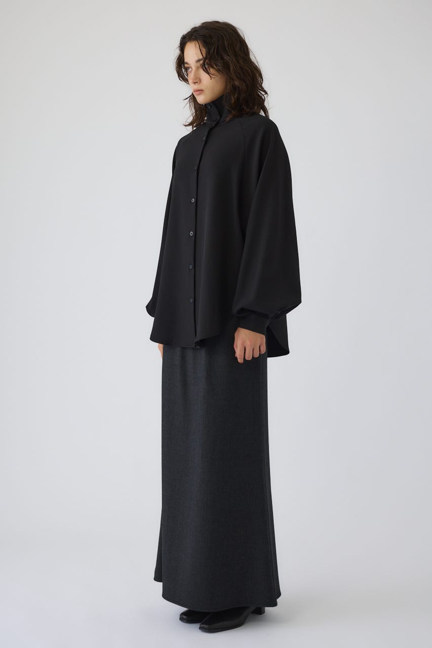 オーバーサイズながらもネックの高さとボリュームスリーブがエレガントな印象をプラス。