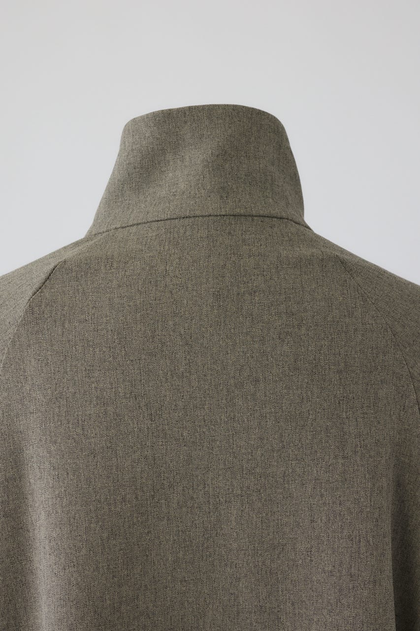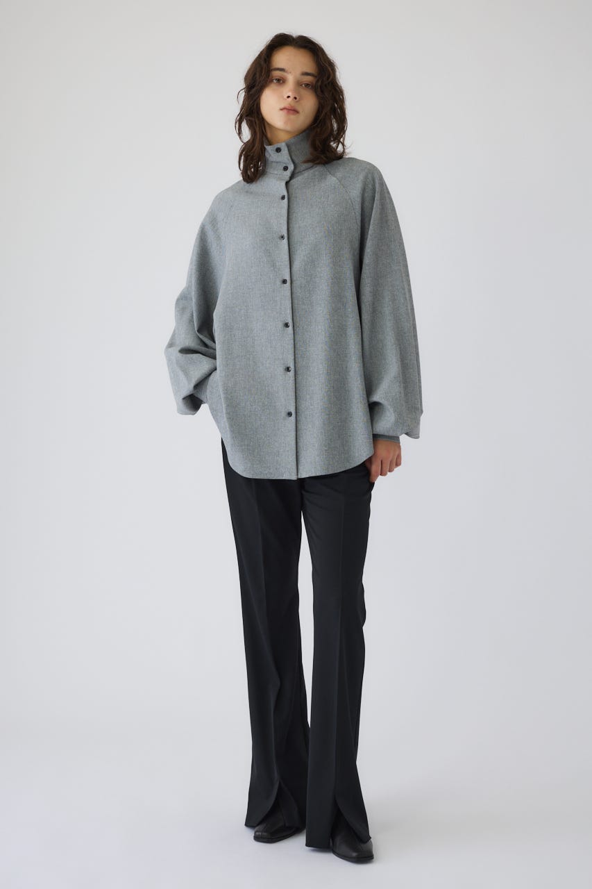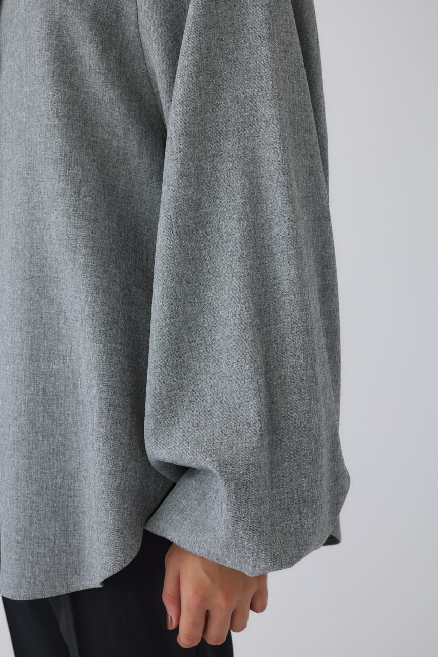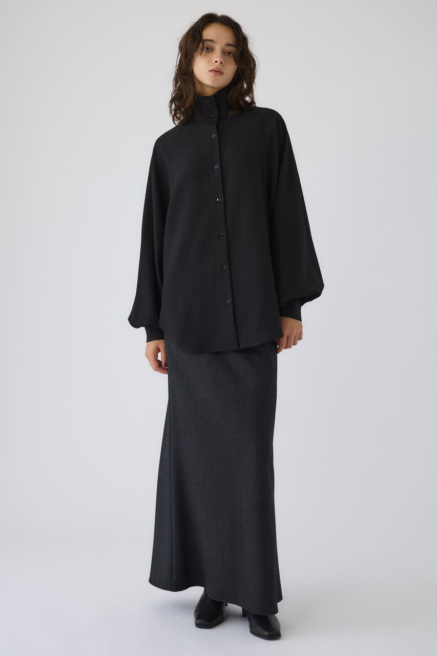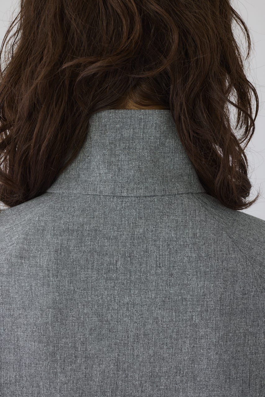 オーバーサイズながらもネックの高さとボリュームスリーブがエレガントな印象をプラス。
