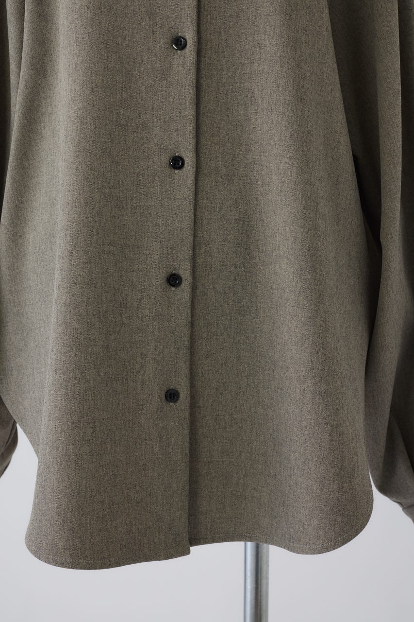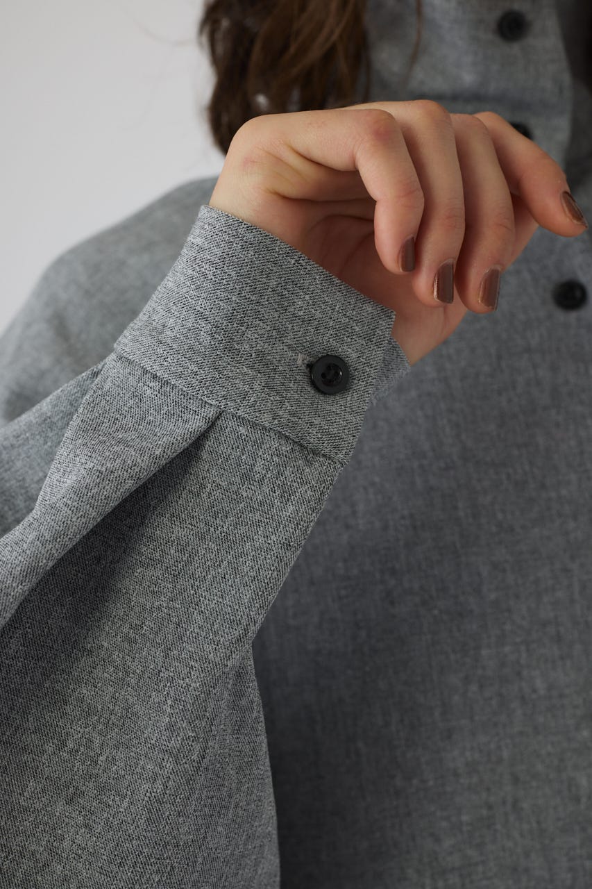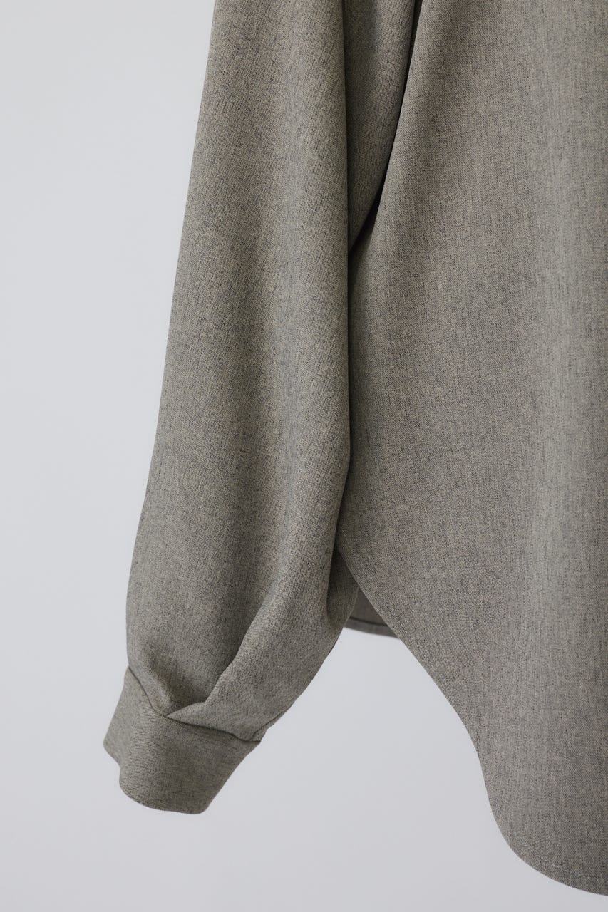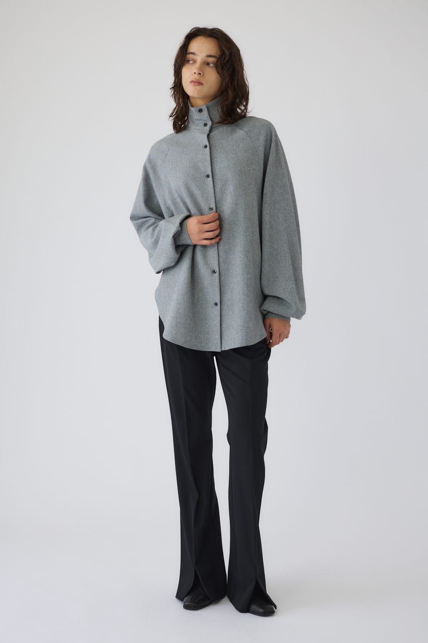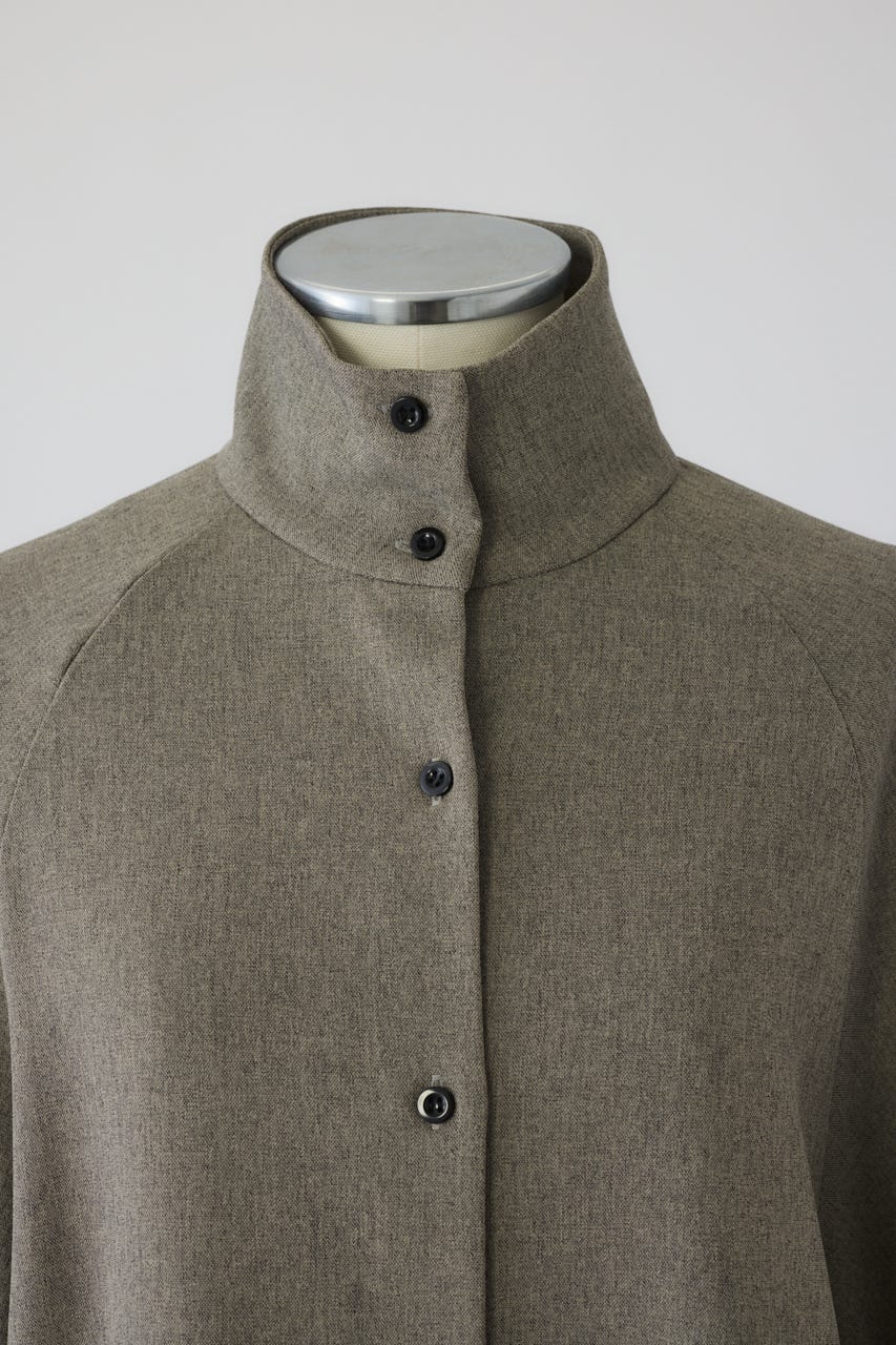オーバーサイズながらもネックの高さとボリュームスリーブがエレガントな印象をプラス。