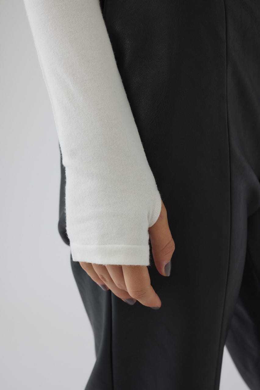 ■DETAIL:シンプルながらもサムホール付きの程よいフィット感がボディラインを美しく引き立て、さりげない色気を演出します。