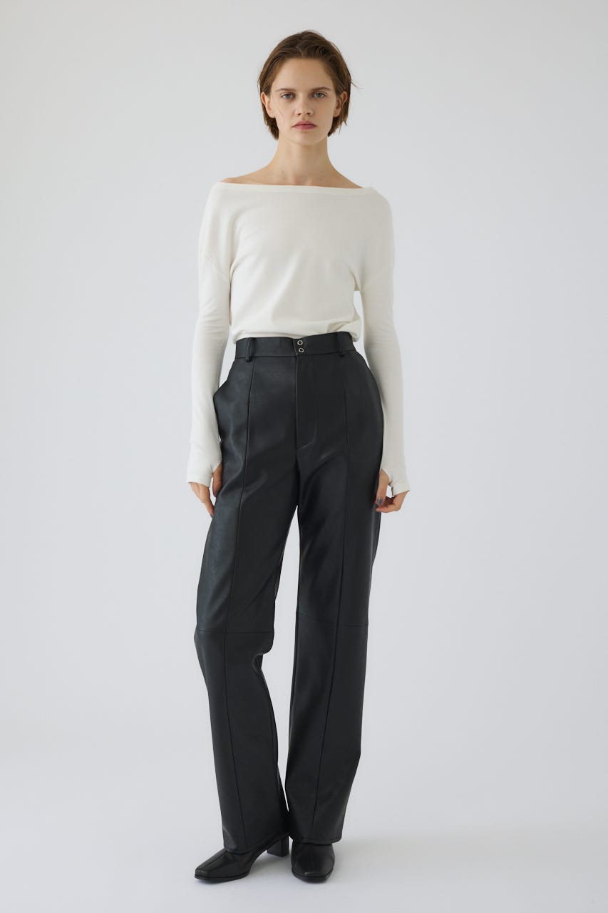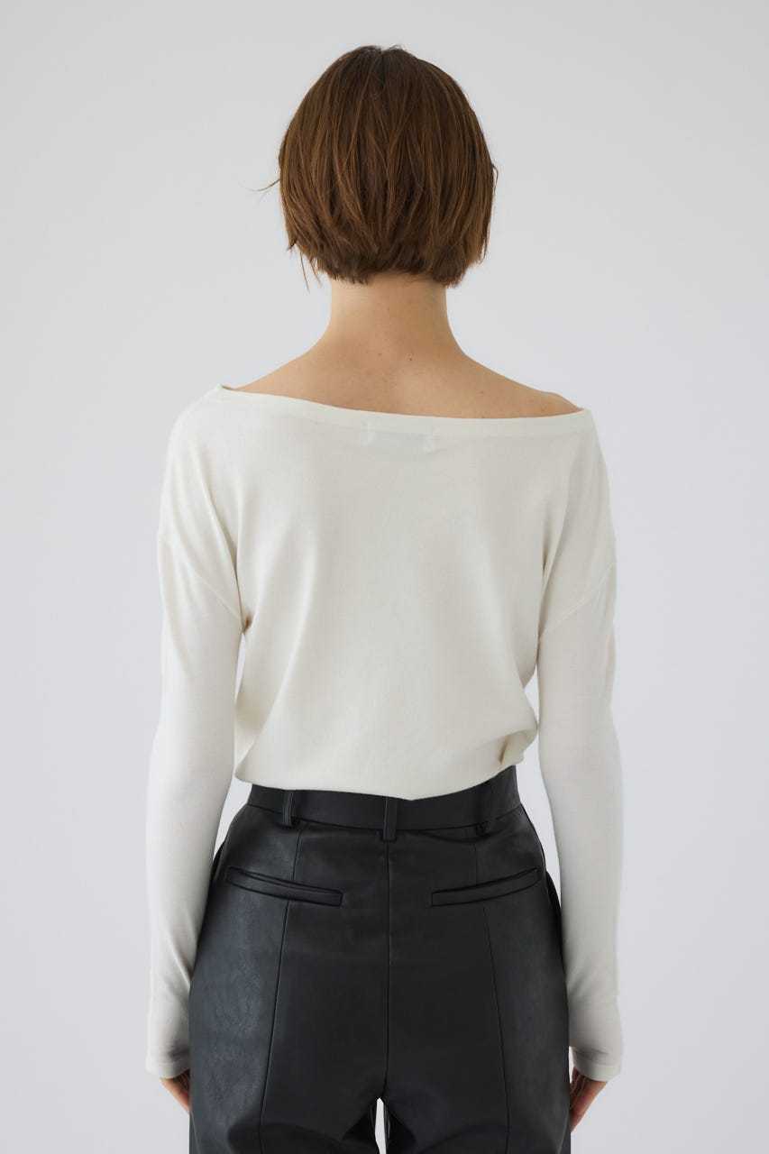 ■STYLING:肩を出したアシンメトリーなオフショルダーの着こなしもおすすめです。