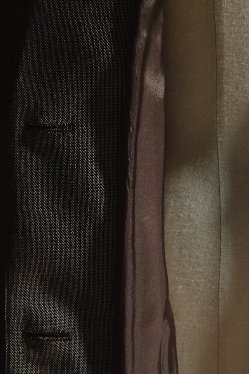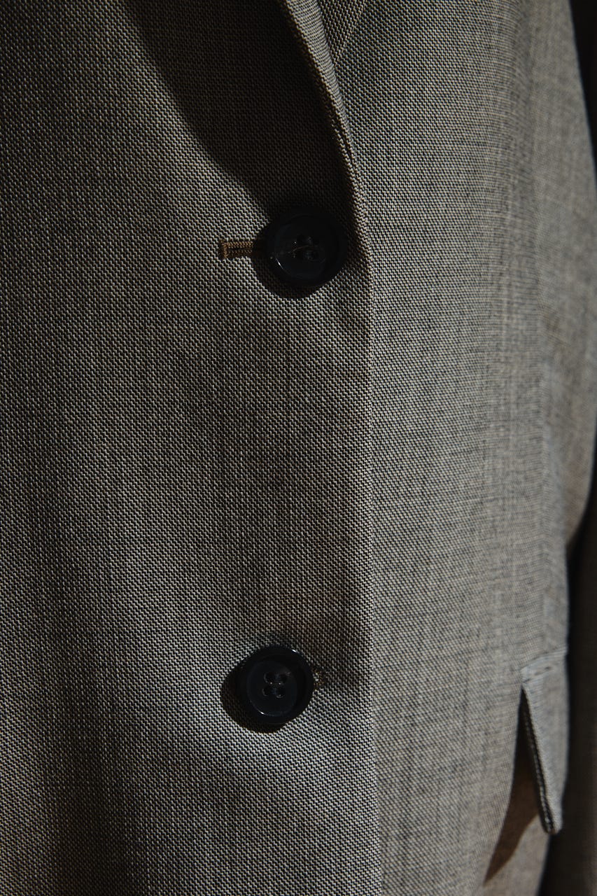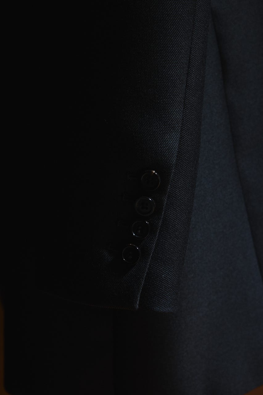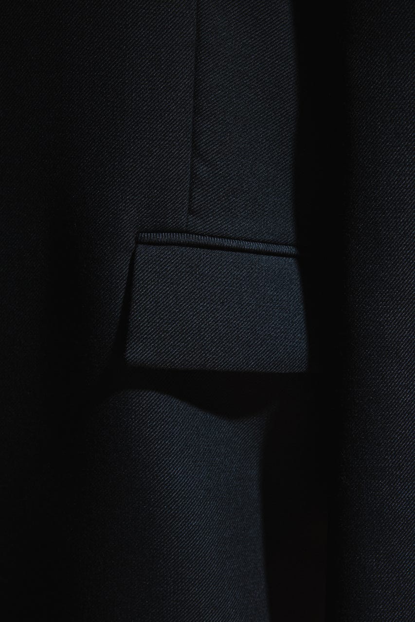 梳毛のクリアな見た目とクラシックなシャークスキンのコンビネーションに加工で弾力のある反発感を加えたハイクオリティな生地は、高度な技術力を持つ日本屈指の機屋が研究を重ねて作り上げたもの。