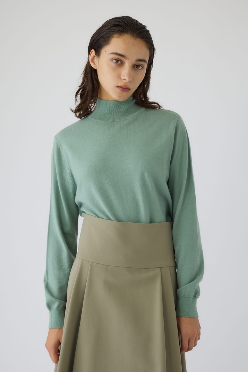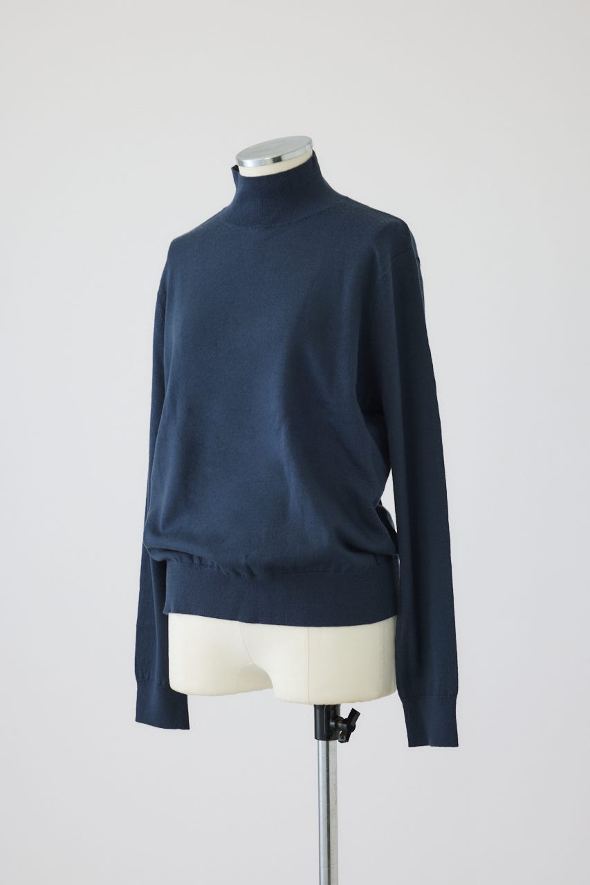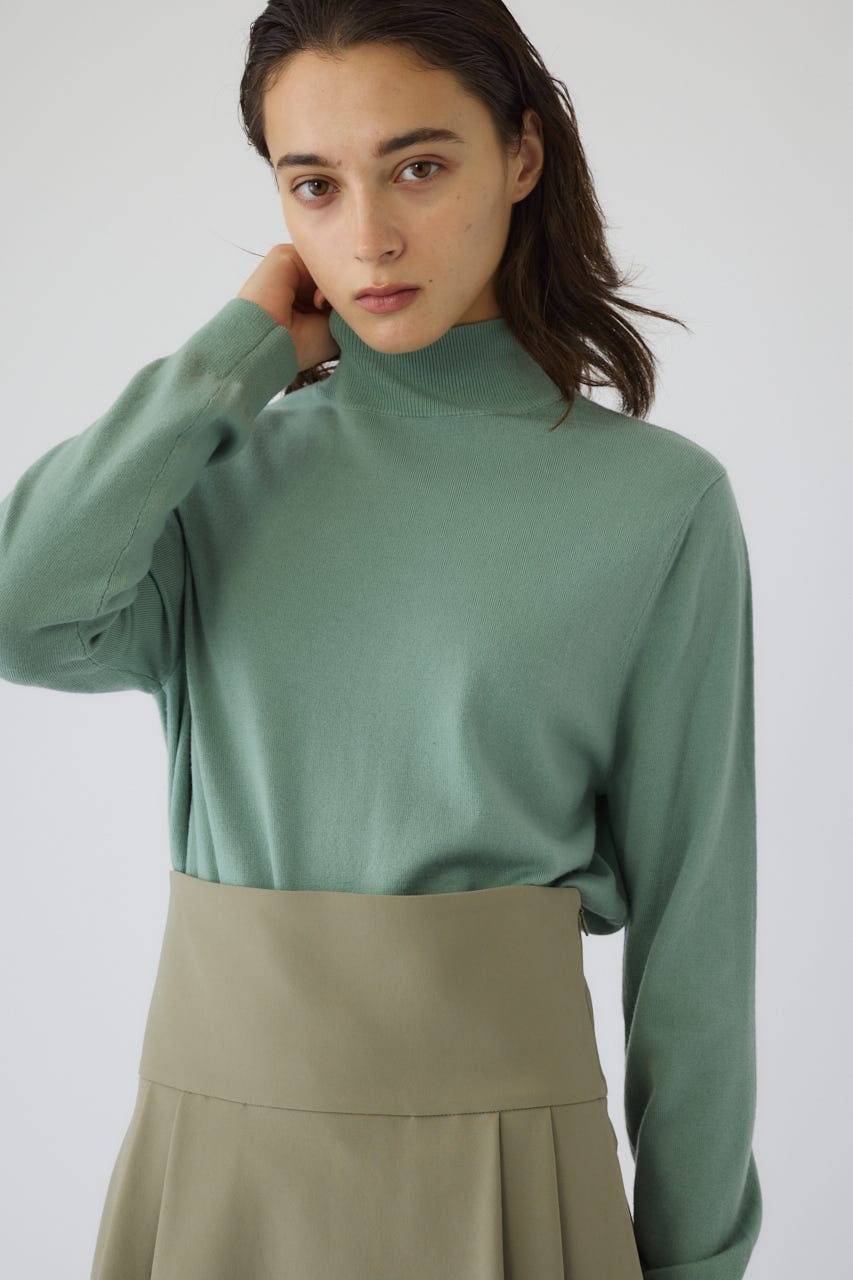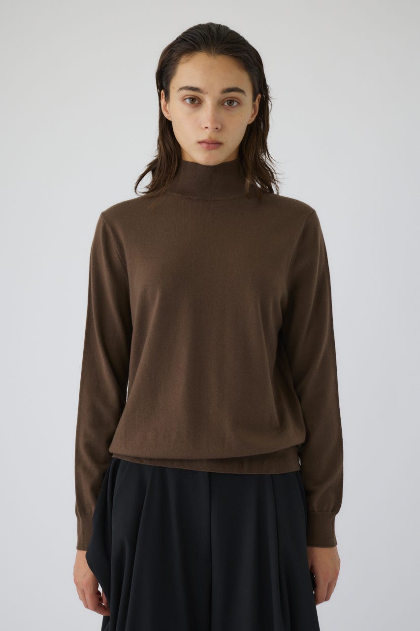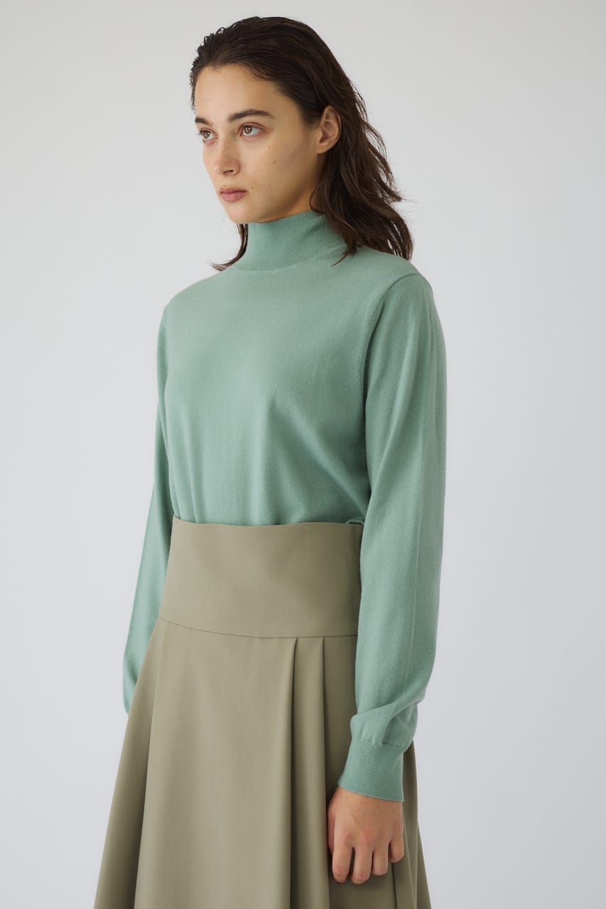 ミニマルなデザインだからこそ、上質なウールの素材感が引き立つニットトップスです。