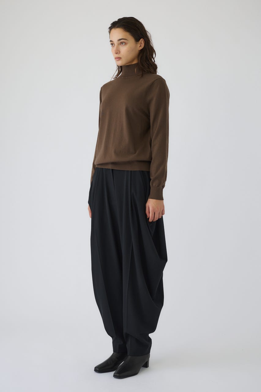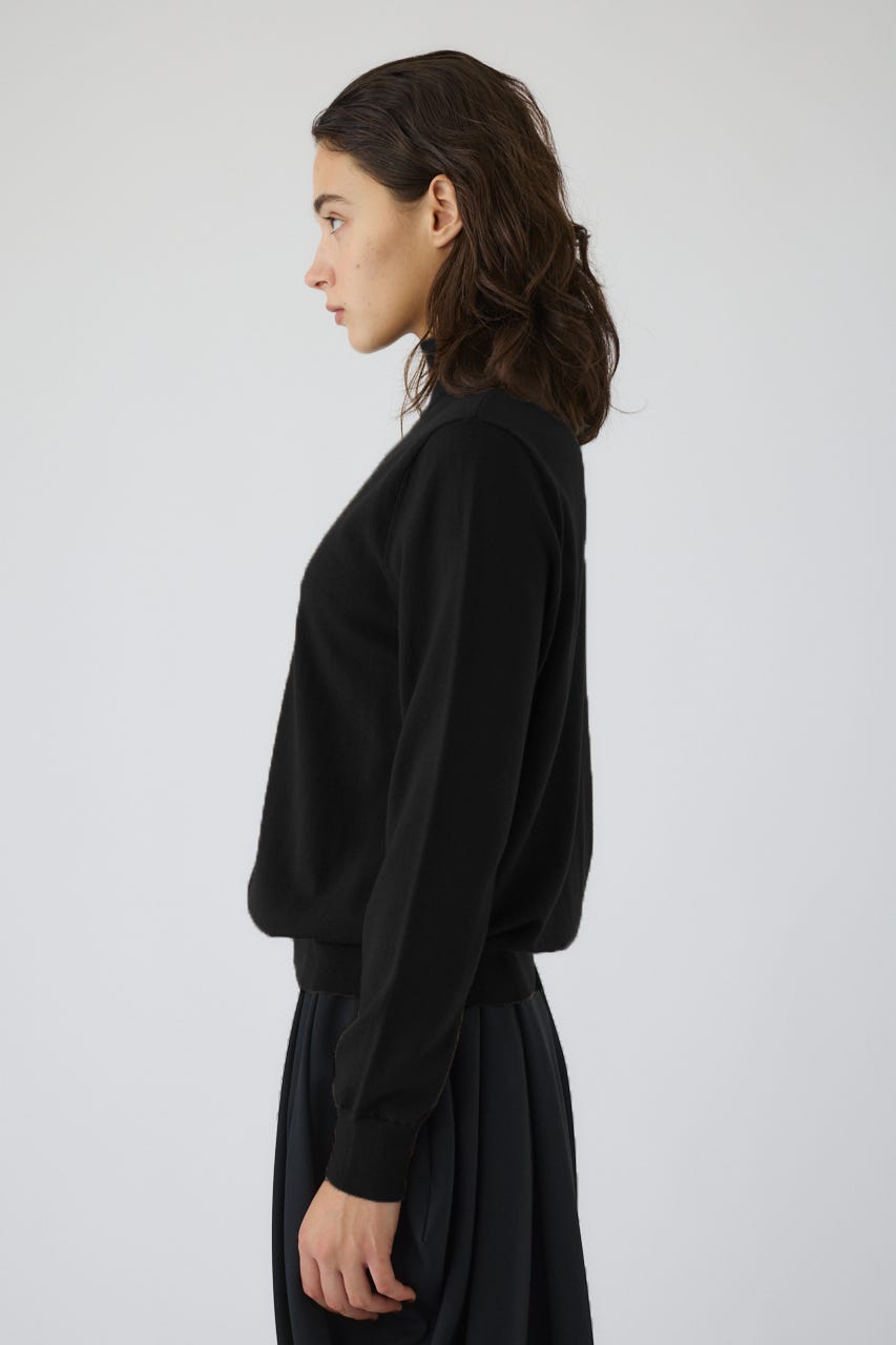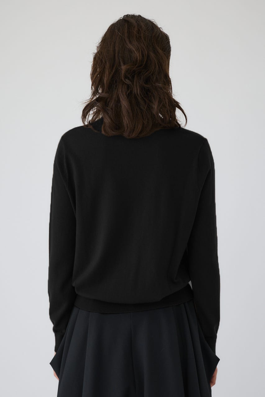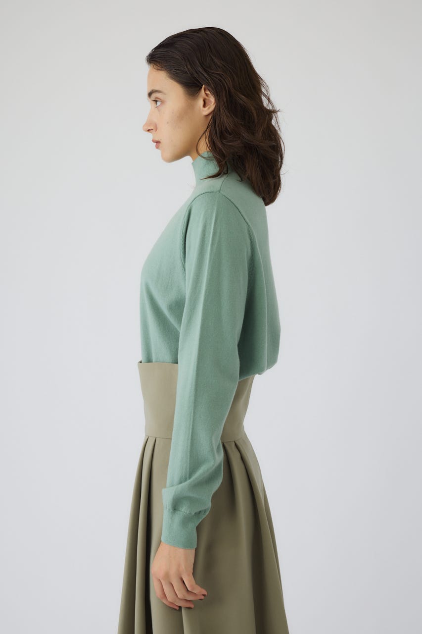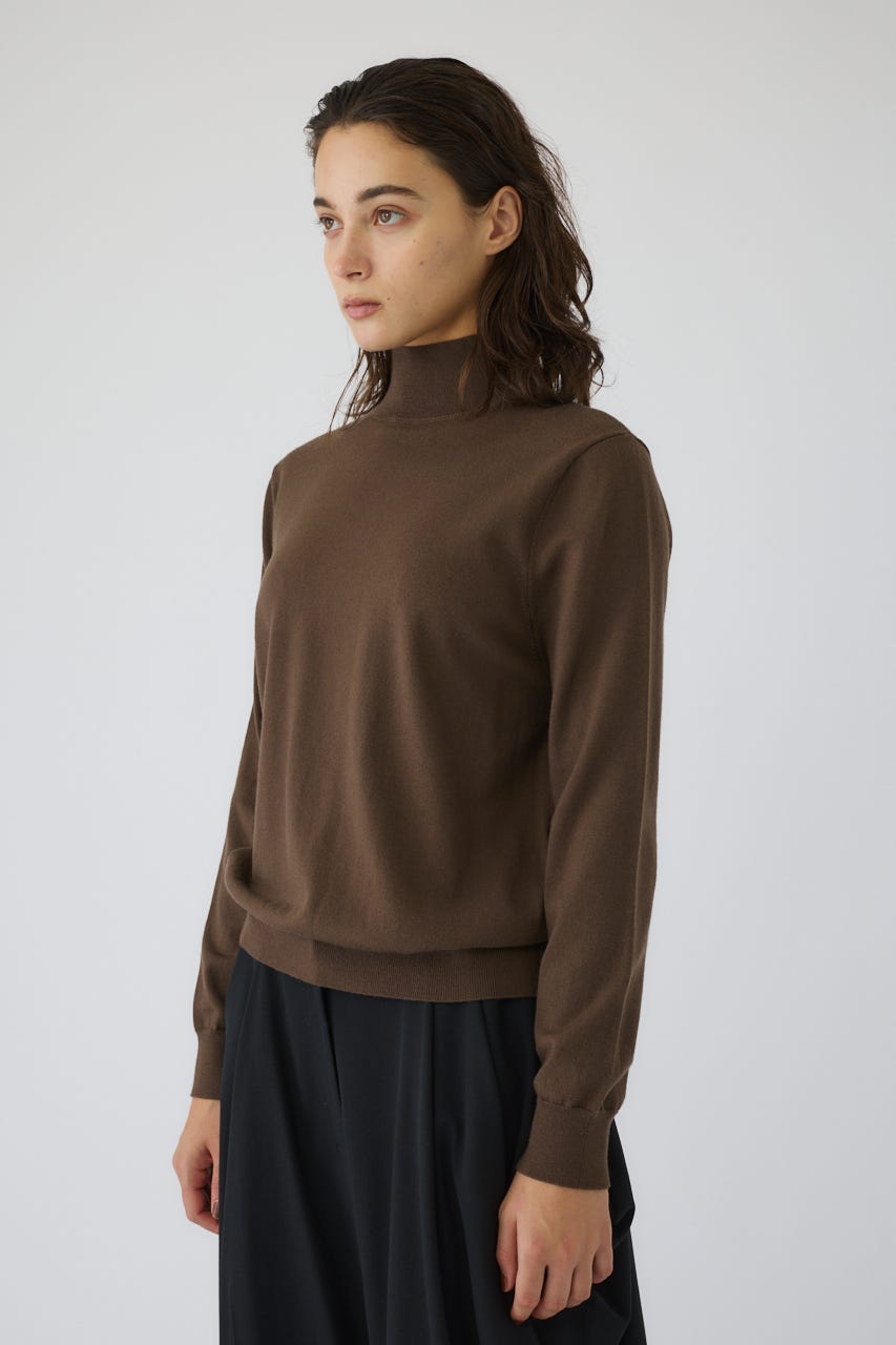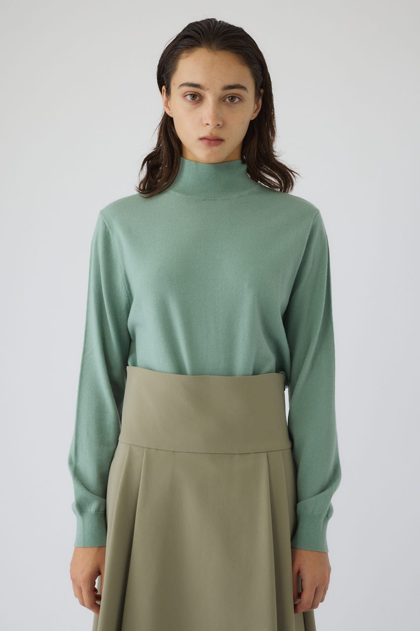 ミニマルなデザインだからこそ、上質なウールの素材感が引き立つニットトップスです。