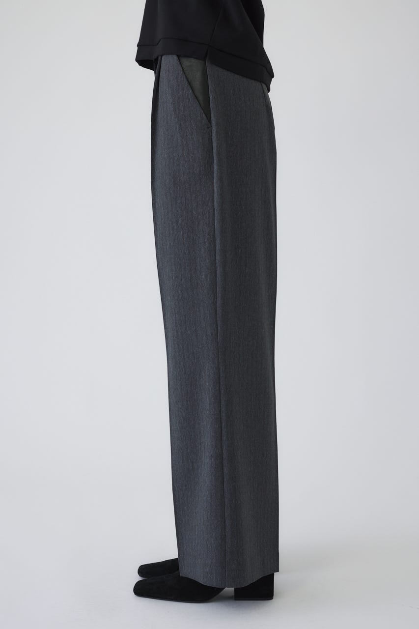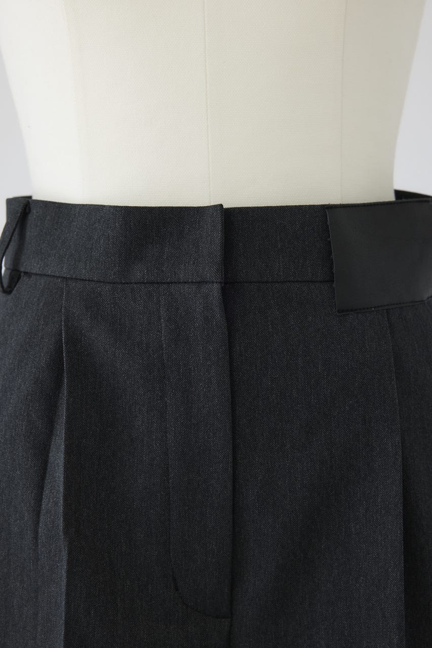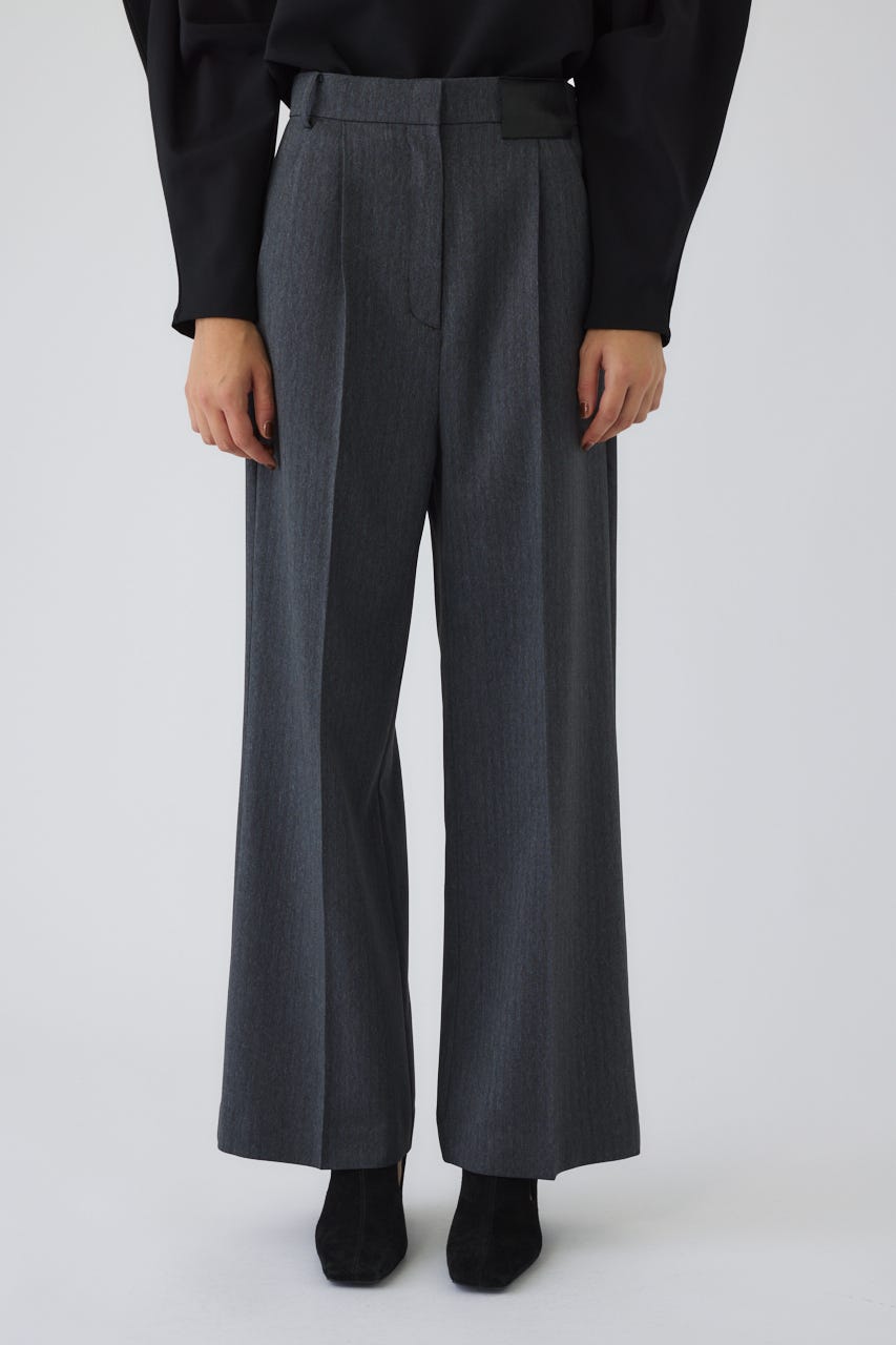 ■POINT:トラディショナルなヘリンボン柄にエッジの効いたフェイクレザーを組み合わせることで、モードな印象に昇華させたデザインが魅力。