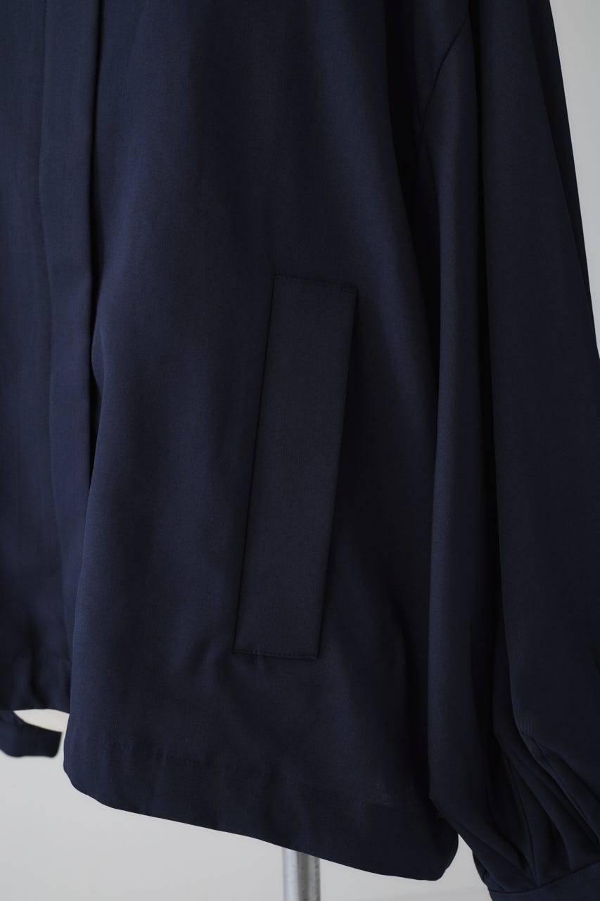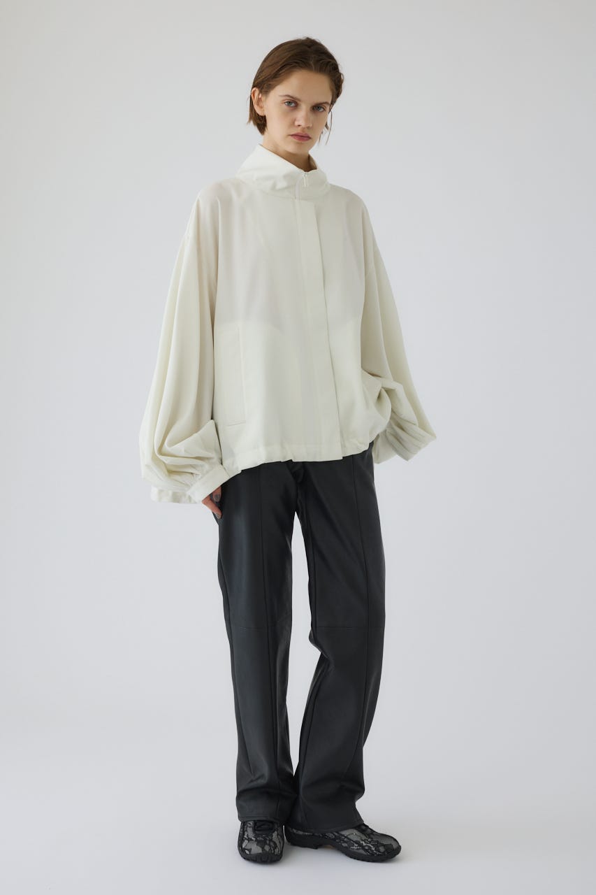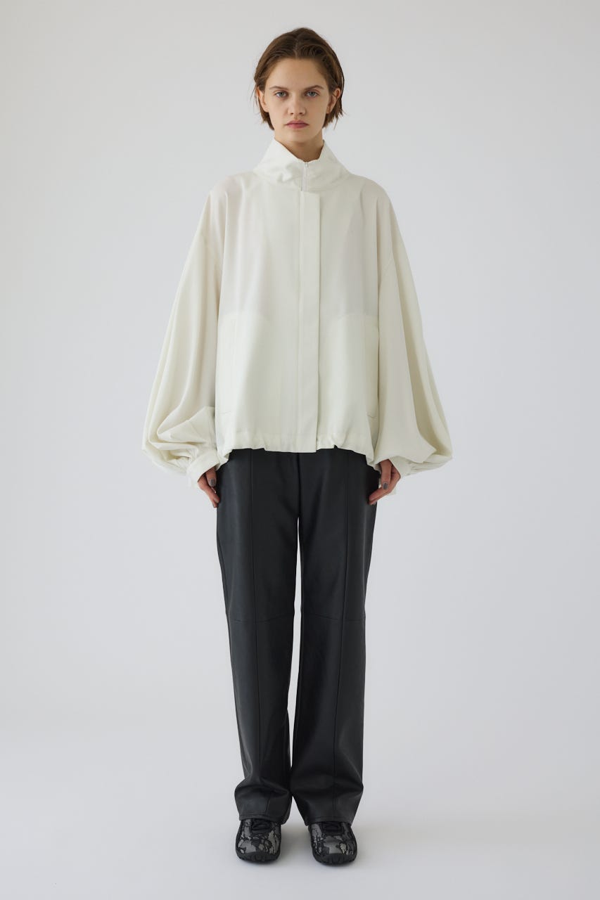 ■POINT:特殊な凹凸構造の糸でリネンのようなナチュラル感とシルクのようなきしみのある、美しいドレープを実現したツイル素材のブルゾン。