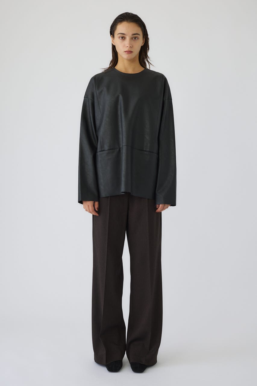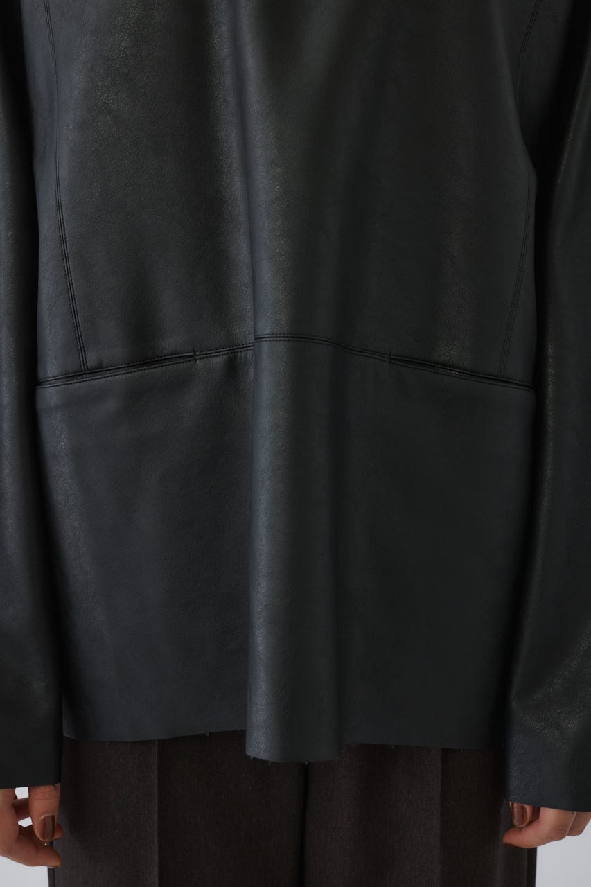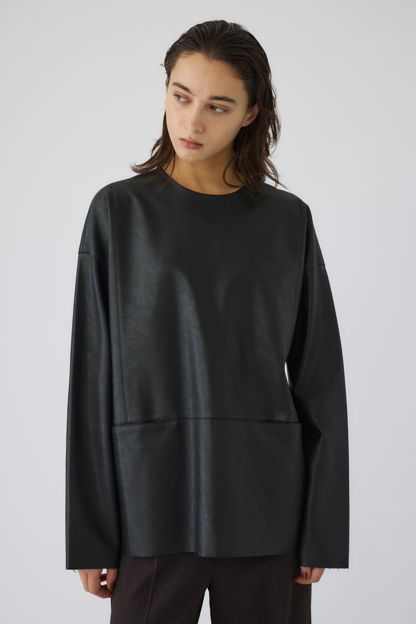 合成皮革の生地で製作したオーバーサイズなプルオーバー。