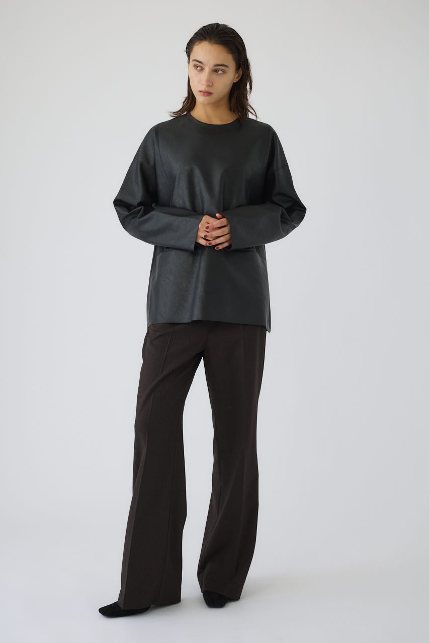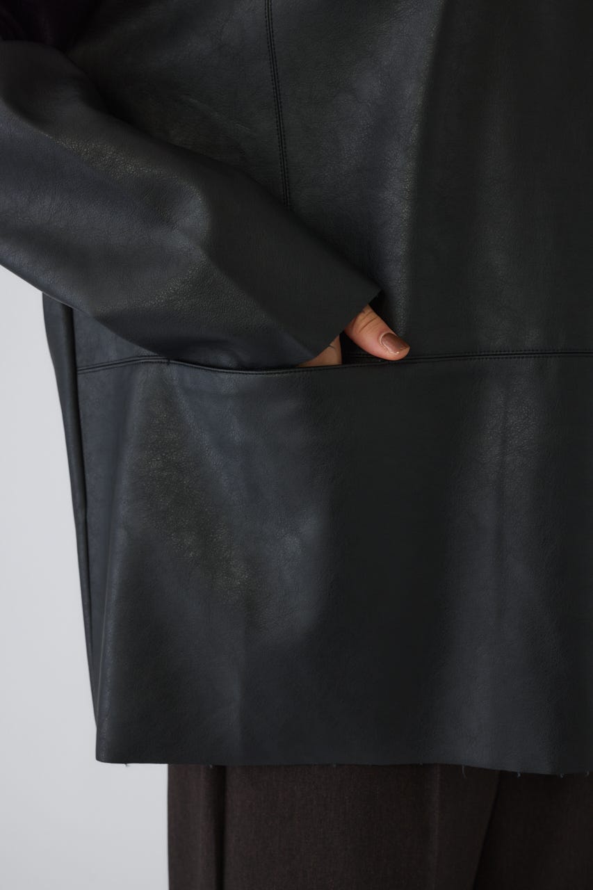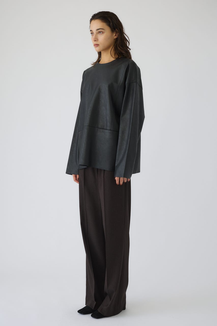 合成皮革の生地で製作したオーバーサイズなプルオーバー。