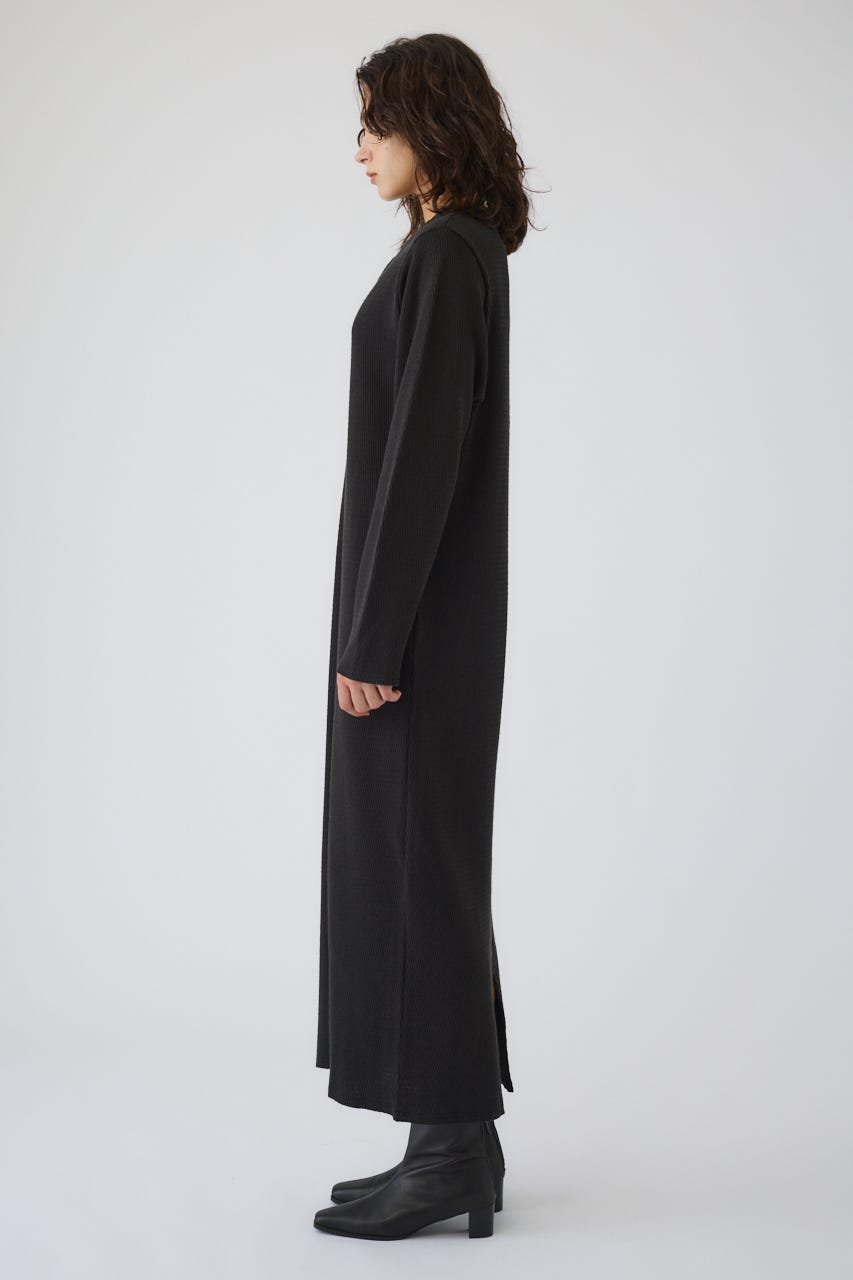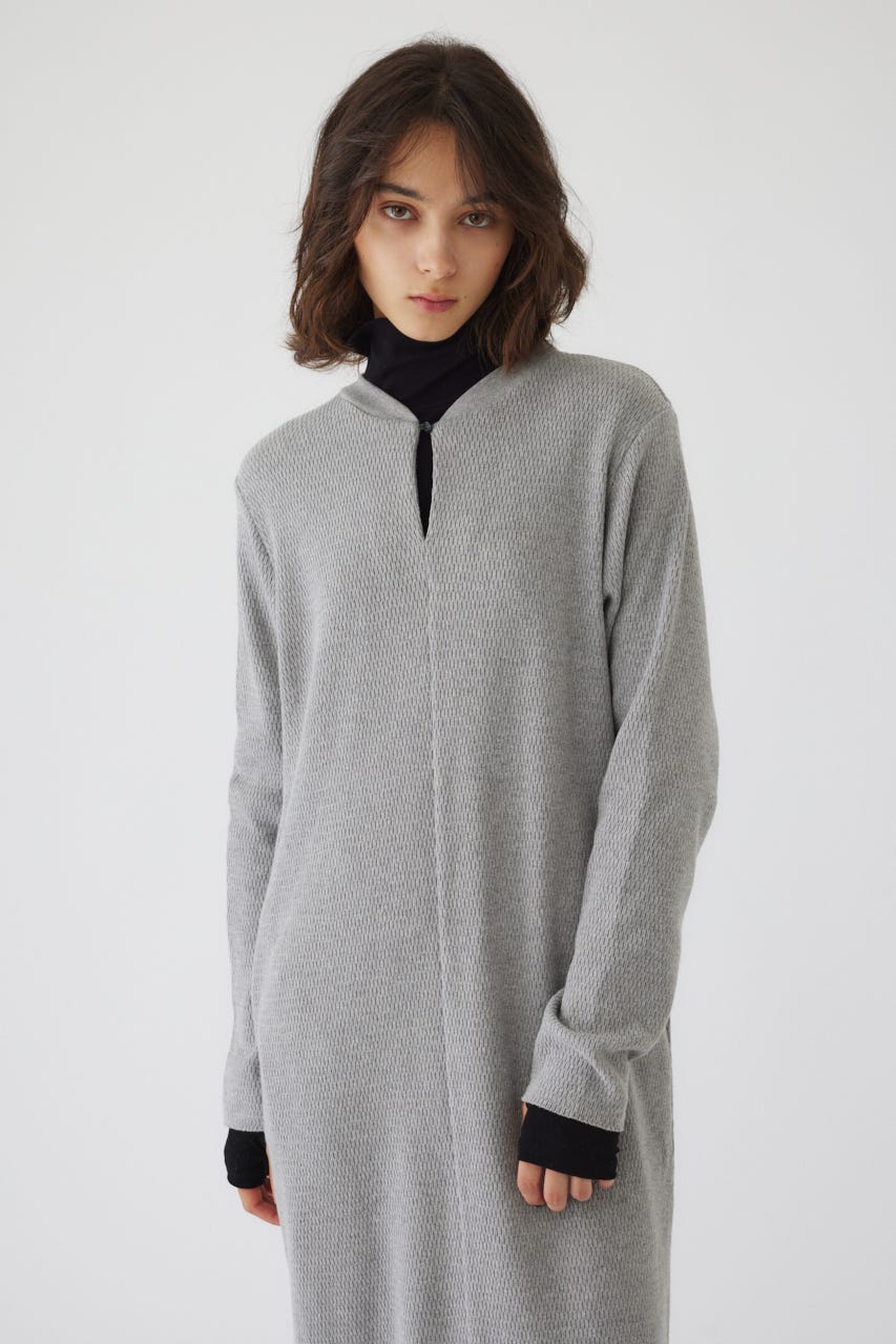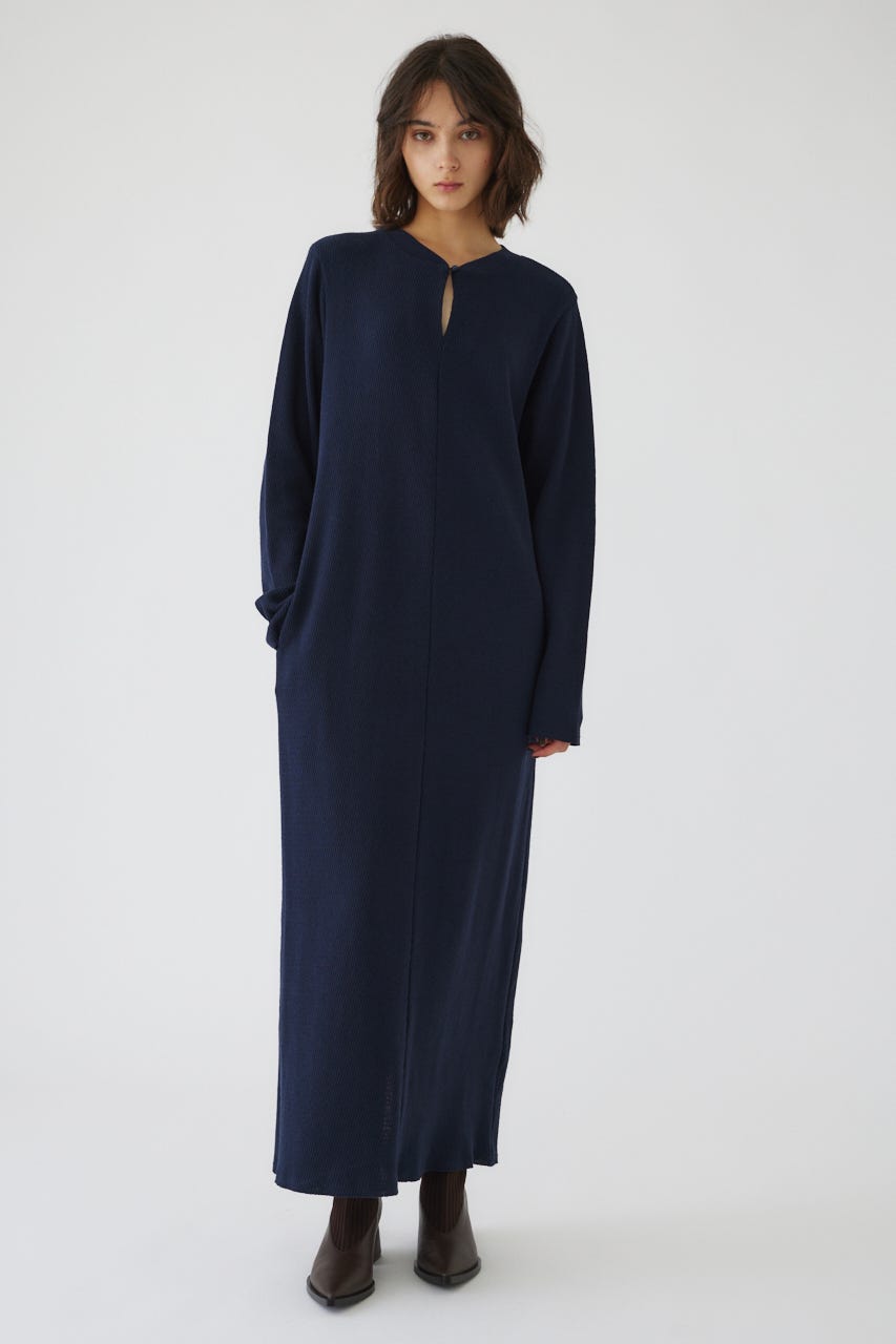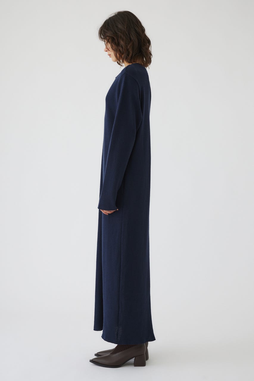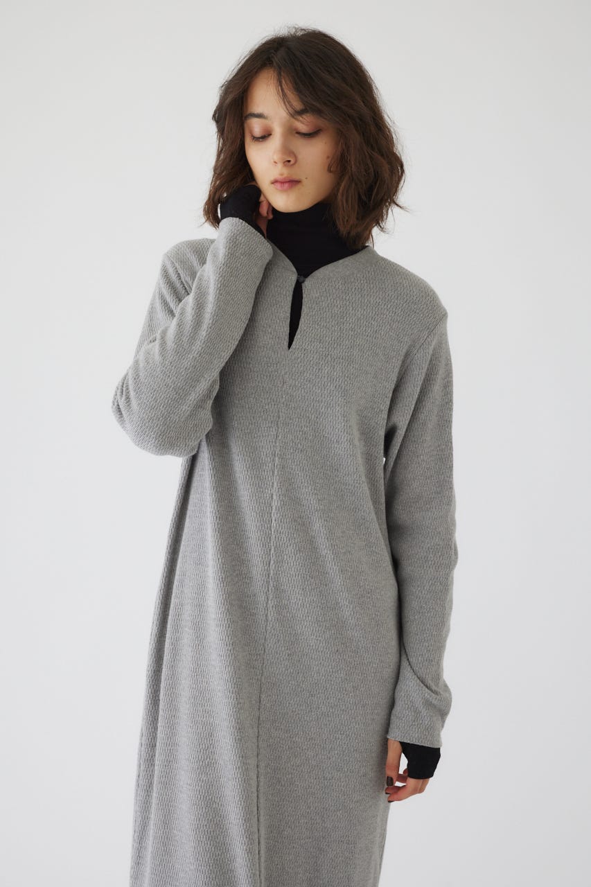 ■POINT:空気を含ませた太番手のオリジナル空紡糸を使用し、しっかりとした肉感ながらサラッとしたドライタッチを実現したサーマル生地のロングワンピース。