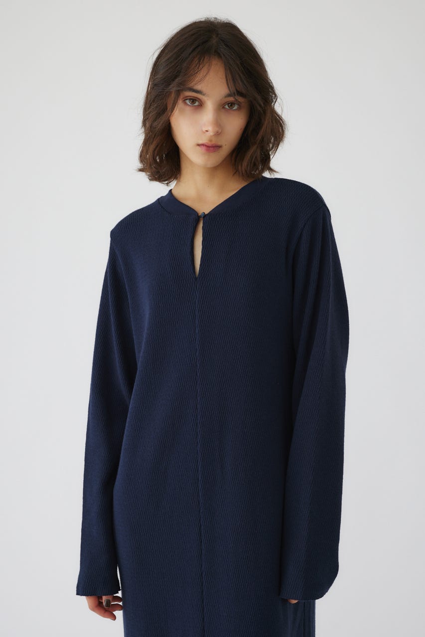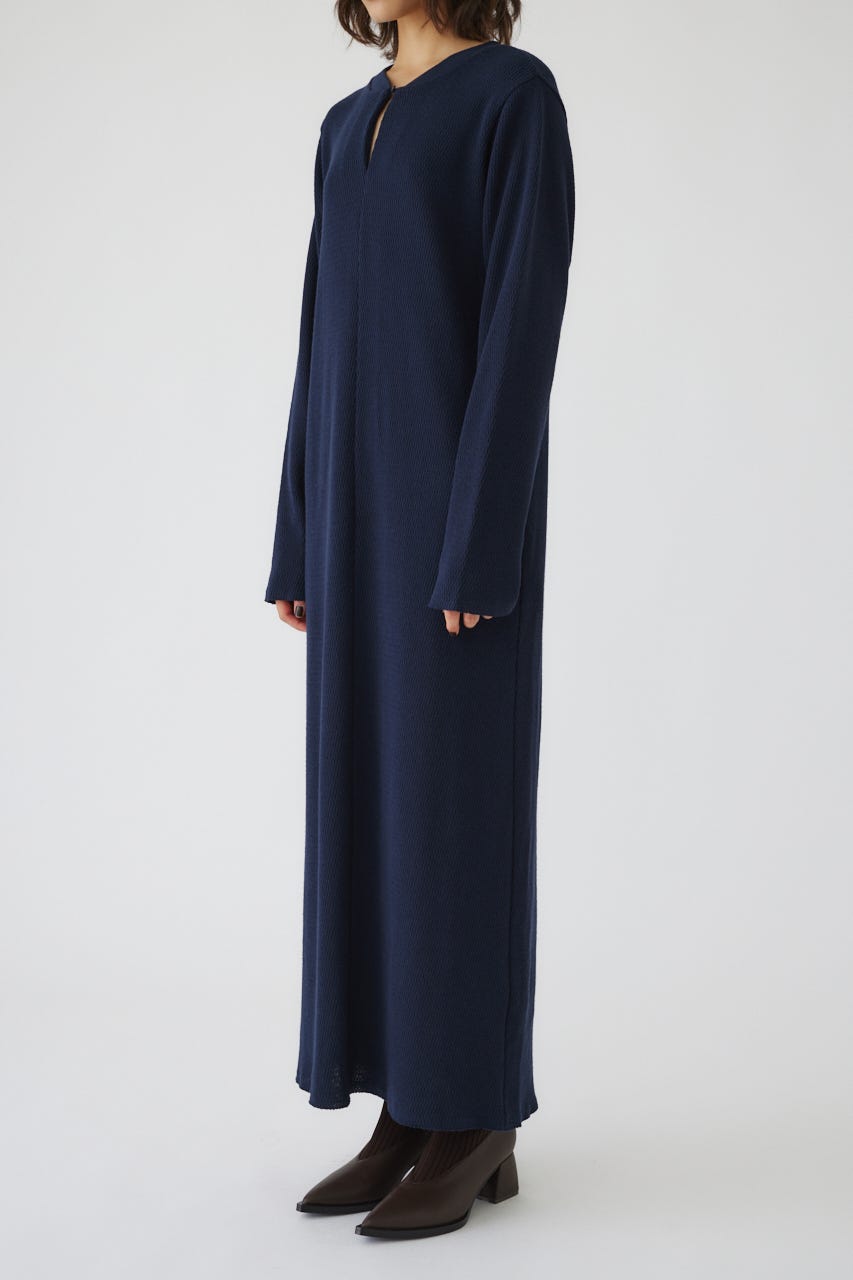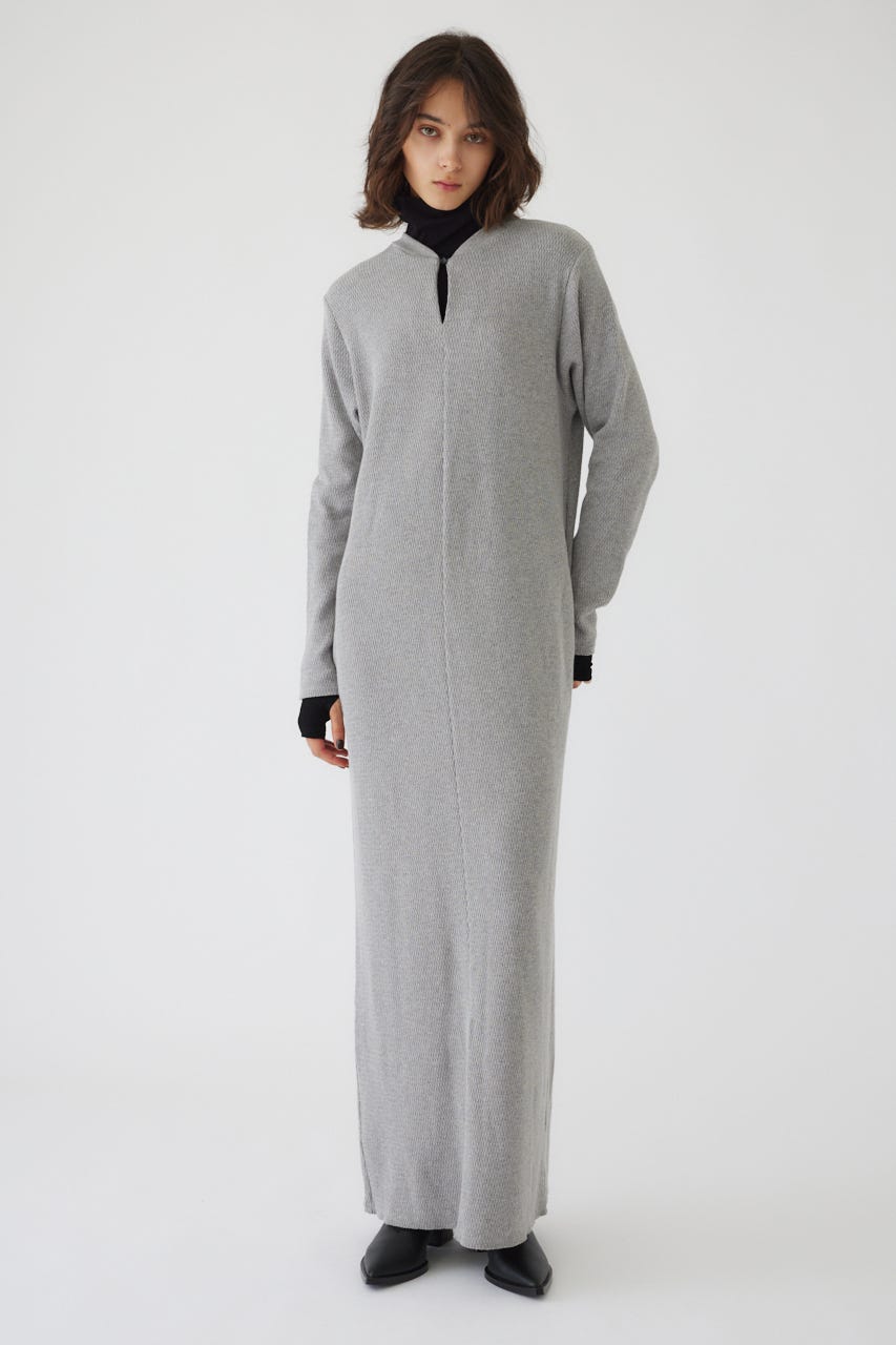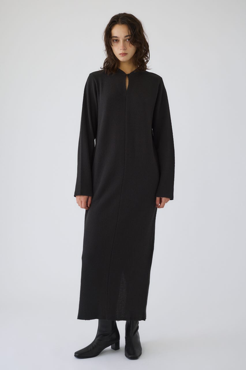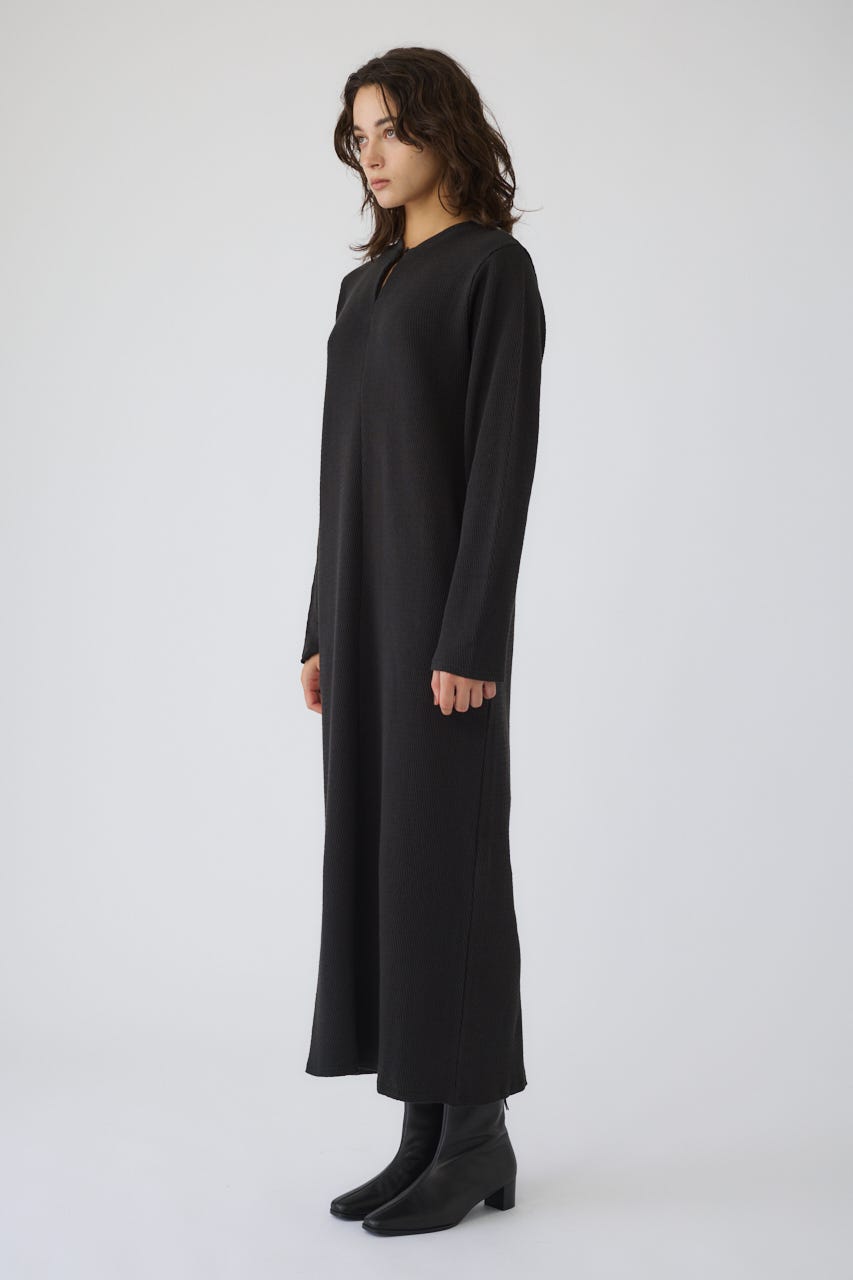 ■POINT:空気を含ませた太番手のオリジナル空紡糸を使用し、しっかりとした肉感ながらサラッとしたドライタッチを実現したサーマル生地のロングワンピース。