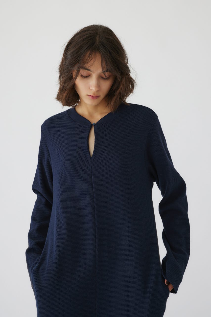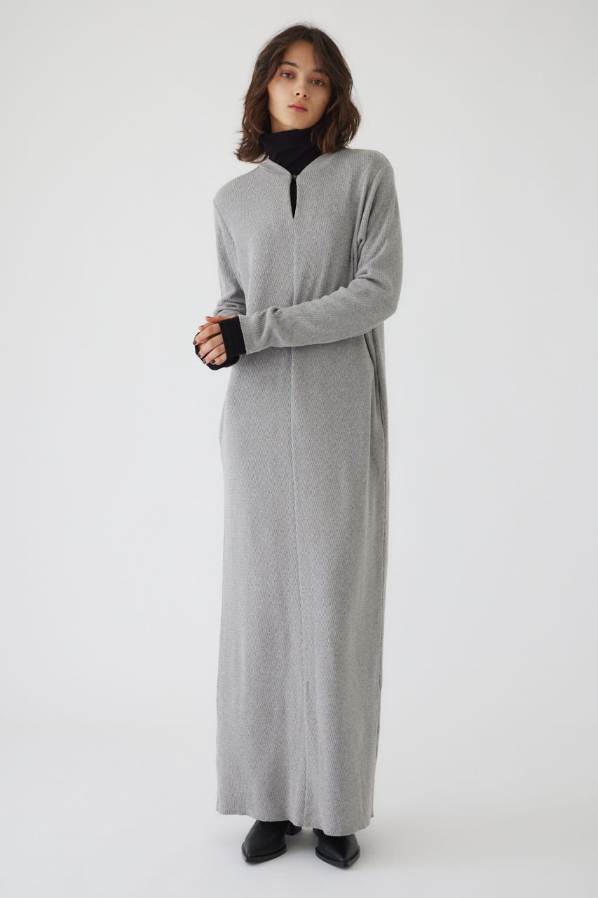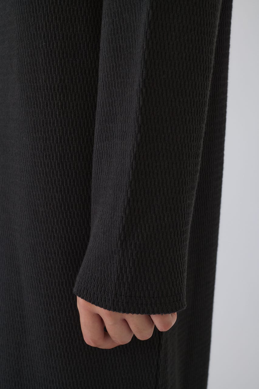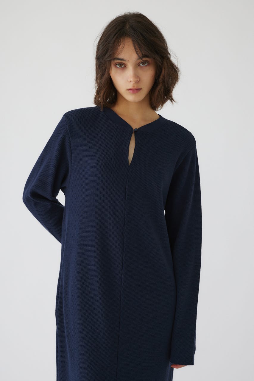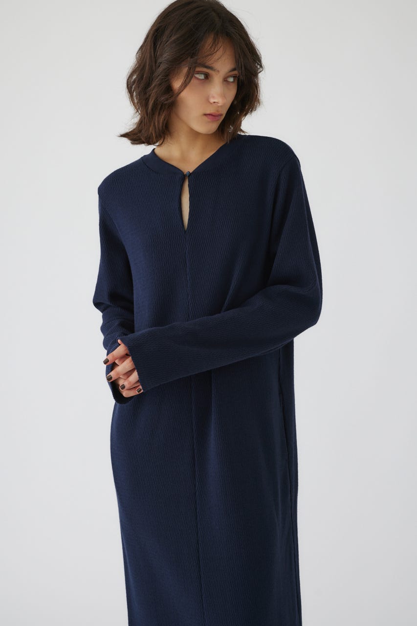 ■POINT:空気を含ませた太番手のオリジナル空紡糸を使用し、しっかりとした肉感ながらサラッとしたドライタッチを実現したサーマル生地のロングワンピース。