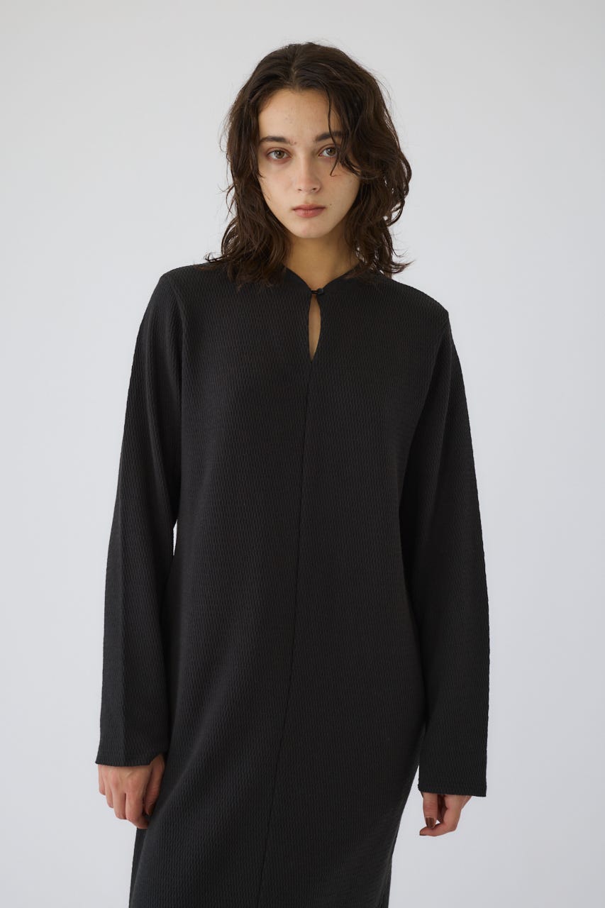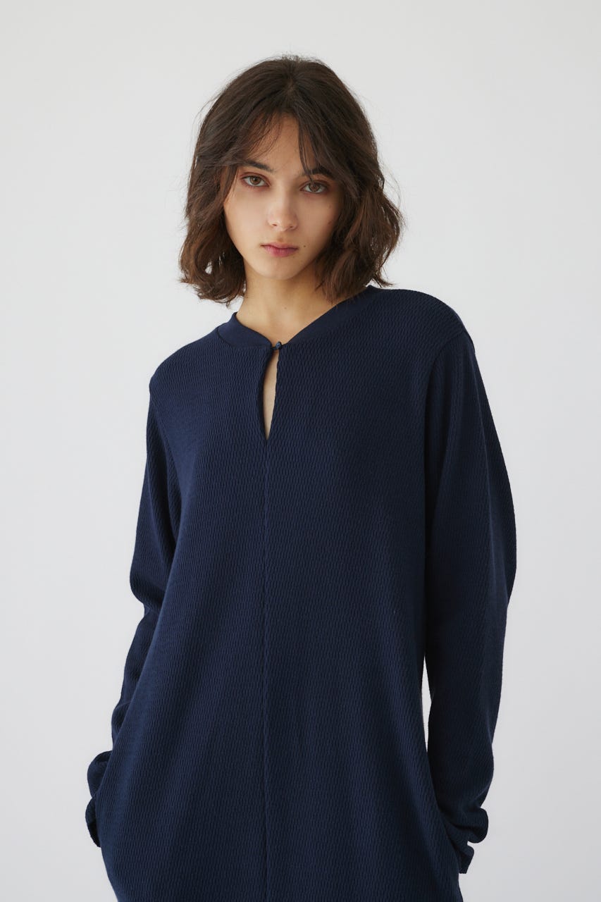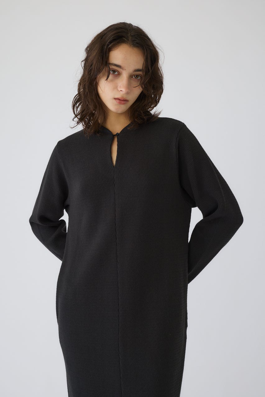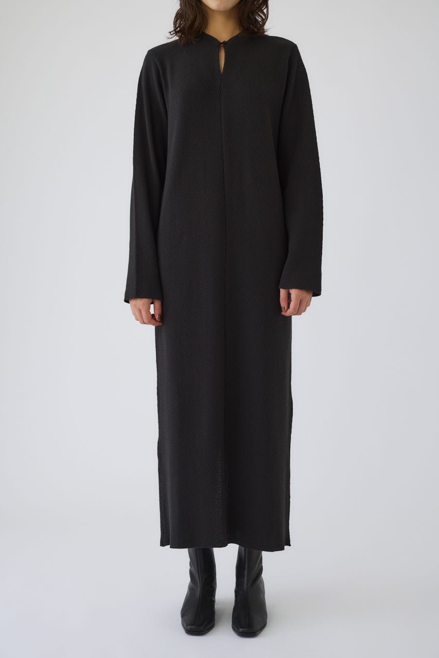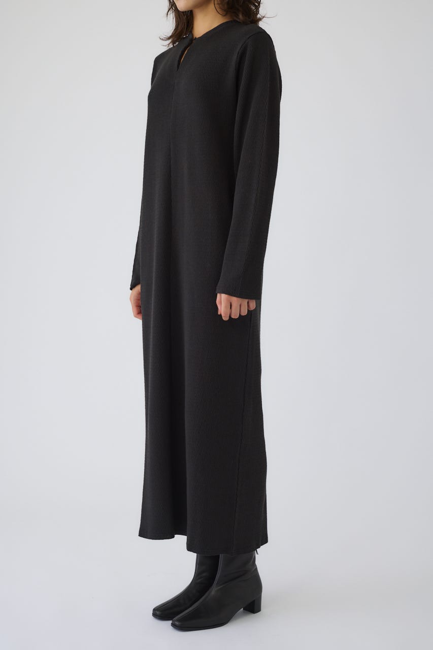 ■POINT:空気を含ませた太番手のオリジナル空紡糸を使用し、しっかりとした肉感ながらサラッとしたドライタッチを実現したサーマル生地のロングワンピース。