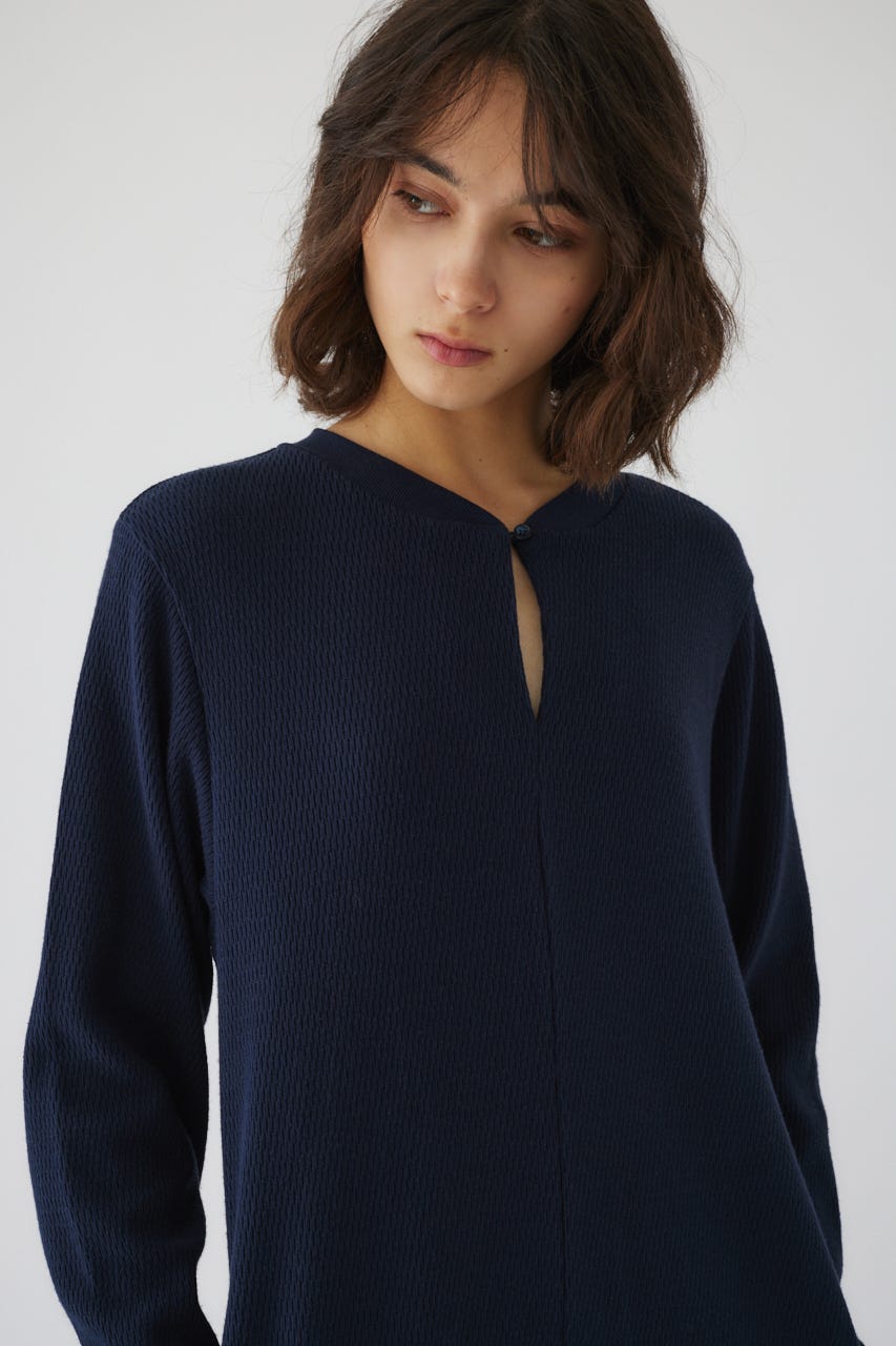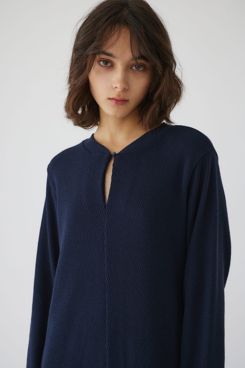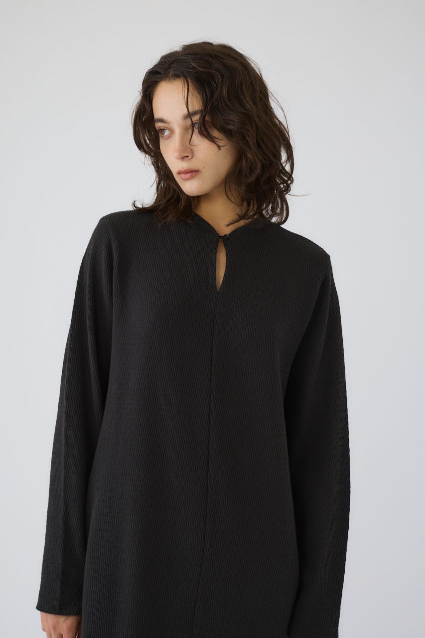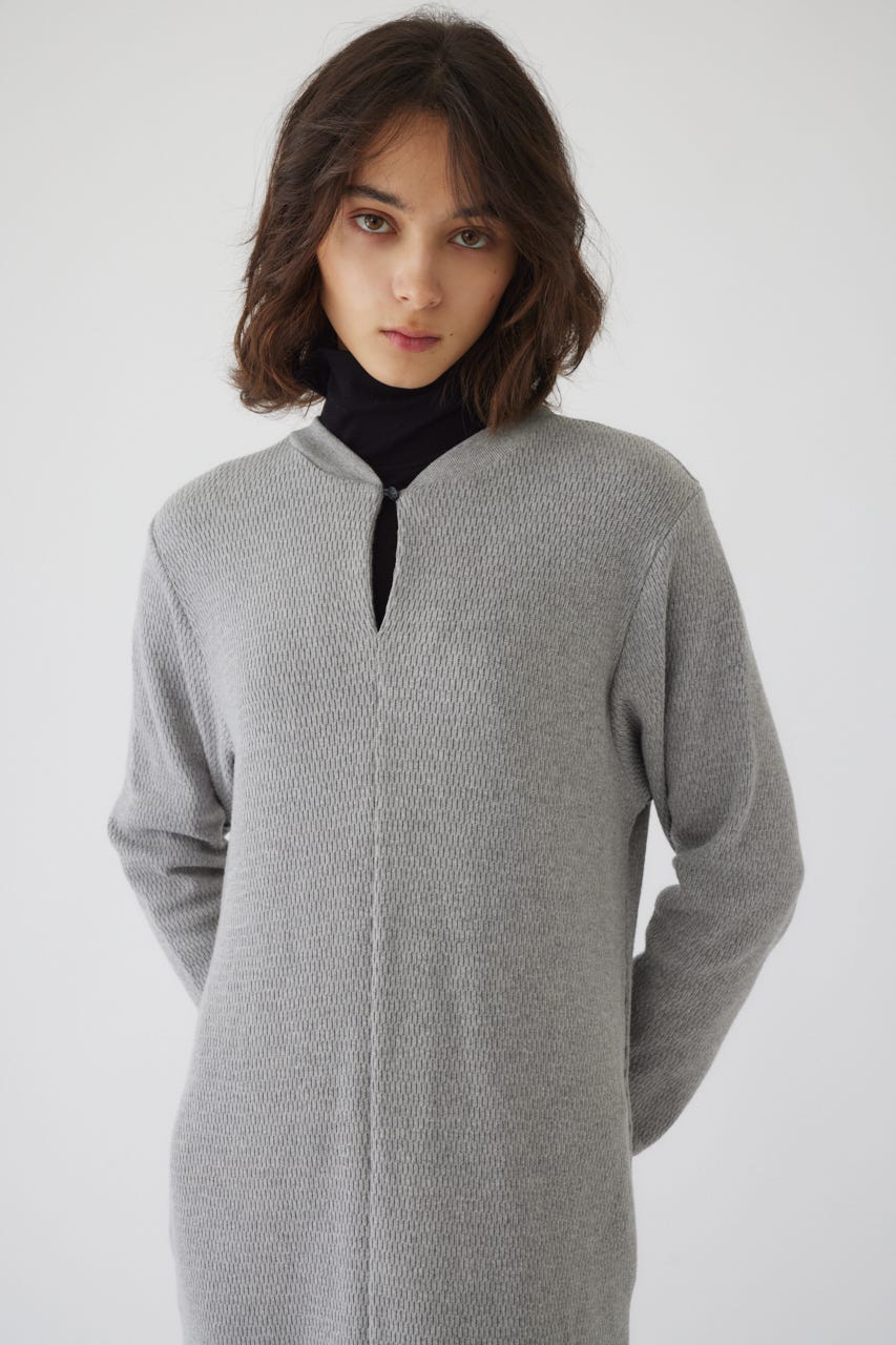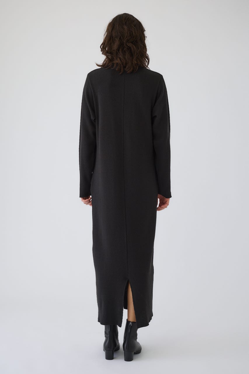 ■POINT:空気を含ませた太番手のオリジナル空紡糸を使用し、しっかりとした肉感ながらサラッとしたドライタッチを実現したサーマル生地のロングワンピース。