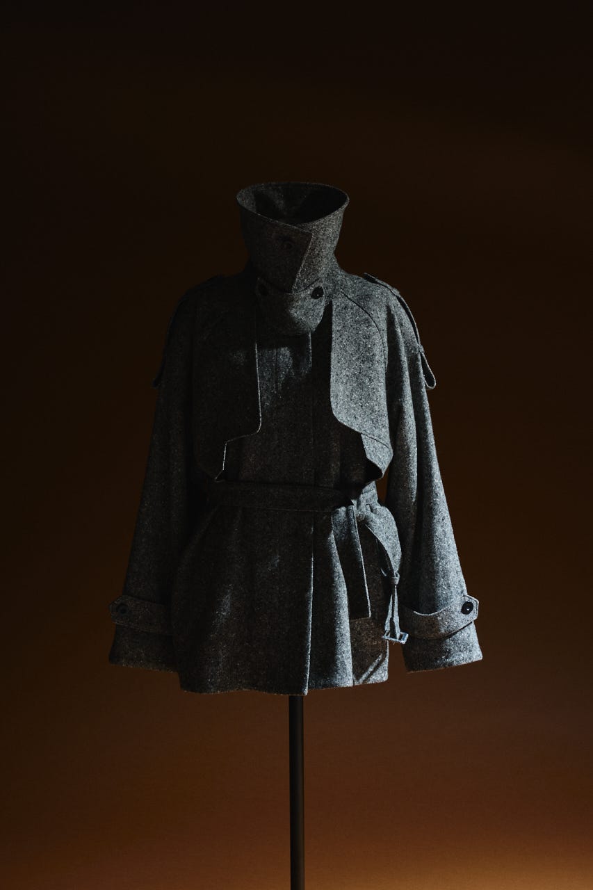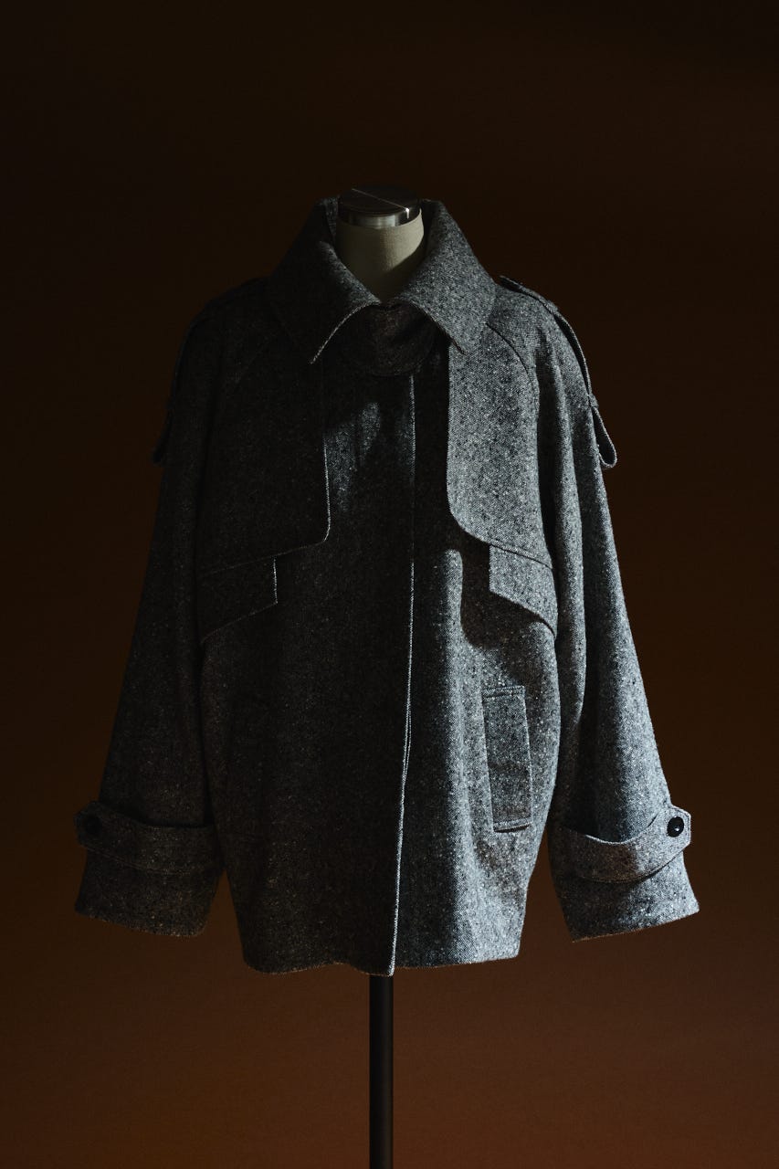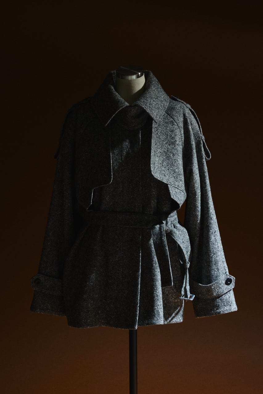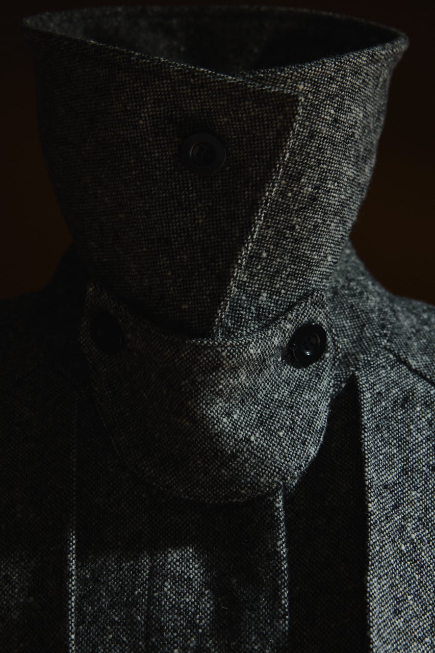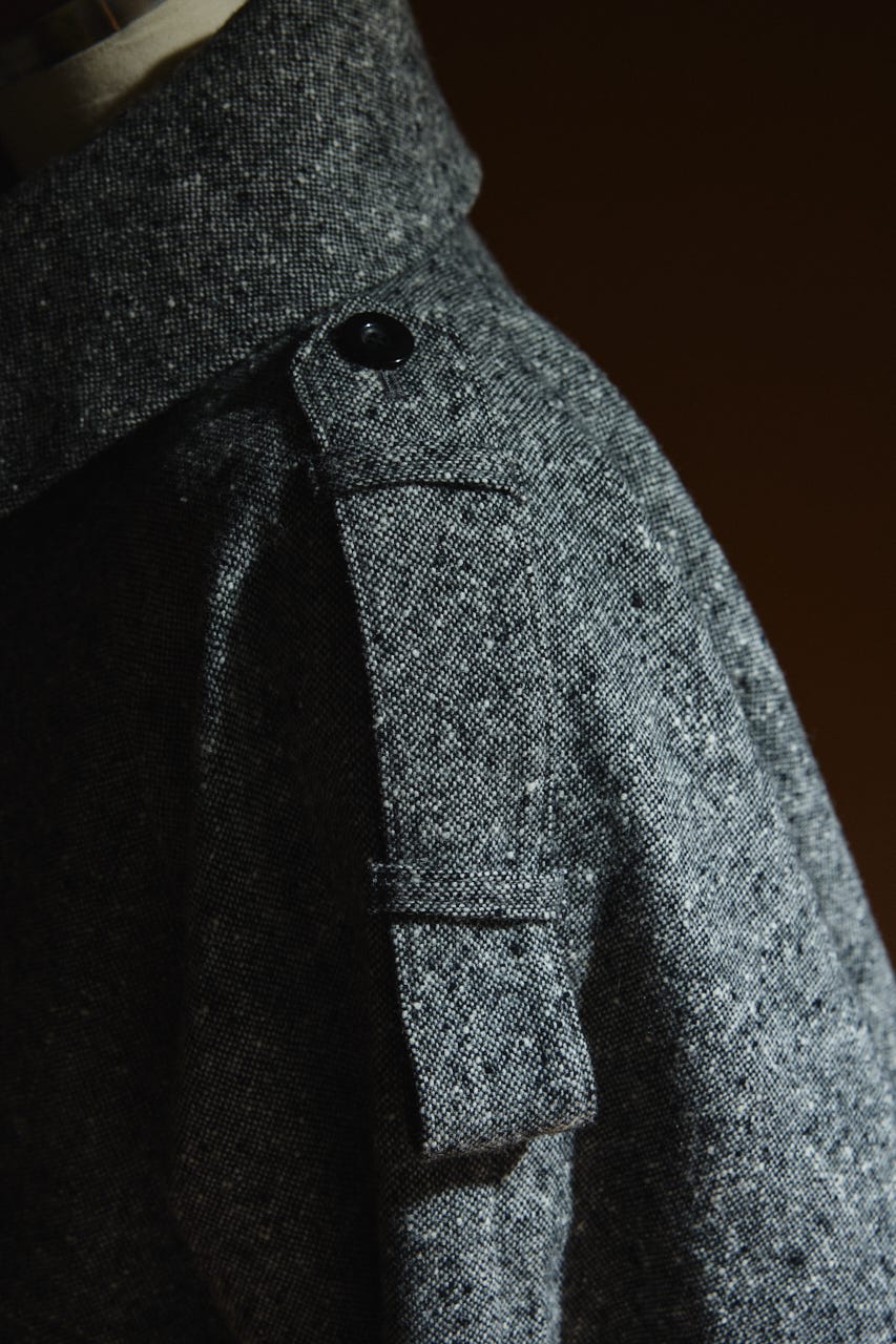 マニッシュな雰囲気やクラシカルな上品さを感じるツイード生地を使用したBig stand collar CT。