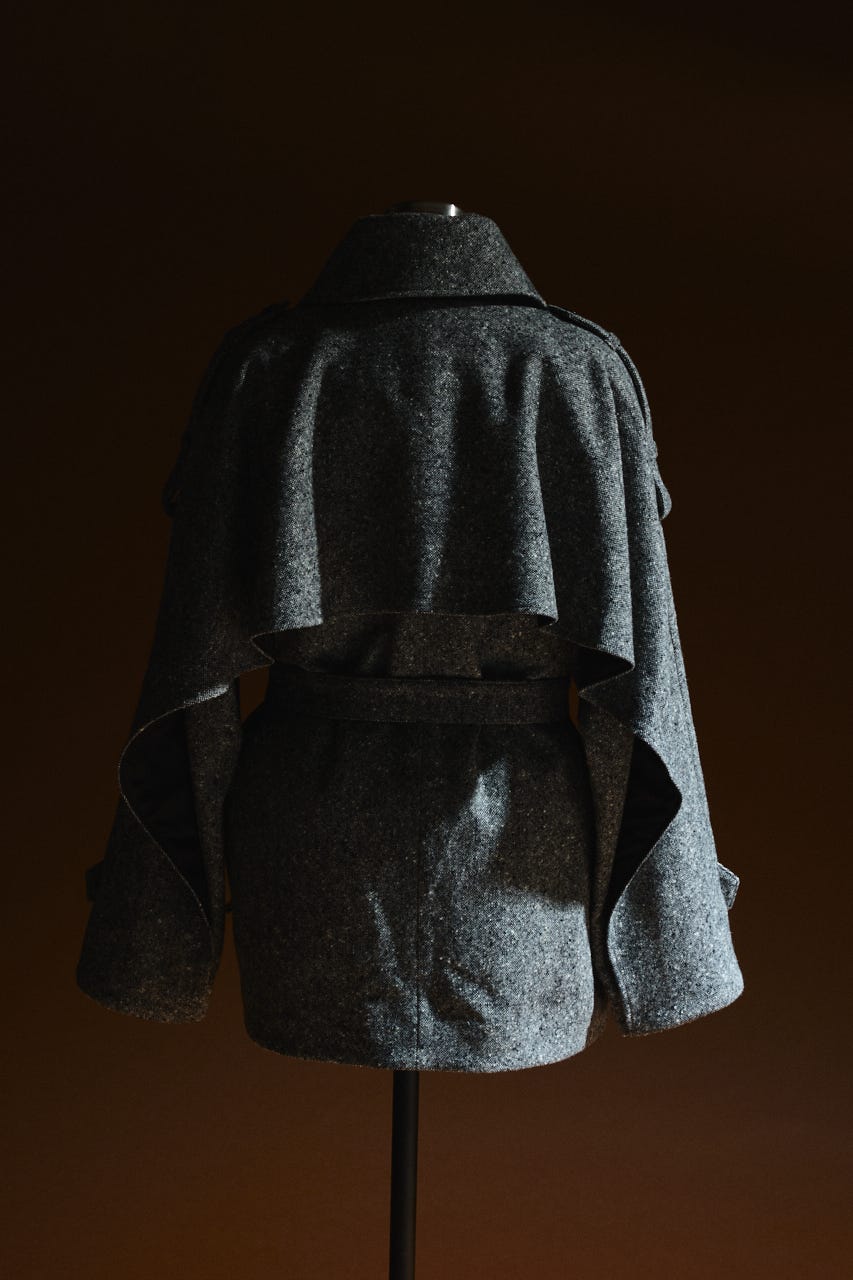 デザインはモダンクラシックを意識し、顔を覆うような高めのネックやバックコンシャスなドレープ使いなどエッジを効かせ、着るだけでファッショナブルなスタイルが完成する一枚に仕上げました。