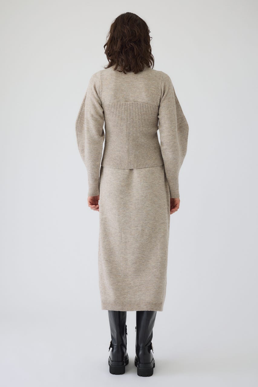 付属のニットビスチェを重ねれば、メリハリのあるスタイリングに。