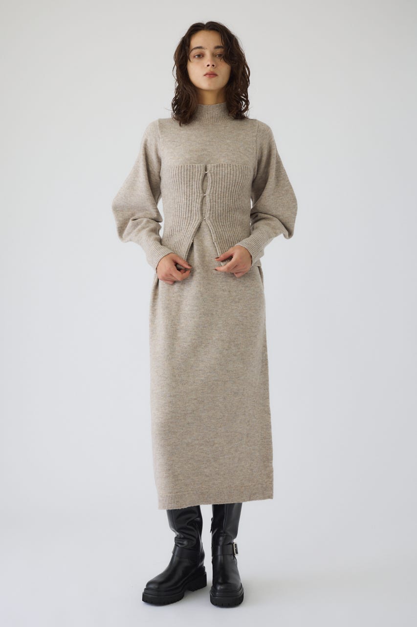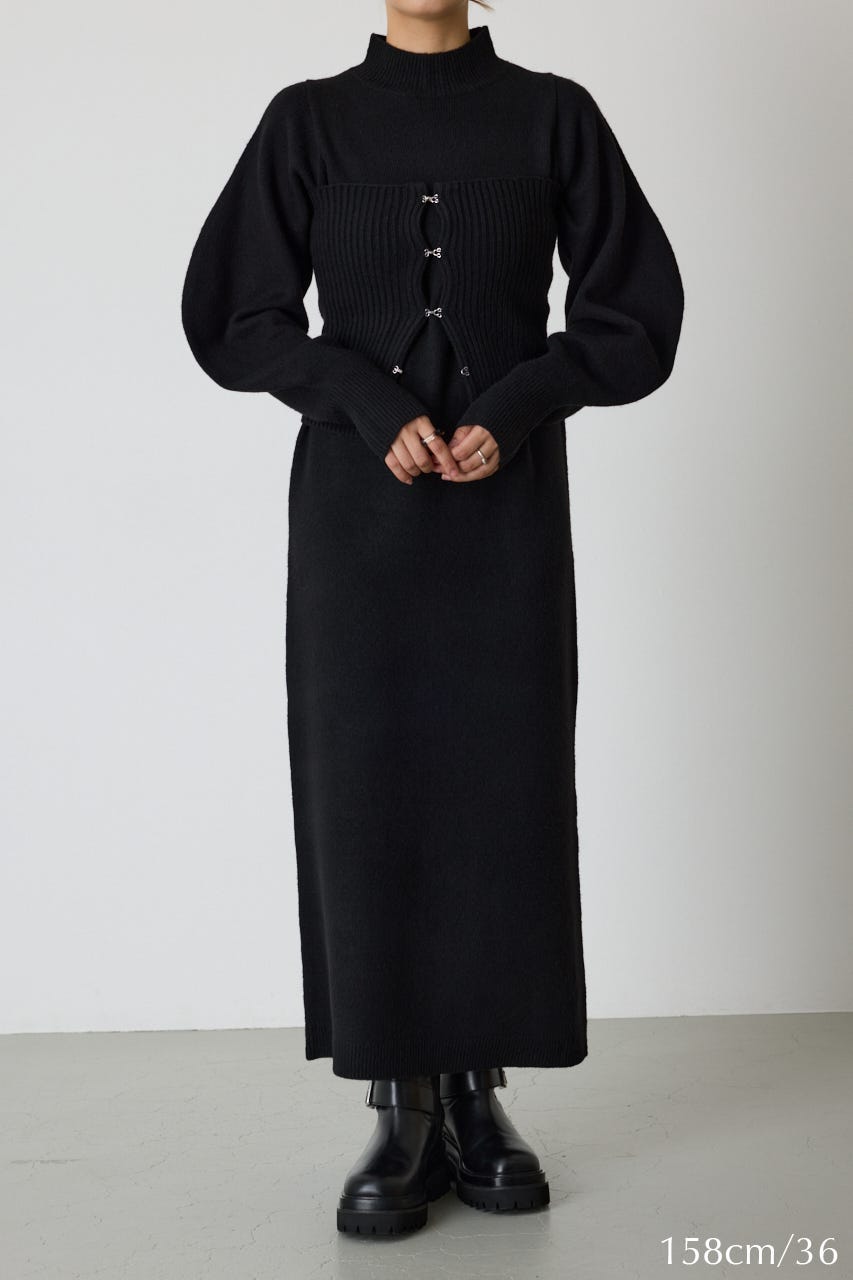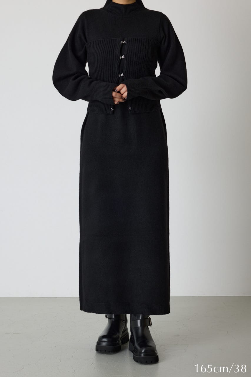 ■POINT:ホックデザインのニットビスチェ付きで、着こなしの幅が広がるニットドレス。
