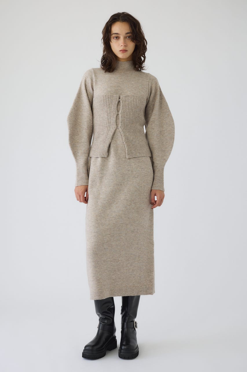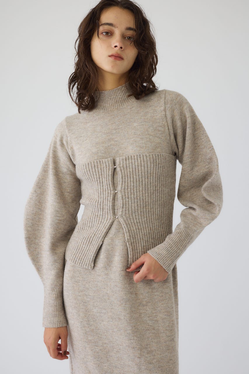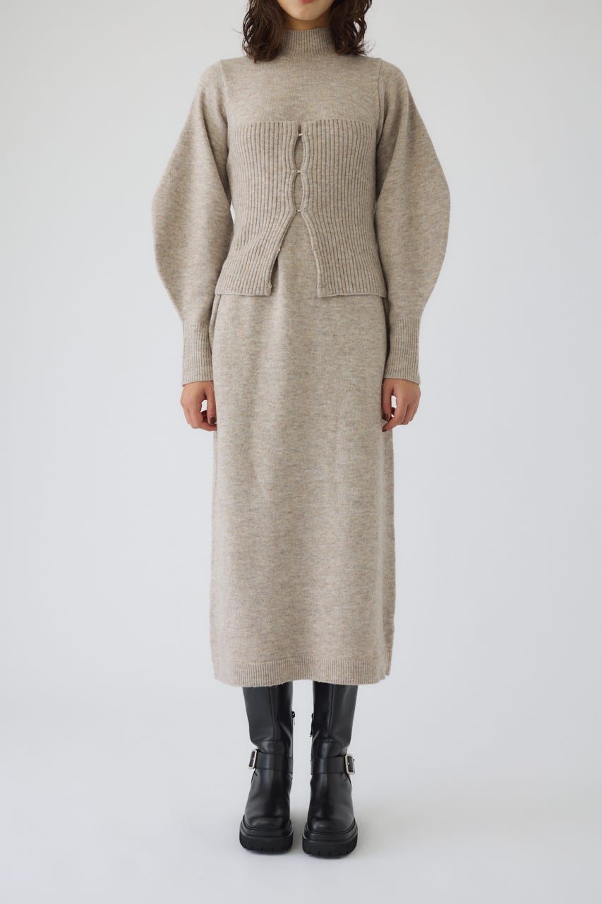 ■POINT:ホックデザインのニットビスチェ付きで、着こなしの幅が広がるニットドレス。
