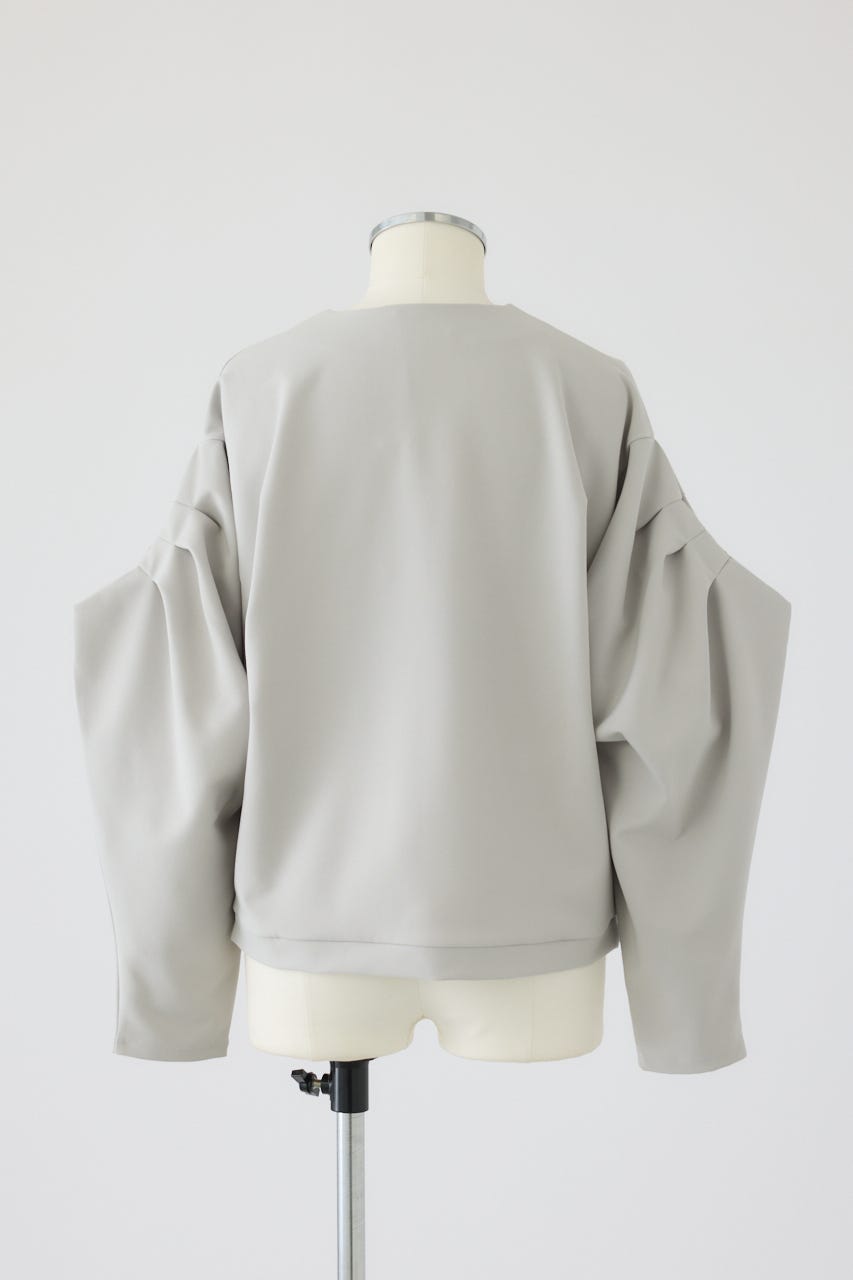 ■POINT:変形タックが生み出すドラマチックなボリュームスリーブとシャープなネックラインの対比が美しい、とことんモードなトップス。