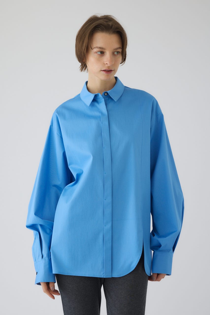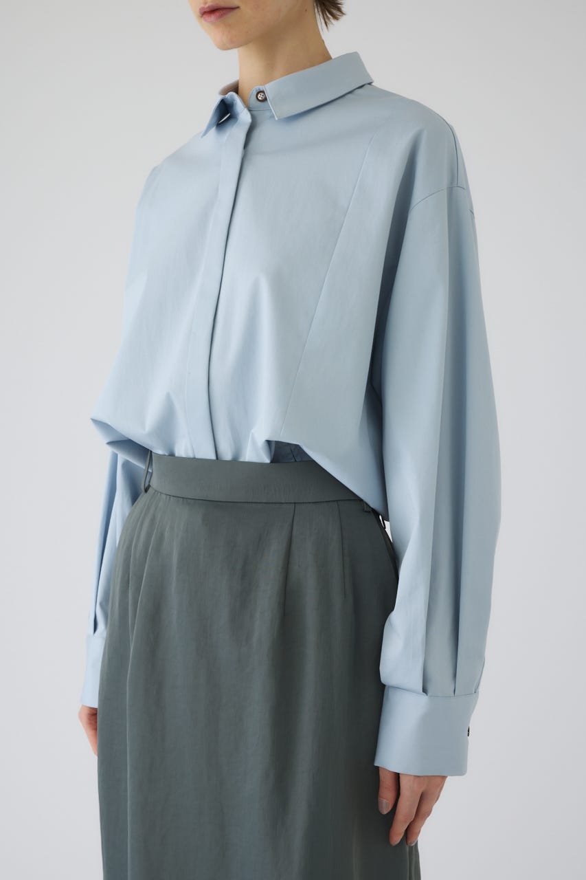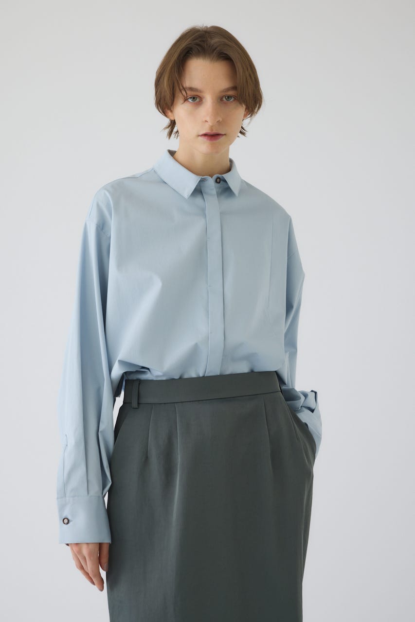 ■STYLING:フロントスリットの抜け感を活かし、ハイウエストのパンツやスカートと合わせるのがおすすめです。
