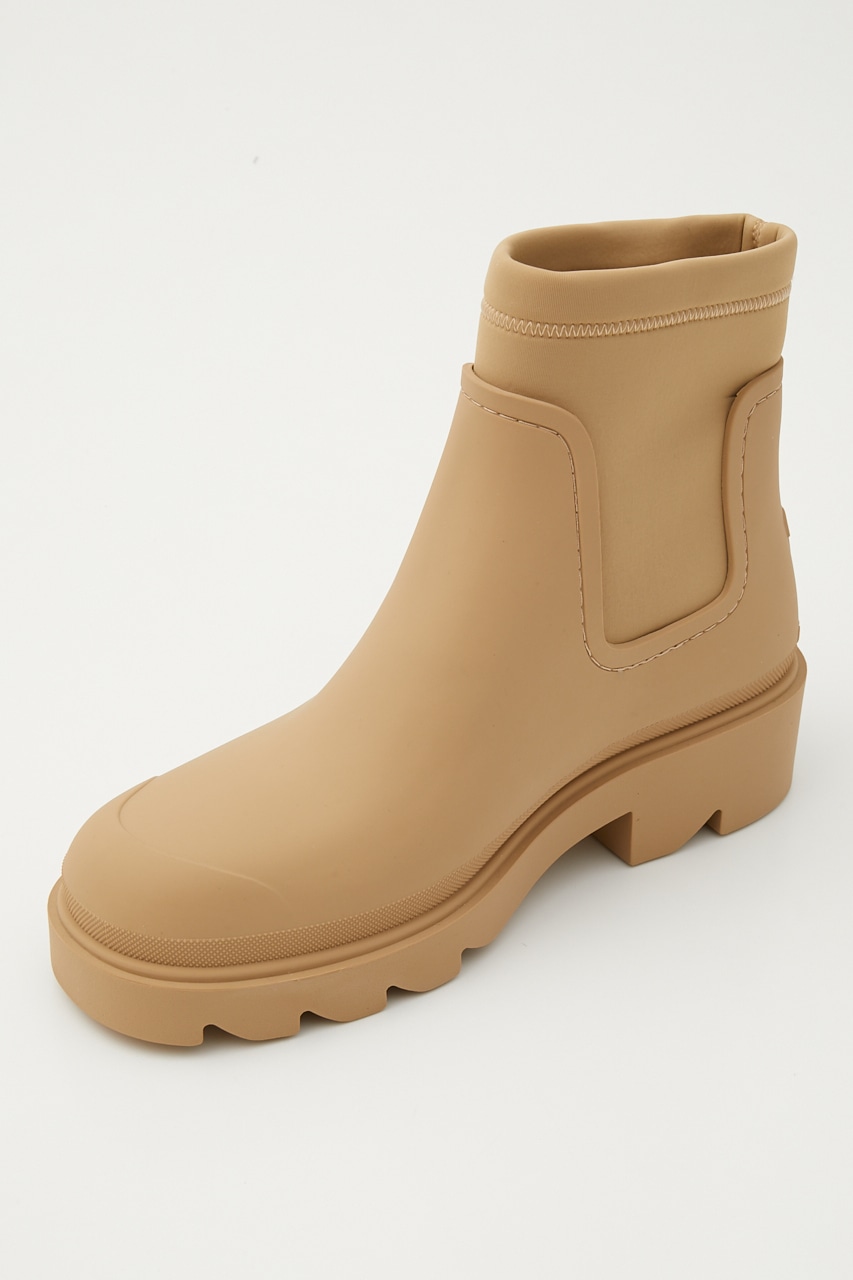 デイリーにも履きたい!突然な雨にも対応。今を纏える、晴雨兼用のおしゃれなカラーレインブーツ。トレンドライクなボリュームソールに履き口はストレスフリーのもっちりとしたストレッチ感あるネオプレーン×ラバー素材の一体型設計。