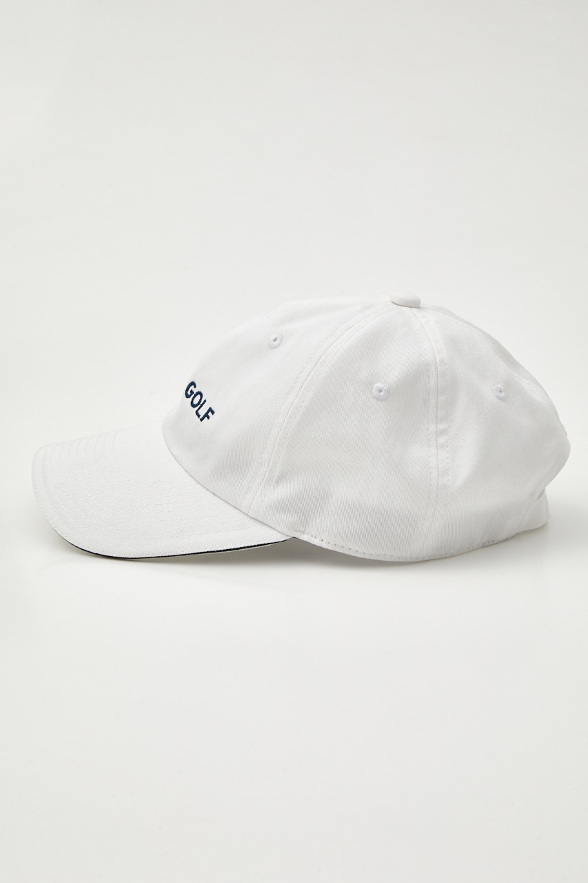 キャップのつばの部分にロゴと同色のラインを入れることで、スポーティな印象にしてます。